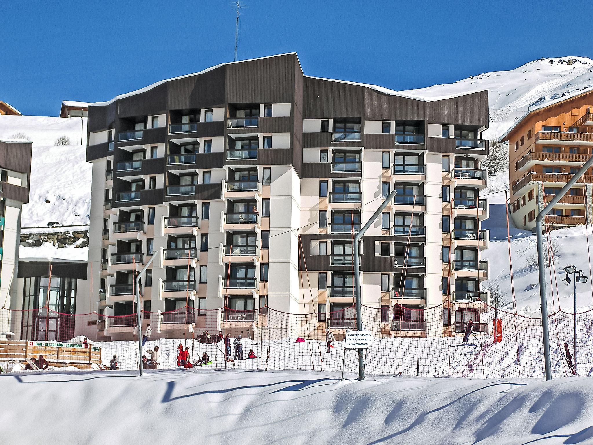 Apartment block "Armoise", 7 storeys. In the district of Reberty 1850, in a sunny position, directly by the skiing area. In the complex: lift, storage room for skis. Public parking on the road. Grocery, restaurant 10 m, bus stop "Reberty 1850" 400 m. Sports centre 1 km, skisport facilities 50 m, slopes 20 m. Well-known ski regions can easily be reached: 3 Vallées. Please note: the photograph shows a typical example. Additional accommodations can be booked.