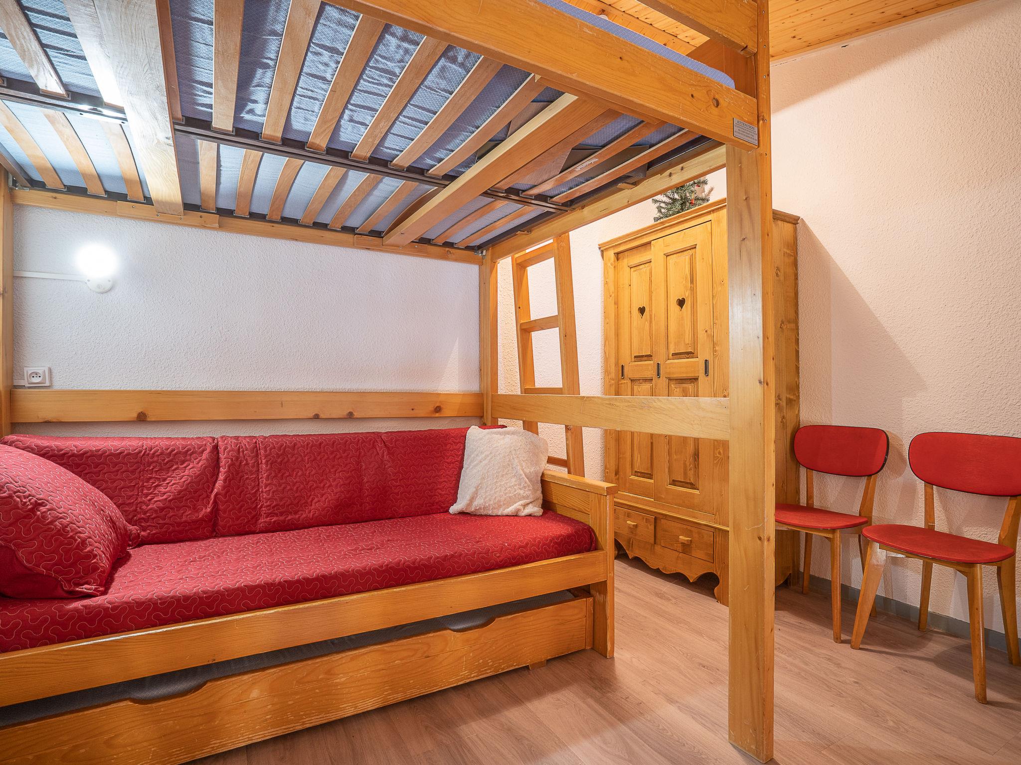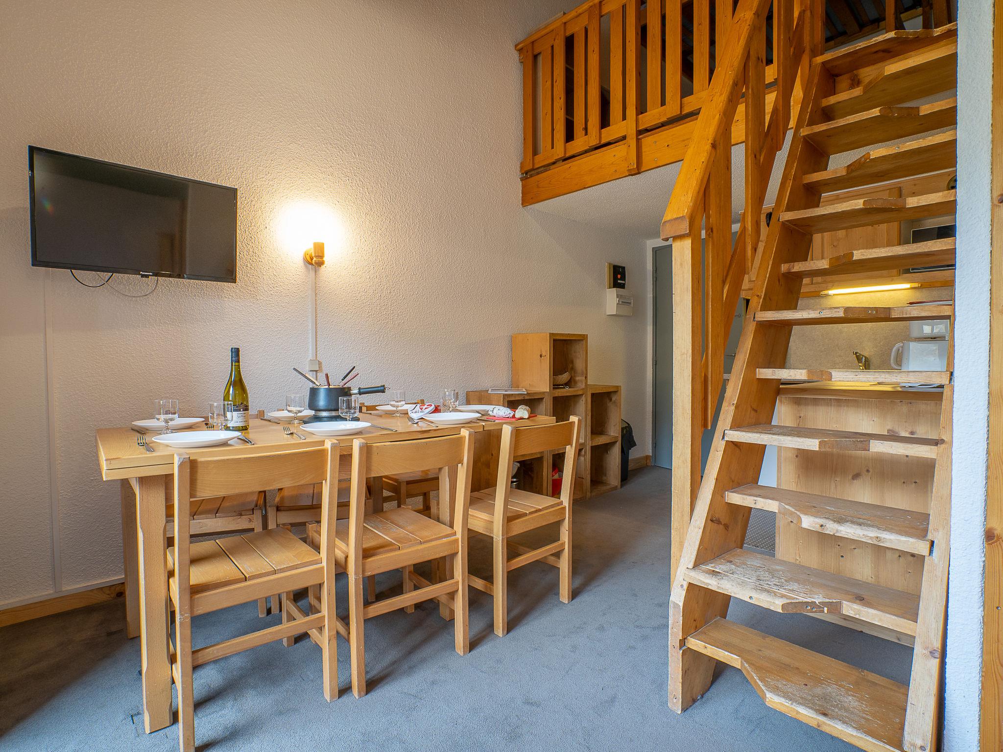 "Jettay Choucas 127", 3-room apartment 50 m2 on 2 levels on 2nd floor. Living/dining room with TV (flat screen). Exit to the balcony. 1 room with 1 double sofabed (1 x 140 cm, length 190 cm). Kitchenette (oven, dishwasher, 2 ceramic glass hob hotplates, microwave, electric coffee machine). Bathroom, sep. WC. Heating. Upper floor: 1 room with 1 french bed (140 cm, length 190 cm). Gallery with 1 pull-out bed (2 x 80 cm, length 190 cm), separate WC. Balcony, west facing position. Beautiful view of the mountains. Facilities: hair dryer. Internet (WiFi, extra). Please note: maximum 1 pet/ dog allowed. Smoke alarm. Warning: the double bed in the gallery is a "mezzanine" bed accessed via a ladder. Choucas entrance. Instead of an enclosed bedroom, some sleeping areas are located in an open-plan area (gallery, alcove, etc.). 73257002448AK