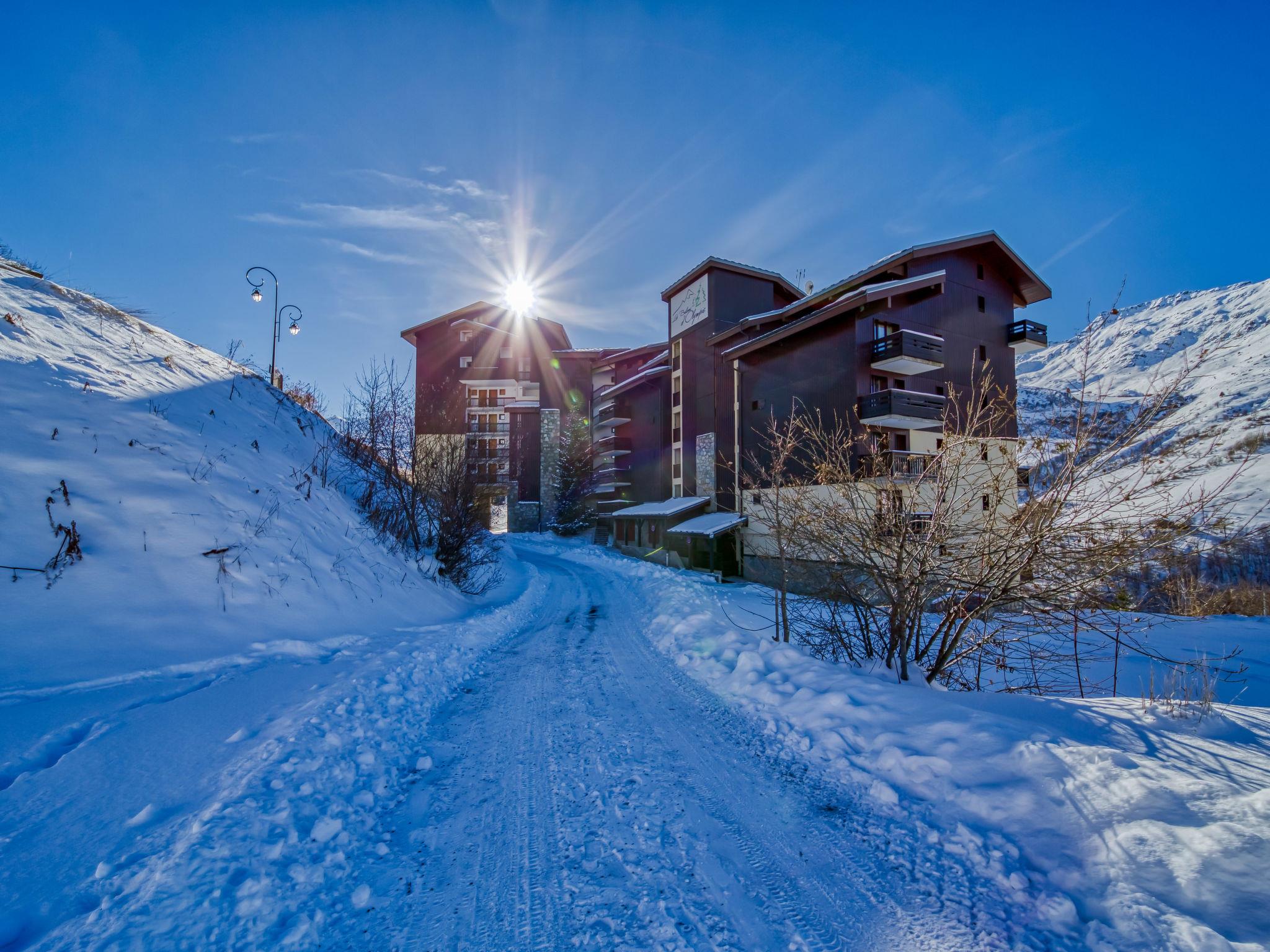 Residence "Balcons D'Olympie", 7 storeys. In the district of Preyerand 500 m from the centre of La Croisette, directly by the skiing area. In the complex: lift, storage room for skis. Public parking on the road. Grocery 200 m, shopping centre 500 m, restaurant 100 m, bus stop "Gare routière Les Menuires" 800 m. Sports centre 500 m, skisport facilities 50 m, slopes 10 m, ski school 500 m, cross country ski track 100 m. Well-known ski regions can easily be reached: 3 Vallées. Please note: lift to 5th floor. The photograph shows a typical example. Additional accommodations can be booked. The district of Preyerand is connected by cable car (free, from 08.00 - 23.00) to the centre "La Croisette".