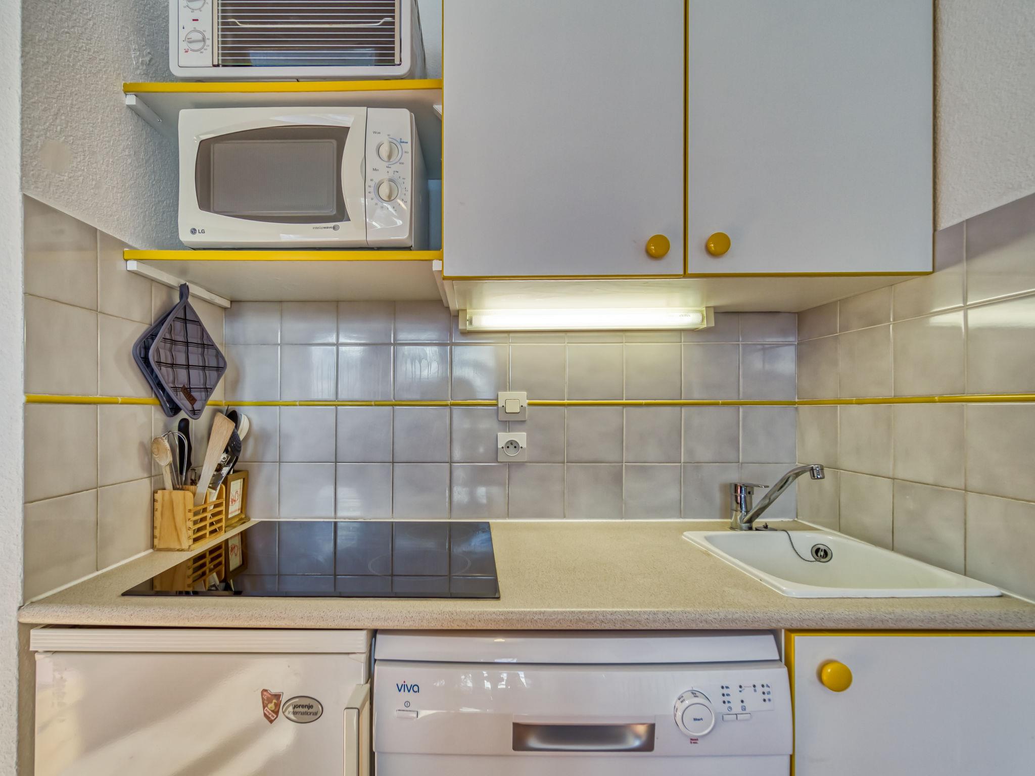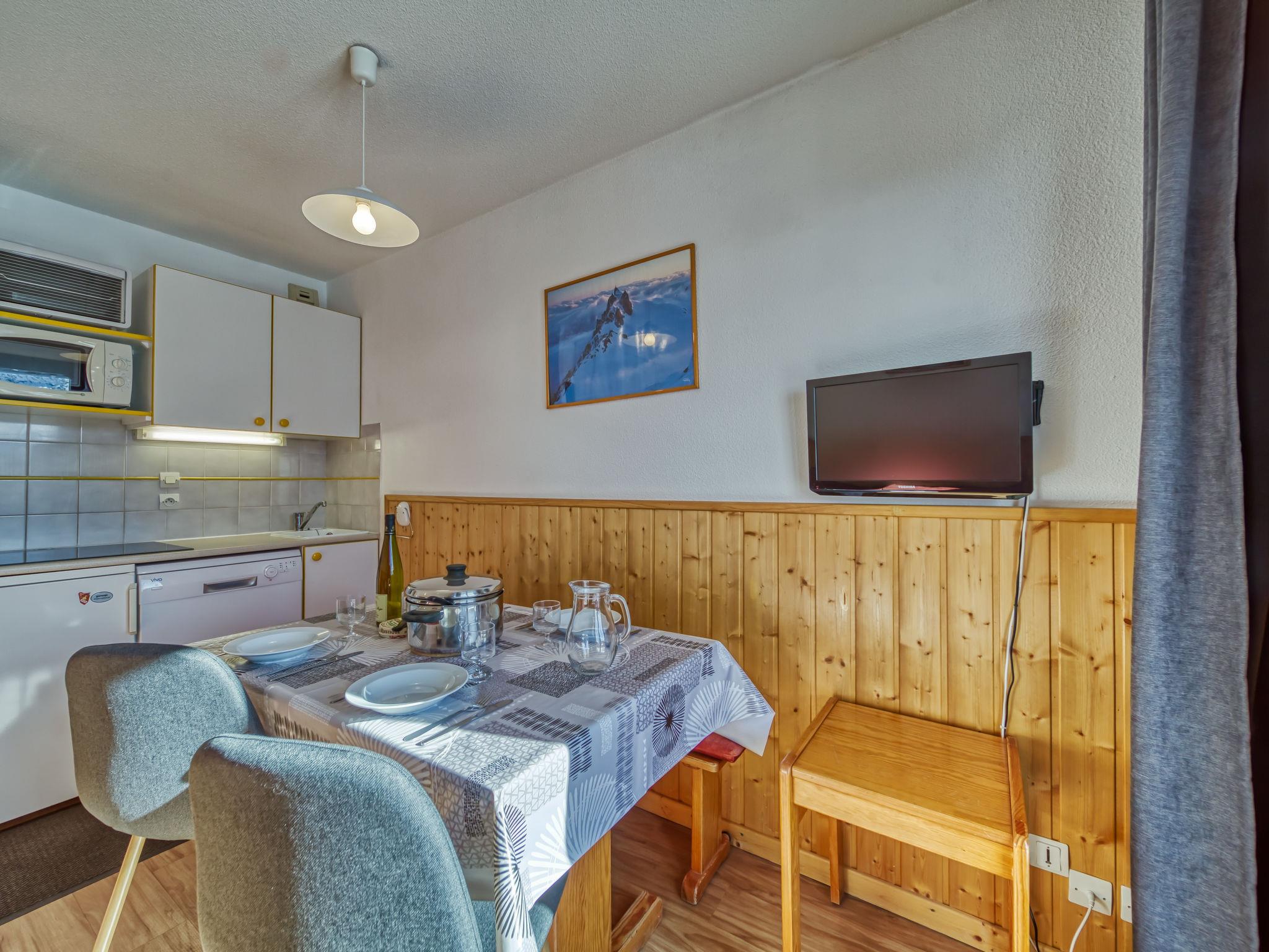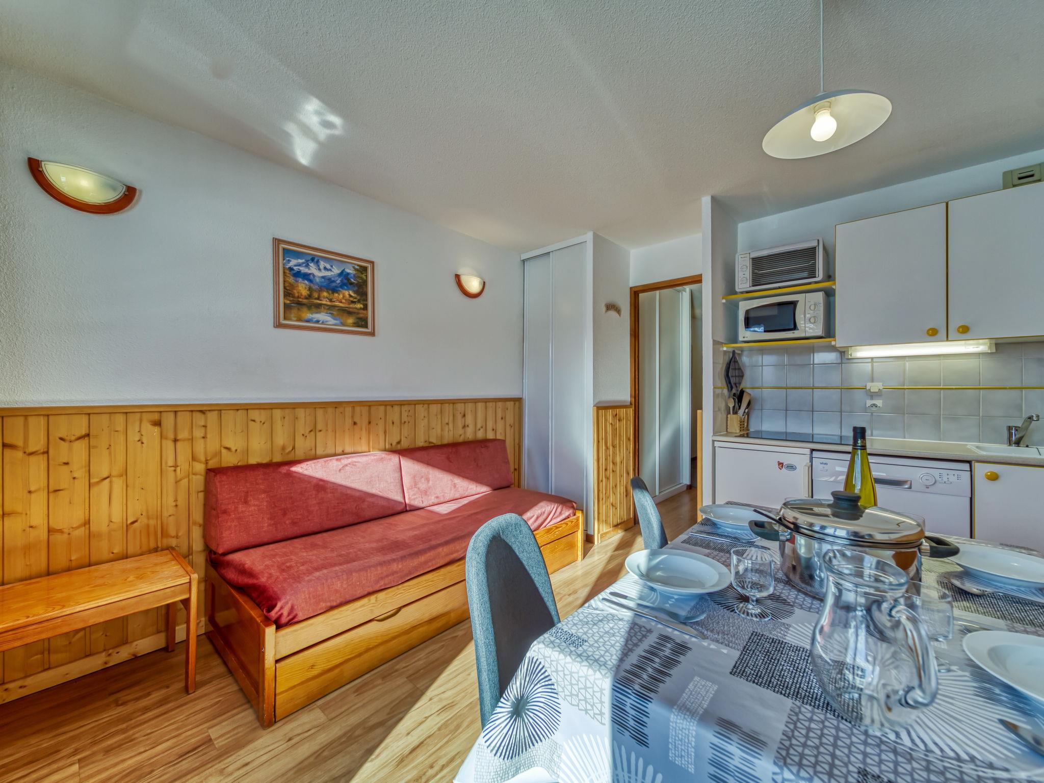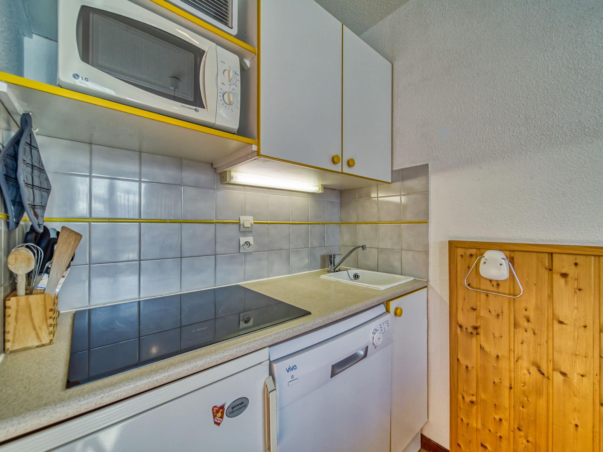 "Balcons d'Olympie 323 - B", 2-room apartment 29 m2 on 3rd floor. Comfortable furnishings: living/dining room with 1 pull-out bed (2 pers. 2 x 80 cm, length 190 cm), TV (flat screen). Exit to the balcony. 1 room with 1 pull-out bed (2 x 80 cm, length 190 cm). Kitchenette (oven, dishwasher, 3 ceramic glass hob hotplates, toaster, kettle, microwave, electric coffee machine, raclette grill). Shower, sep. WC. Electric heating. Large balcony, south facing position. Beautiful view of the mountains and the ski run. Facilities: washing machine. Internet (WiFi, extra). Please note: smoke alarm. Offer by a commercial proprietor according to Art. 155, IV, CGI