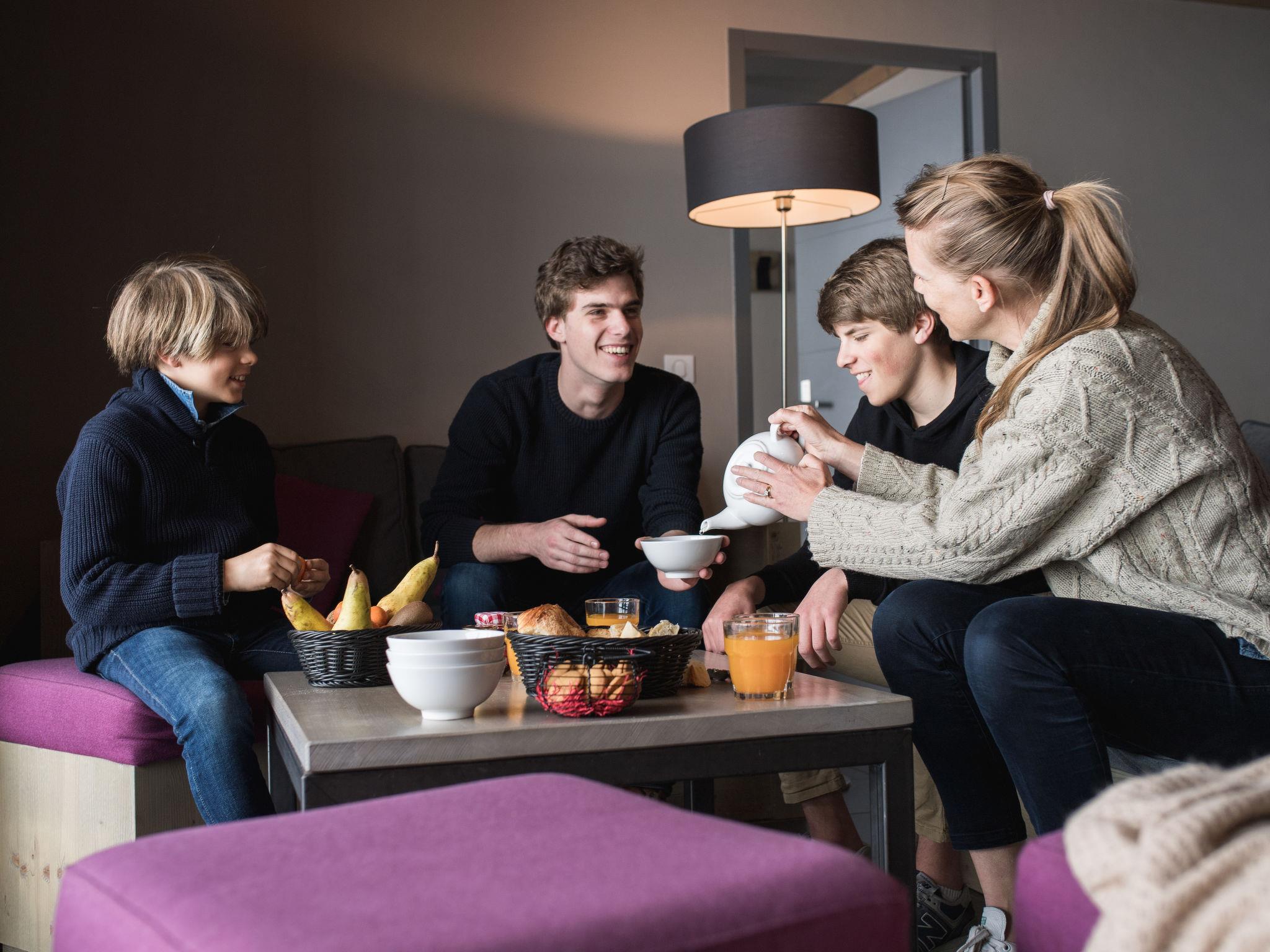 "CGH Rés&Spa Chalets du Soleil (C) 4*", 3-room apartment 40 m2. Modern and stylish furnishings: living/sleeping room with 1 pull-out bed, dining table and satellite TV. Exit to the balcony. 1 room with 1 french bed. 1 room with 2 beds. Kitchenette (oven, dishwasher, 2 ceramic glass hob hotplates, toaster, kettle, microwave, electric coffee machine, steamer). Sep. WC, bath or shower. Heating. Balcony. Balcony furniture. Facilities: telephone, hair dryer. Internet (WiFi, free). Please note: non-smokers only. Maximum 1 pet/ dog allowed. Smoke alarm, fire extinguisher.
