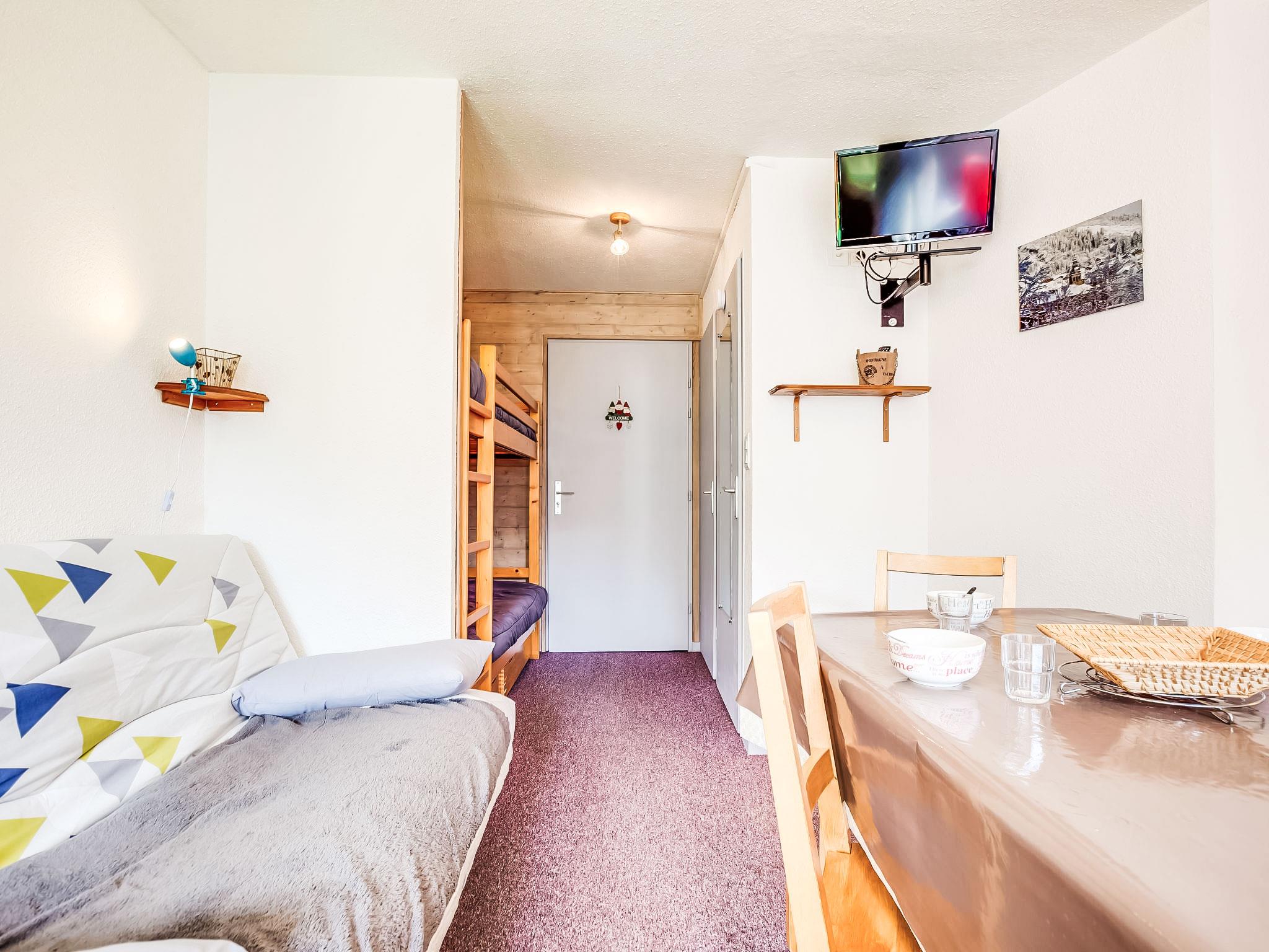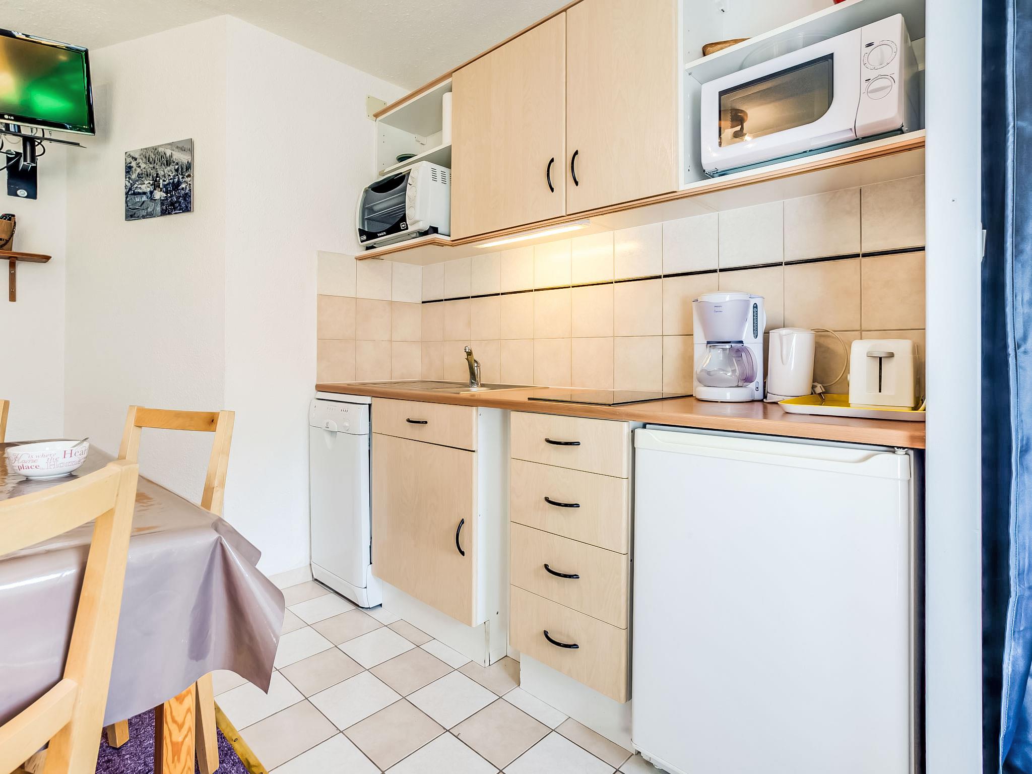 "Ski Soleil 1 - 1511", 2-room apartment 27 m2 on 5th floor, south facing position. Living/dining room with TV (flat screen). Entrance hall with 1 x 2 bunk beds (80 cm, length 190 cm). 1 room with curtain with 1 french bed (140 cm, length 190 cm). Kitchenette (oven, dishwasher, 2 ceramic glass hob hotplates, toaster, kettle, microwave, electric coffee machine, raclette grill, fondue Set (cheese)). Shower, sep. WC. Electric heating. Covered balcony. View of the mountains. Facilities: Internet (WiFi, extra). Please note: 1 small pet/ dog allowed. Smoke alarm. 73257007590AK