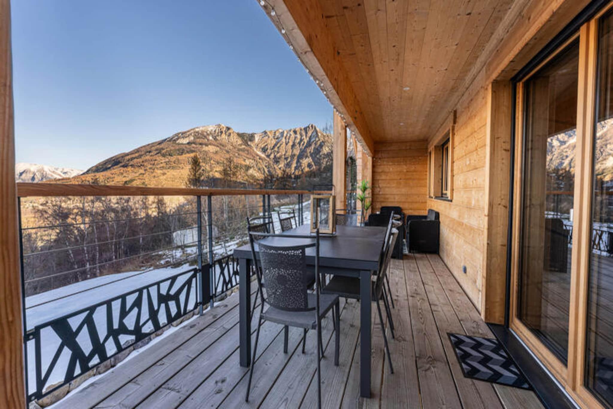 At an altitude of 1550 meters in the serene Pra-Mouton district, 'Le Loup d'Orres' invites you to experience the charm of the Southern Alps in a modern and spacious chalet. With breathtaking views of the Embrun valley and Lake Serre-Ponçon, this newly built retreat offers a perfect blend of comfort and elegance, ideal for families or groups of up to 16 guests. Whether you're seeking a winter wonderland or a summer escape, this property promises unforgettable moments in the heart of nature. The chalet spans 130 square meters and features five beautifully appointed bedrooms, each with its own bathroom. The master suite on the ground floor boasts a luxurious double bed and an en-suite bathroom with a walk-in shower and bathtub. Upstairs, the remaining bedrooms offer flexible sleeping arrangements, including double beds, single beds, and bunk beds, ensuring comfort for all. The central living area is a true highlight, with large windows flooding the space with natural light and opening onto a terrace with panoramic views. Cozy evenings await in the living room, complete with a wood-burning stove, plush sofas, and a billiards area for entertainment. The dining room, designed for gatherings, comfortably seats 16, while the fully equipped kitchen makes meal preparation a breeze. Winter visitors will appreciate the proximity to the Champ Lacas chairlift, just 950 meters away, providing access to 100 kilometers of ski slopes in the Les Orres area. A free shuttle stops 450 meters from the chalet every 10 minutes, connecting you to the resort's vibrant center with shops, restaurants, and activities. In summer, the heated outdoor swimming pool, located 100 meters away, offers a refreshing retreat with stunning views. Whether you're skiing, hiking, or simply relaxing, 'Le Loup d'Orres' is your gateway to the beauty and adventure of the Southern Alps.