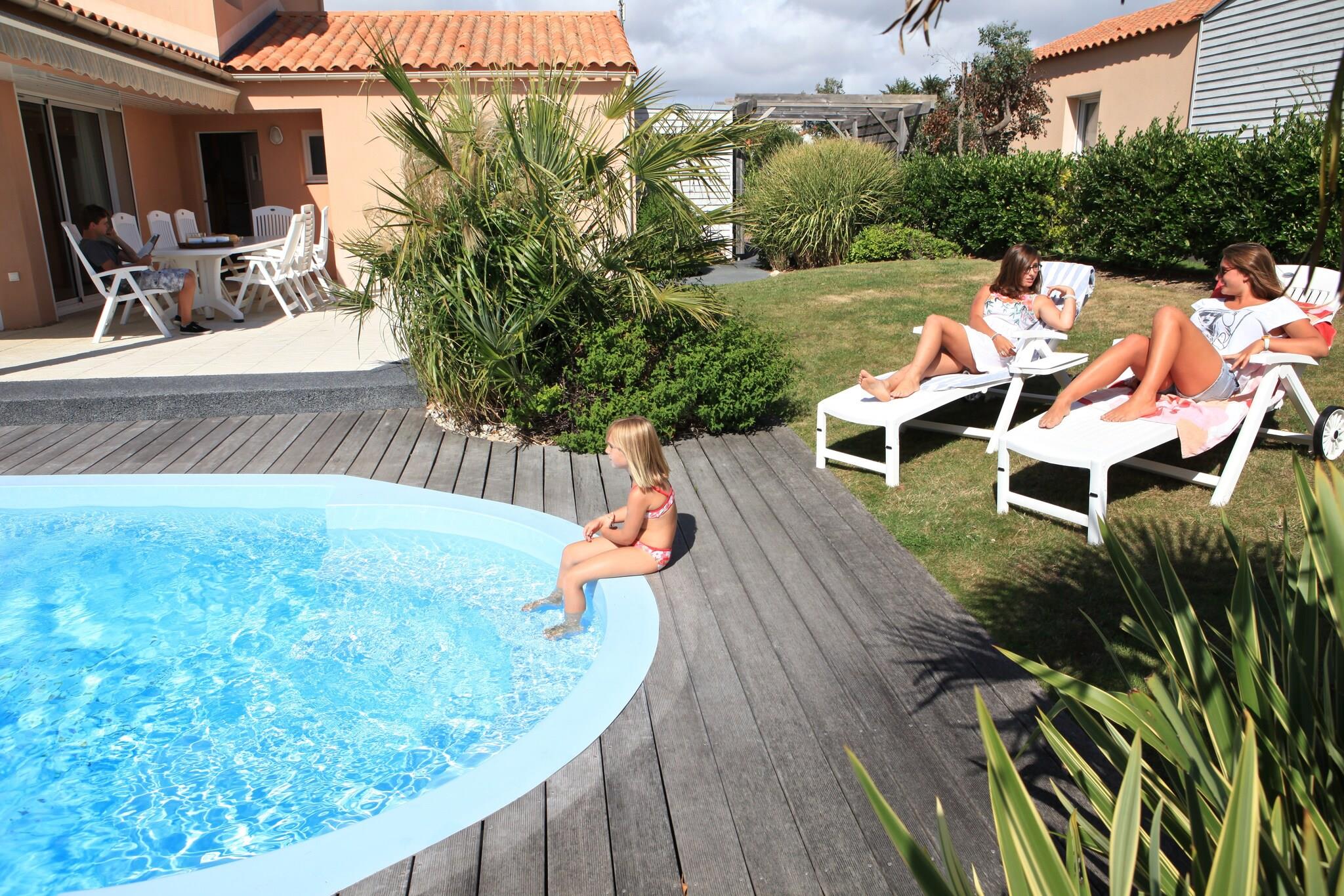 Comfort and Amenities The Sophora 6 Villa offers a comfortable and well-furnished stay, perfect for up to six guests. With three bedrooms—two featuring double beds or twin singles and the third offering bunk beds or singles—it suits families or groups alike. Two bathrooms equipped with a bath or shower and separate toilets ensure convenience. The fully equipped kitchen invites you to cook delicious meals, while the spacious living room is ideal for relaxing after a day of exploration. Outdoor Enjoyment Step outside to a large garden that surrounds a private swimming pool, offering a peaceful setting for sunbathing, swimming, or outdoor dining on the terrace. The villa also includes parking and internet access, enhancing your comfort during your holiday at Oasis Les Jardins. Location Highlights Located just 1 km from the sea, and within a short drive to Château d'Olonne (4.5 km) and Les Sables d’Olonne (5 km), you’ll have easy access to shops, restaurants, and tourist services. General supplies are 3 km away, and Nantes Airport is 120 km from the villa, making travel convenient for visitors.