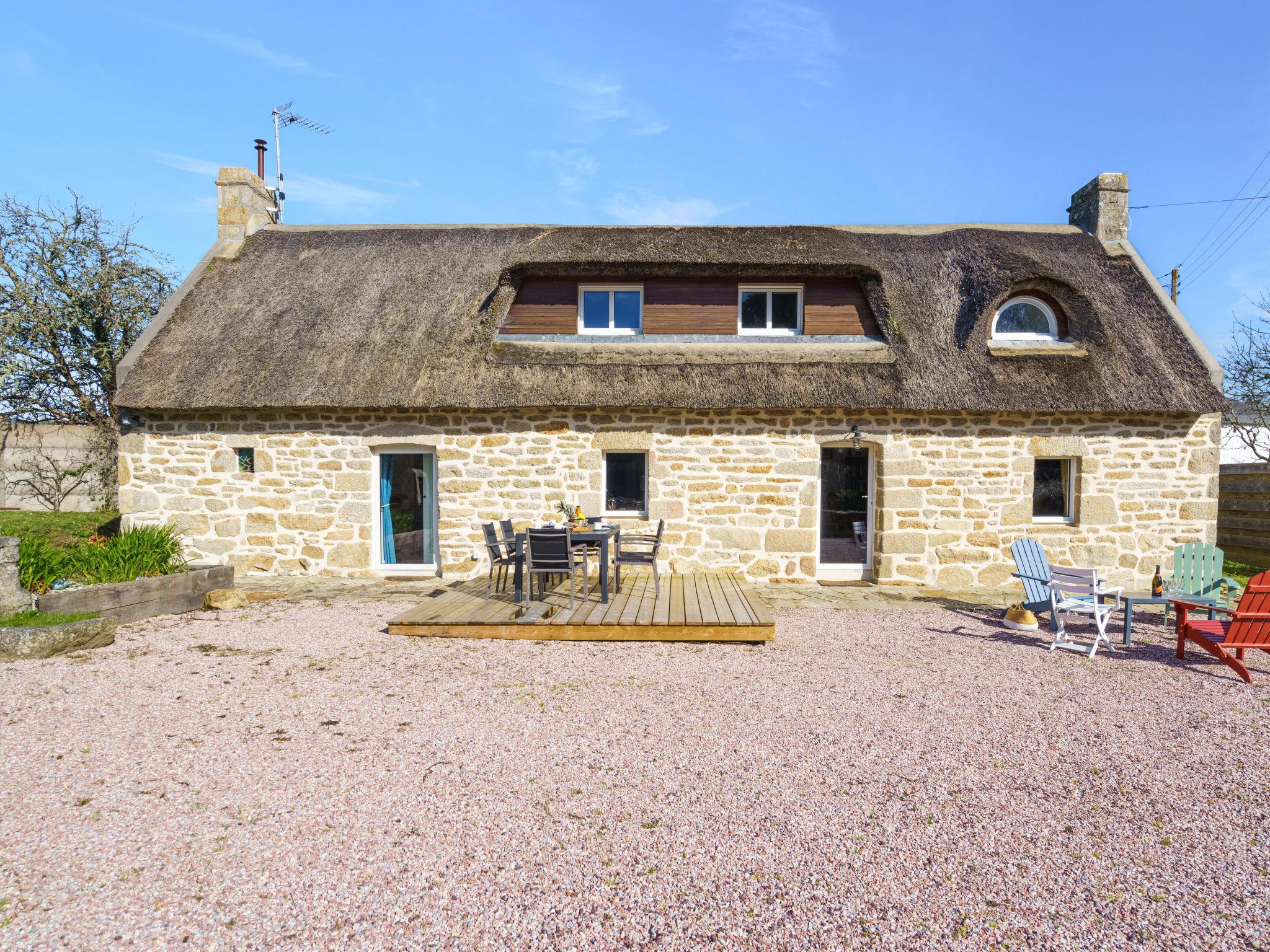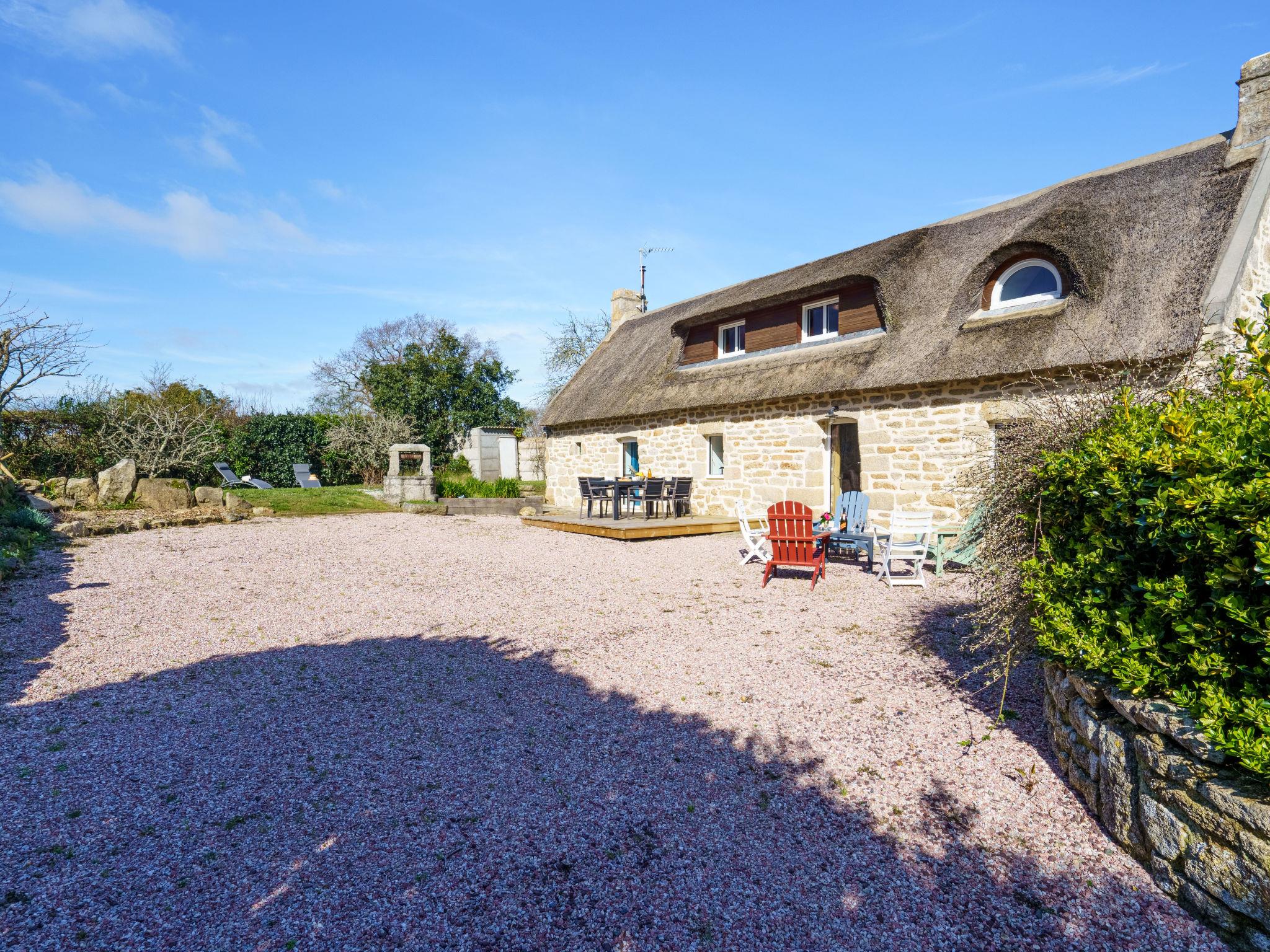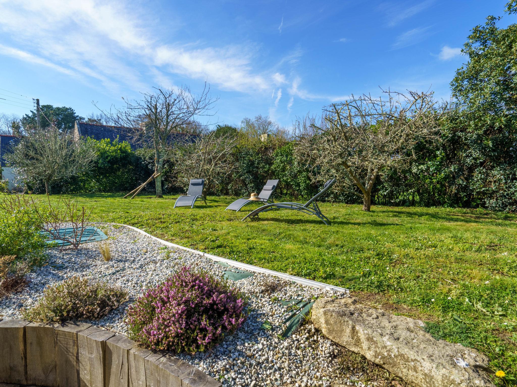 "la chaumière de Quélarn", 4-room house 130 m2, south facing position. Beautiful and rustic furnishings: living/dining room with open-hearth fireplace (only for decoration), TV (flat screen). Exit to the garden. 1 room with 1 french bed (160 cm, length 200 cm). Exit to the garden. Open kitchen (oven, dishwasher, 3 induction hot plates, toaster, kettle, microwave, freezer, electric coffee machine) with dining table. Shower, sep. WC. Electric heating. Upper floor: walk-through room with 2 beds (90 cm, length 190 cm). 1 room with 1 french bed (160 cm, length 200 cm). Gallery. Terrace, south facing position. Terrace furniture, deck chairs (3). Facilities: washing machine, dryer, iron, baby cot for up to 2 year olds, hair dryer. Internet (WiFi, free). Please note: non-smoking house. Smoke alarm. Offer by a private individual according to Art. 155, IV of CGI.