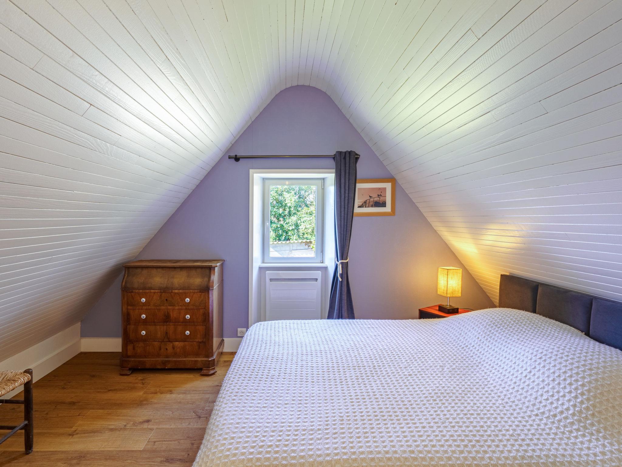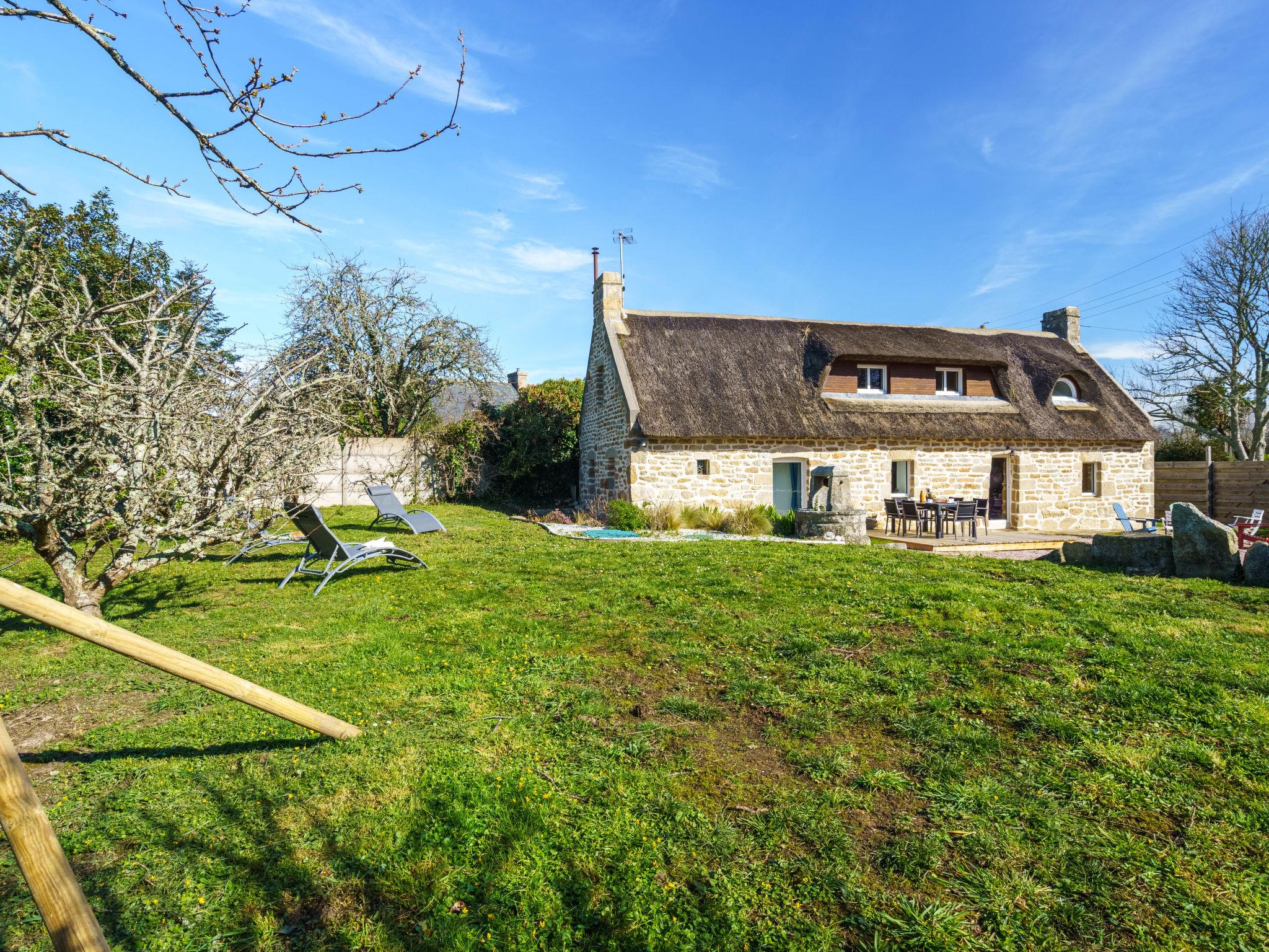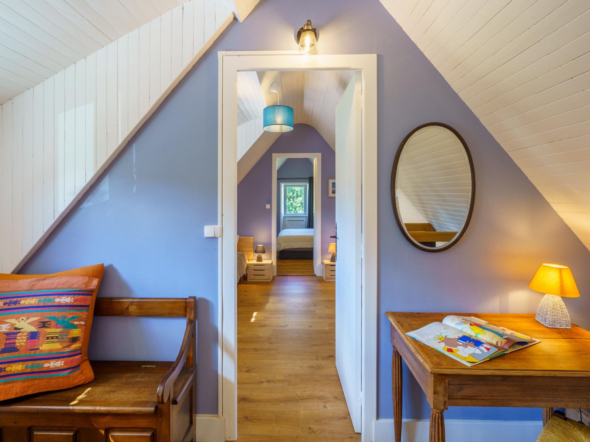 "la chaumière de Quélarn", 4-room house 130 m2, south facing position. Beautiful and rustic furnishings: living/dining room with open-hearth fireplace (only for decoration), TV (flat screen). Exit to the garden. 1 room with 1 french bed (160 cm, length 200 cm). Exit to the garden. Open kitchen (oven, dishwasher, 3 induction hot plates, toaster, kettle, microwave, freezer, electric coffee machine) with dining table. Shower, sep. WC. Electric heating. Upper floor: walk-through room with 2 beds (90 cm, length 190 cm). 1 room with 1 french bed (160 cm, length 200 cm). Gallery. Terrace, south facing position. Terrace furniture, deck chairs (3). Facilities: washing machine, dryer, iron, baby cot for up to 2 year olds, hair dryer. Internet (WiFi, free). Please note: non-smoking house. Smoke alarm. Offer by a private individual according to Art. 155, IV of CGI.