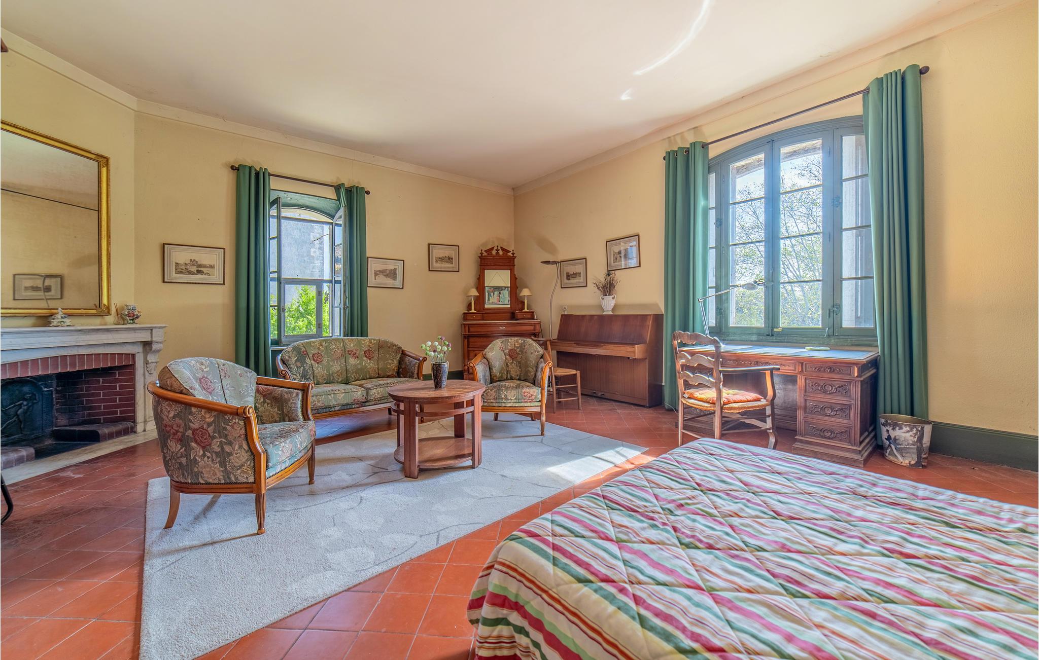 Leben Sie wie Gott in Frankreich und verbringen mit befreundeten Paar oder Ihrer Großfamilie einen großartigen Urlaub in diesem beeindruckenden Haus. Wandeln Sie durch das Haus und entdecken die wunderschönen Zimmer mit geschmackvollen Fliesenböden, schönen Farben und einer antiken Ausstattung. Hier können sich Jung und Alt, Musikliebhaber und Ruhesuche wohlfühlen und Ihren Hobbys nachgehen. Kochen Sie in der großen Küche oder musizieren Sie auf dem Flügel oder nehmen sich ein Buch aus der Bibliothek. Spazieren durch den Garten und suchen Sie Ruhe in der privaten Kapelle oder entspannen sich im Schatten der großen Bäume. Entdecken Sie etwas abseits des Hauses den schönen Swimmingpool, der zum Baden und Spielen im Wasser einlädt.