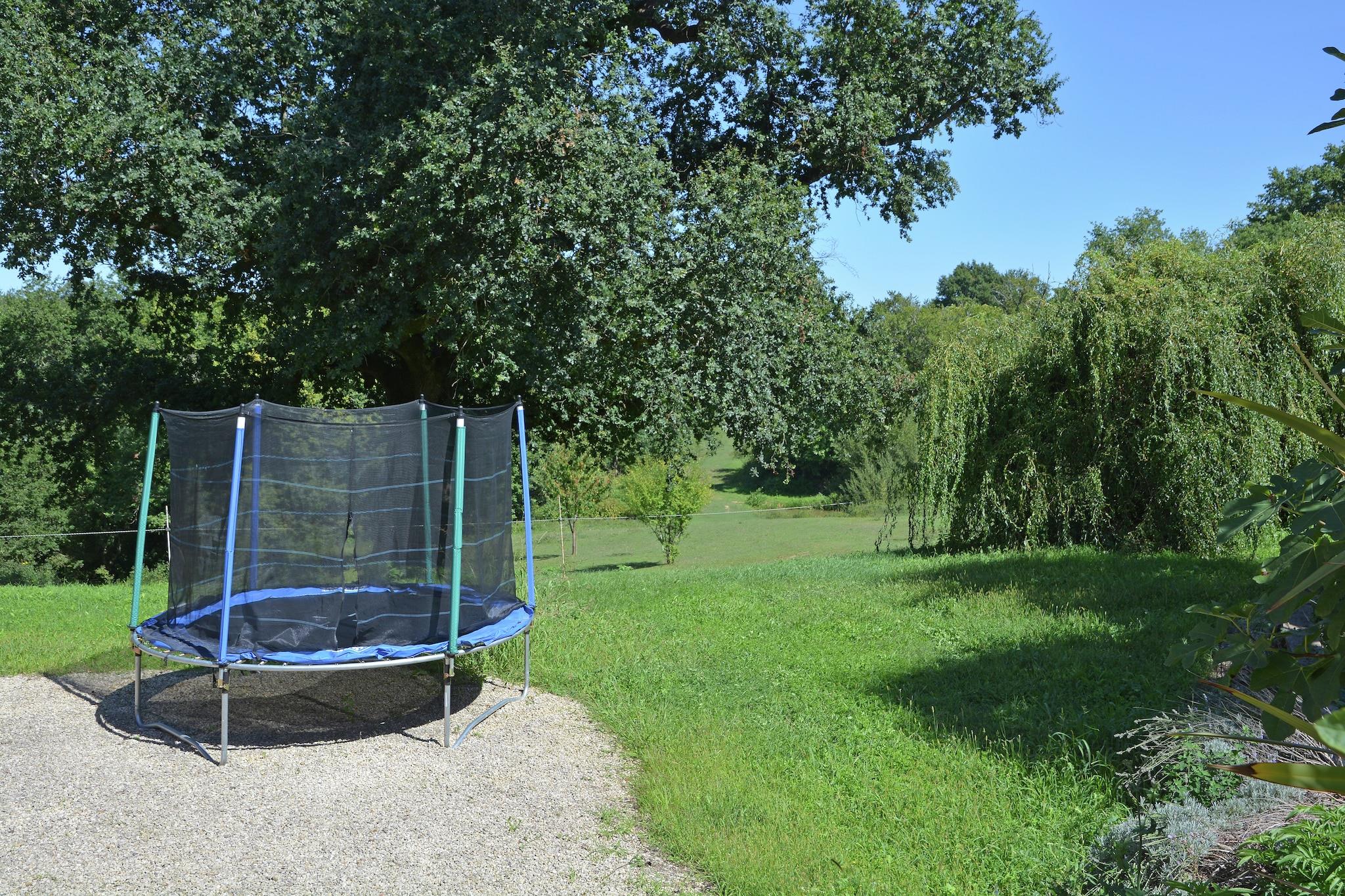 Located in Lias-d'Armagnac, this 4-bedroom villa for 10 people is perfect for families on vacation. Guests can take a dip in the swimming pool, enjoy a barbecue and access free WiFi at this pet-friendly property. Guests can visit the city of Estang, located just 4 km away. There, you can enjoy a delicious meal in one of the restaurants or enjoy shopping. Tastefully furnished with a large living room, guests can light the fireplace to keep warm. The kitchen is well equipped with an oven, stove , microwave and refrigerator. Guests can also relax in the garden with garden furniture. For recreation, a trampoline and a ping pong table are also provided. This child-friendly property also features a high chair and a children's bed. The nearest airport, Toulouse, is 100 km away.