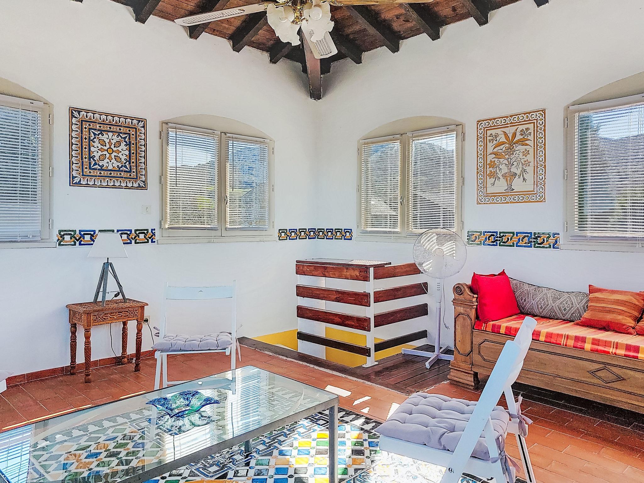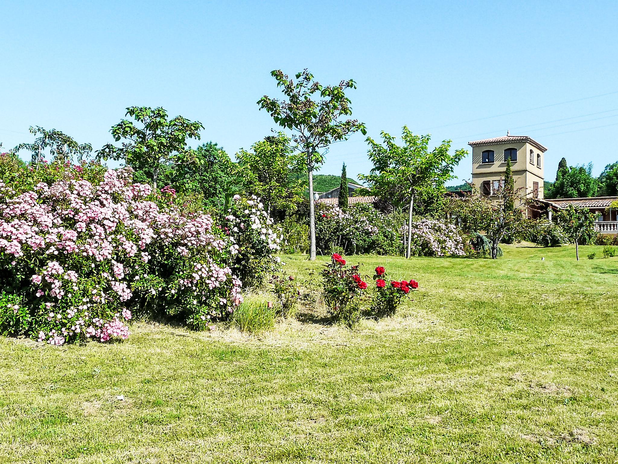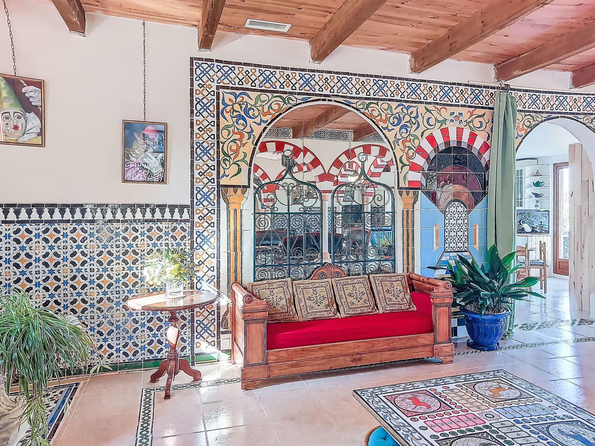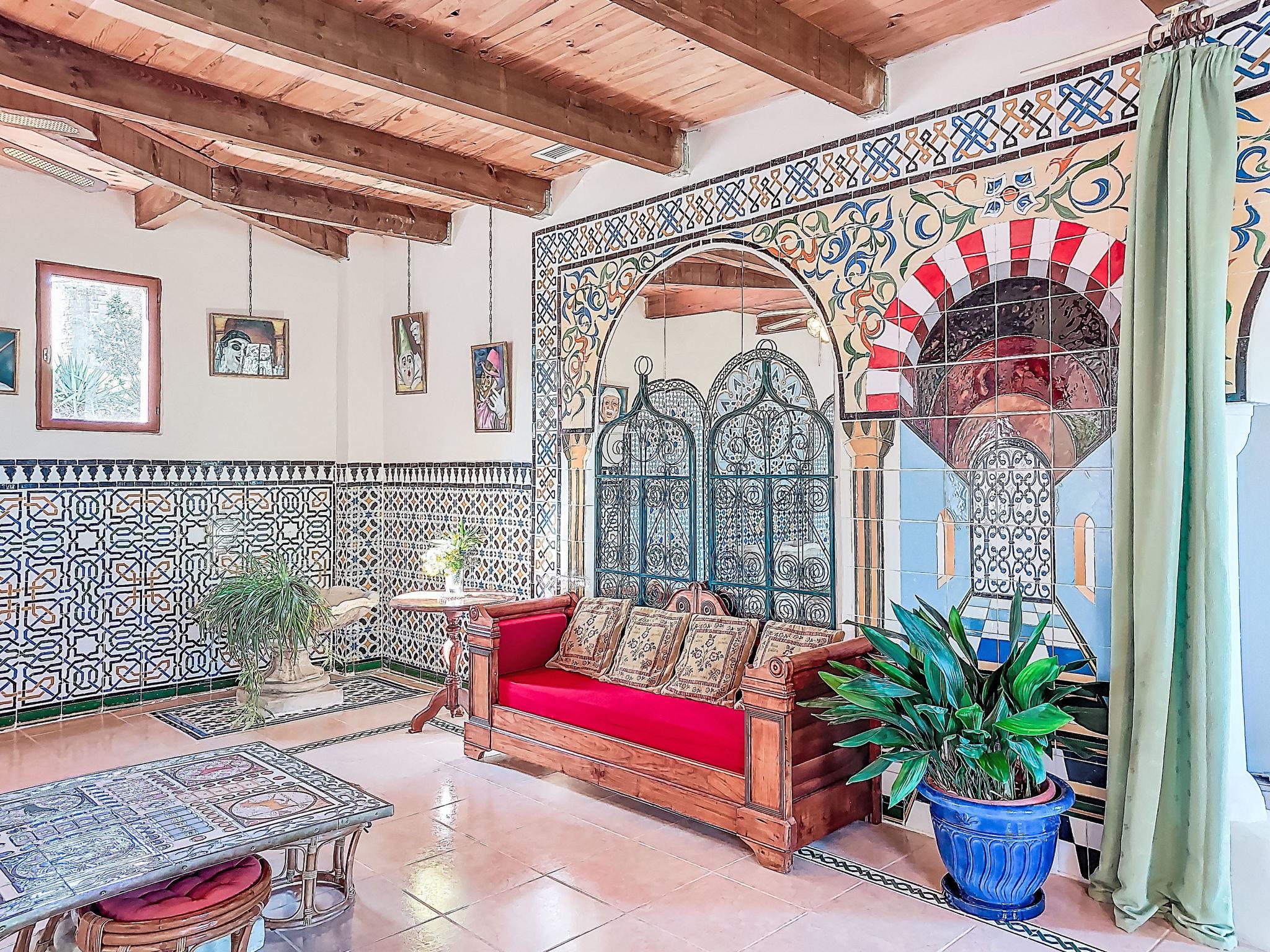6-room house 300 m2 on 3 levels. Partly renovated in 2025, stylish furnishings: large living/dining room 120 m2 with TV and international TV channels (flat screen), DVD and air conditioning. Exit to the terrace. 1 room with 2 beds. 1 room with 1 french bed (160 cm, length 200 cm), separate WC and shower. 1 room with 1 french bed (140 cm), separate WC and shower. Open kitchen (oven, dishwasher, 4 ceramic glass hob hotplates, microwave, freezer, electric coffee machine, Capsules for coffee machine (dolce gusto) extra) with dining table. Shower/WC. Upper floor: (spiral staircase), 1 room with 1 french bed (160 cm, length 200 cm). 2nd upper floor: (spiral staircase) lounge. Electric heating. Porch 12 m2, south facing position. Terrace furniture, barbecue (portable), deck chairs (8). Marvellous panoramic view of the valley and the countryside. Facilities: washing machine, iron, hair dryer. Garage (2 cars), height 225 cm, width 237 cm. Please note: maximum 1 pet/ dog allowed. Smoke alarm. 3 wall fountains and a skylight in the living room. Alambra mosaics (Arabic type) throughout the house. The rooms located upstairs are in the tower, the living room is accessible via the double bedroom only from where we have a 180 degree view of the surrounding countryside. A plancha (gas) has been installed on the terrace near the kitchen. Please note: Air conditioning is only available in the bedrooms.