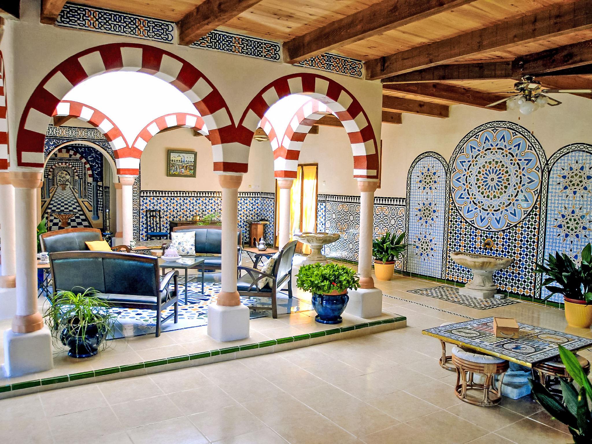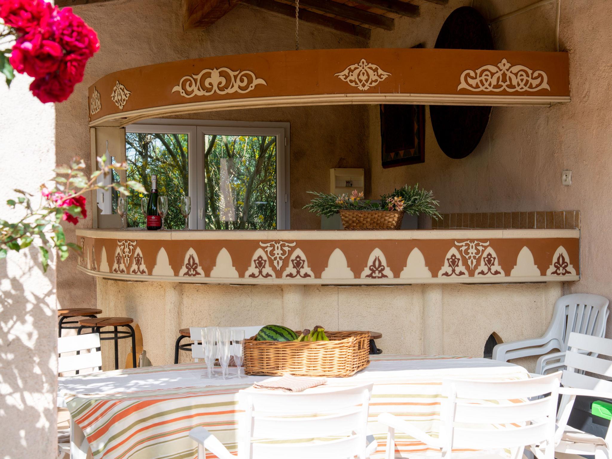 Le Hameau de Vendemies 3 km from Limoux: Former stables comprising a single-storey building and a 2-storey tower, in the oriental style (Alambra mosaics), in a very isolated position, on a hill overlooking meadows and fields. Single-family house "Les Ecuries". Outside the resort, in the countryside. For shared use: boccia. Private: natural garden 5'000 m2 (fenced), swimming pool angular (12 x 4 m, depth 150 - 150 cm, seasonal availability: 01.Jun. - 30.Sep.) with internal staircase. Terrace (120 m2), parking on the premises, single garage. Shop 3 km, grocery 3 km, restaurant 3 km, café 3 km, bus stop "Gare de Limoux" 6 km. Nearby attractions: Cité de Carcassonne 32 km. Please note: car recommended.