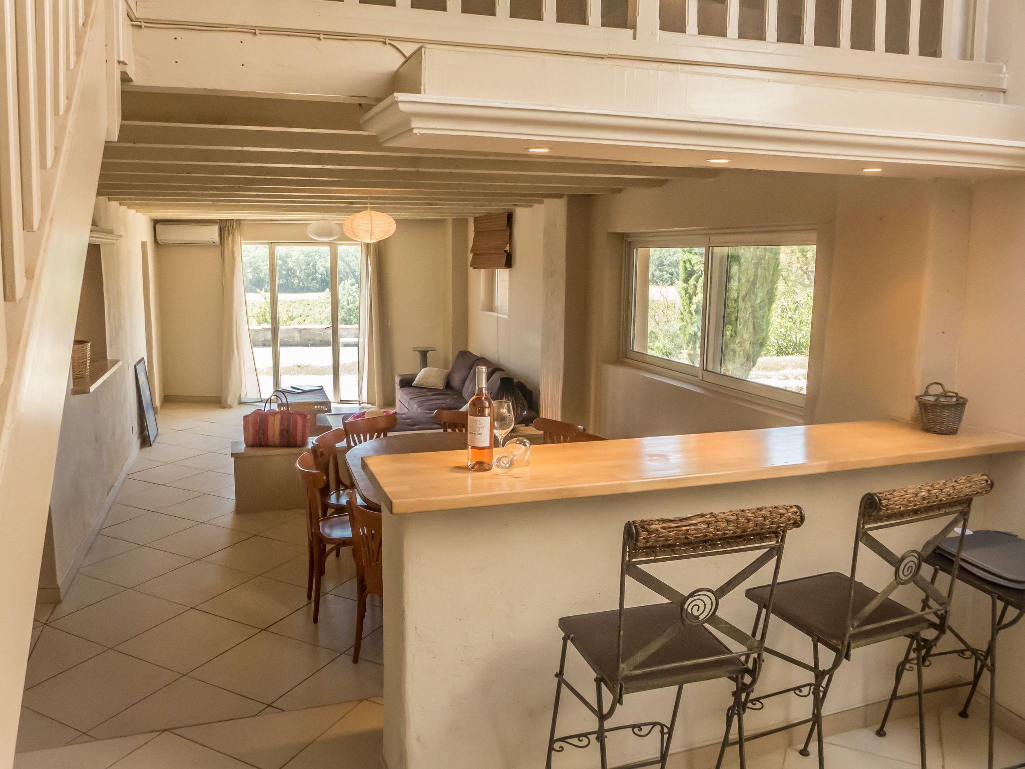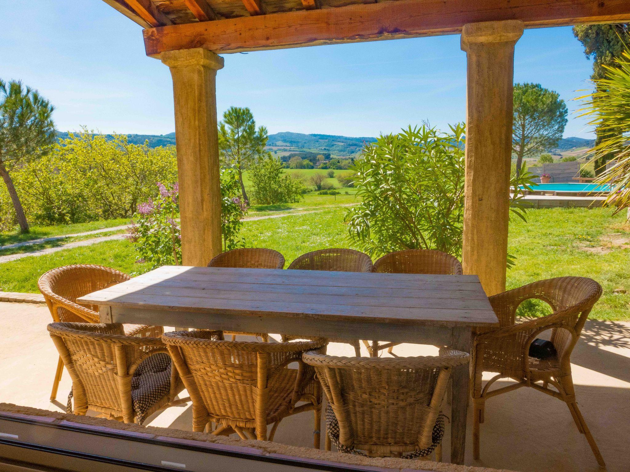 The 260 m² house is comfortably equipped for 10 people. It has its own 600 m² enclosed garden, with a large covered terrace and a swimming pool with wooden decking. The house is sheltered from view and offers superb views of the surrounding hills.