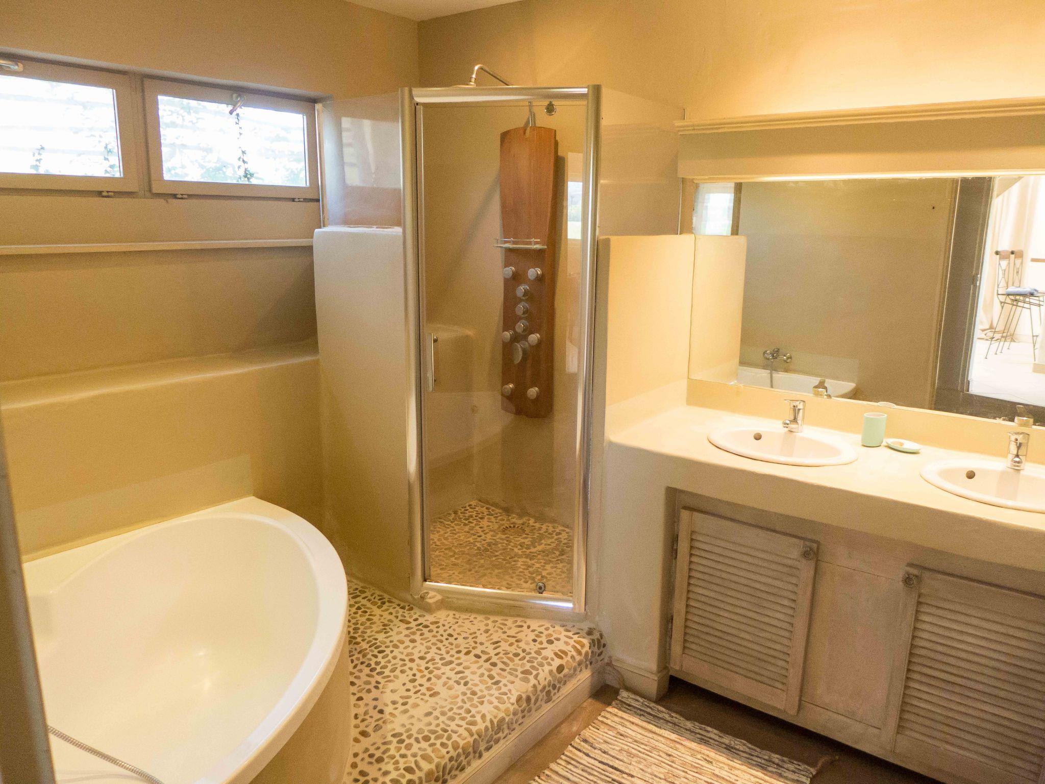 260 m² holiday home, 600 m² enclosed outdoor space, 5 bedrooms, 1 bathroom, 1 shower room. Private swimming pool, 2 terraces, 1 of which is covered with garden furniture and sun loungers.