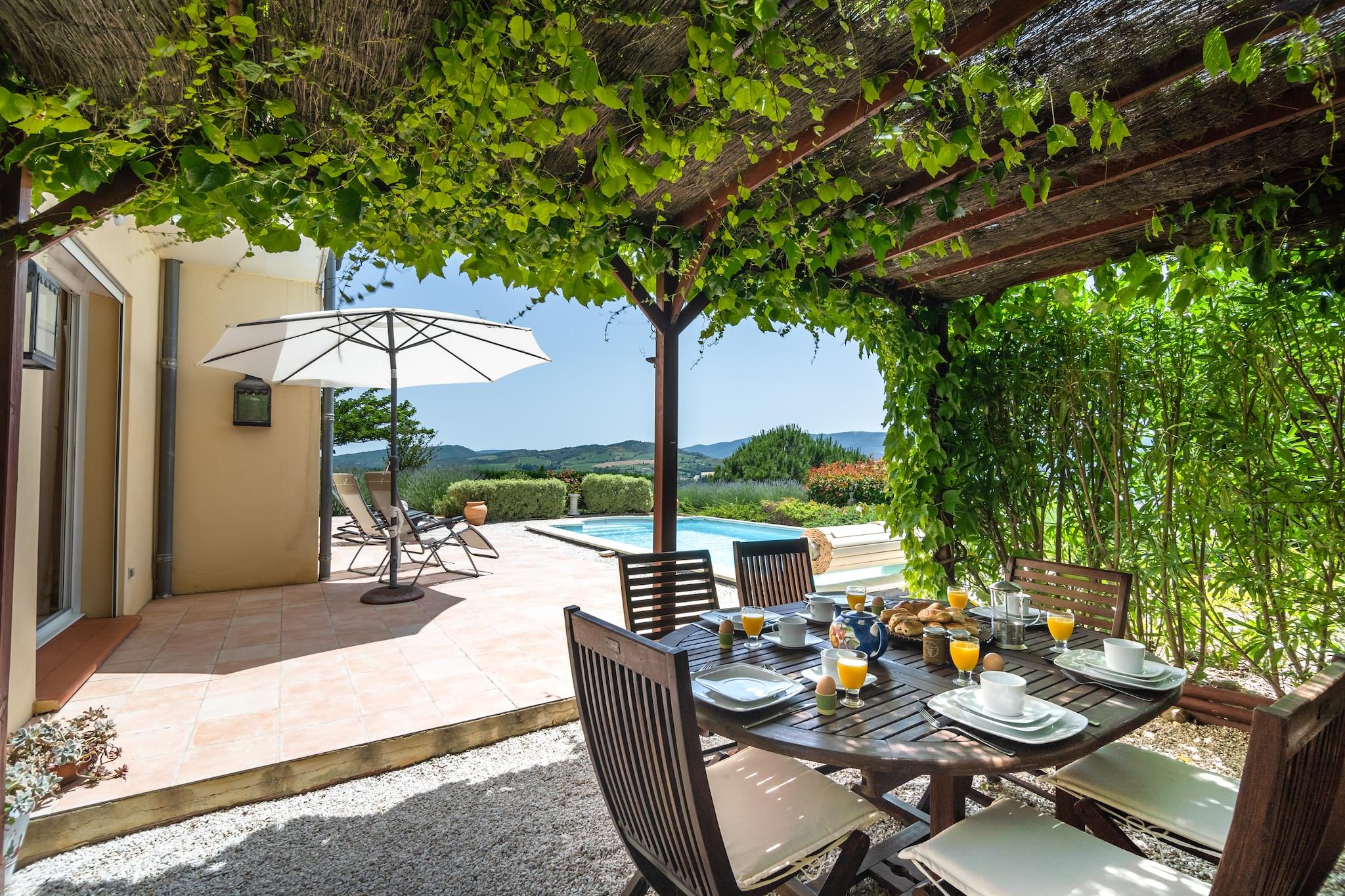 Enjoy a luxury holiday with villa Tranquille in beautiful Limoux. This spacious six-bed villa has a private pool and phenomenal views over the village and the mountains beyond. The villa has three bedrooms, three bathrooms and internet access. The various terraces offer plenty of seating areas. At this villa you have optimal privacy. Located in the heart of the 'Land of the Cathars'. Surrounded by the mountains of the Corbières. Close to the famous Cathar castles of Montsegur, Peyrepertuse and Queribus and close to the Spanish border. The villa is on the outskirts of the city of Limoux where great wines come from and also the Blanquette de Limoux. Limoux is a nice cosy town to visit. For example, every year a Carnival festival is organised in the city. There are also numerous interesting cultural sights, such as the Pont-Neuf de Limoux. This ancient bridge dates back to the 18th century AD. Remnants of various fortifications from the 14th century are also visible in several places in the city. The Notre-Dame de Marceille basilica is also definitely worth a visit. Limoux is a good base for a wonderful holiday in the Languedoc-Roussillon region. From the garden, you have views of several mountain ranges, including the sacred mountain Pic de Bugarach. According to 'experts', the world would perish in 2012 because the Mayan calendar ended in that year. Only at this special mountain would salvation be found. The house has air-conditioning and fiber internet facilities also available.