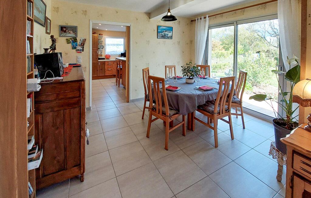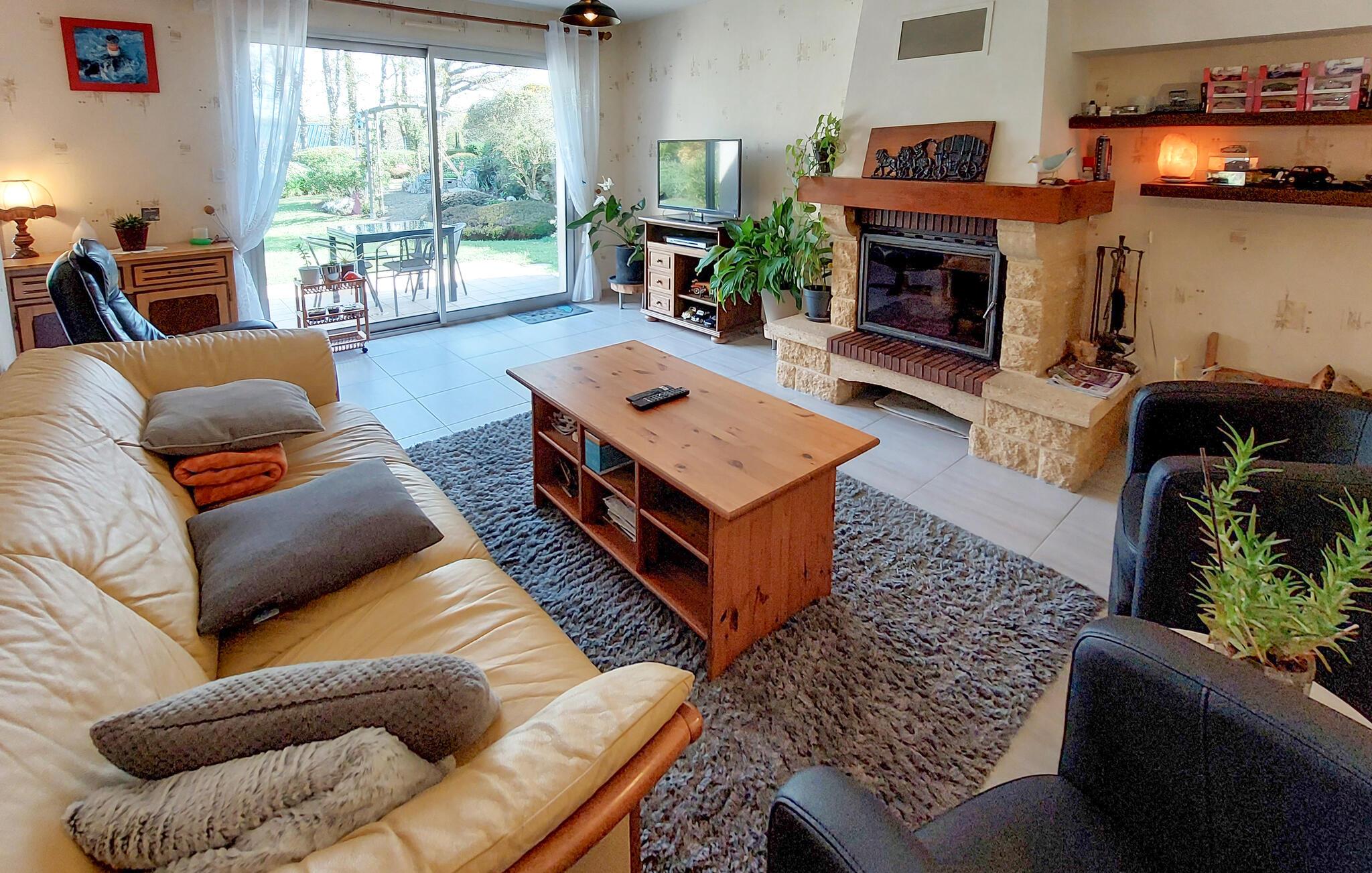 Betreten Sie das Haus und lassen Sie sich von der gemütlichen Atmosphäre im Wohnzimmer verzaubern. Machen Sie es sich auf dem bequemen Sofa gemütlich und verbringen Sie gesellige Abende mit Ihrer Familie. Die großzügigen Fenster bieten einen herrlichen Blick in den Garten und sorgen für eine angenehme Helligkeit im Raum. Gehen Sie in die gut ausgestattete Küche, um sich kulinarisch zu entfalten. Kochen Sie lokale Spezialitäten und genießen Sie diese im angrenzenden Essbereich mit direktem Zugang zur Terrasse.