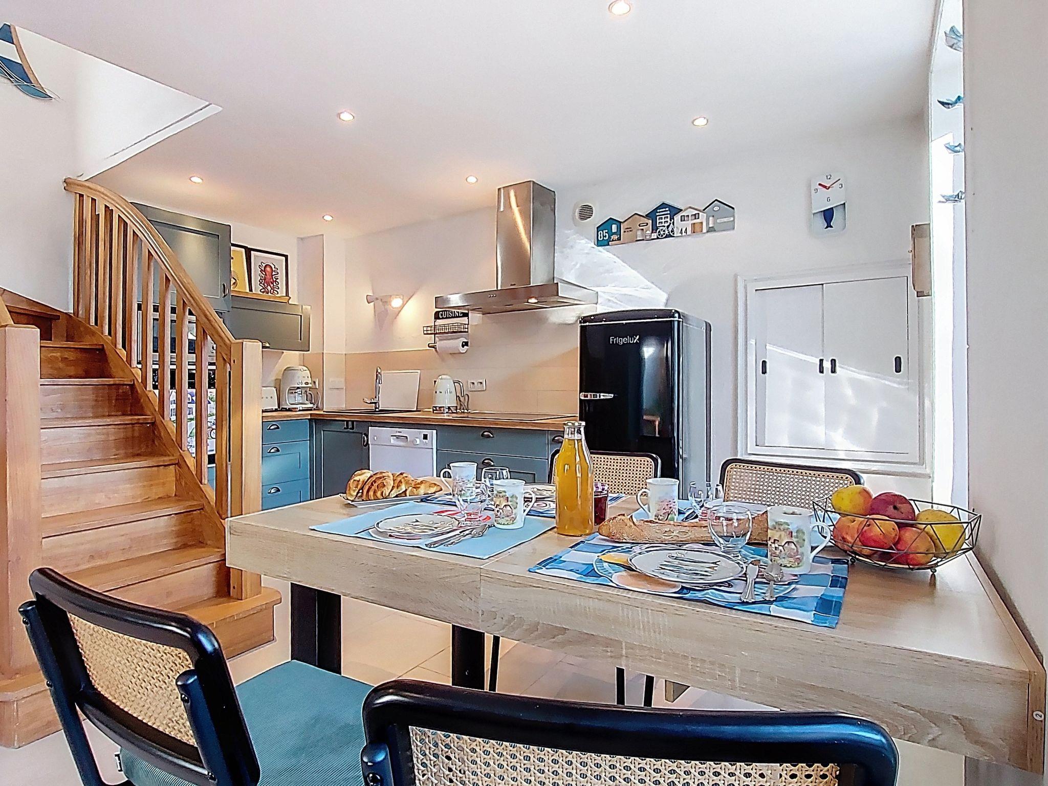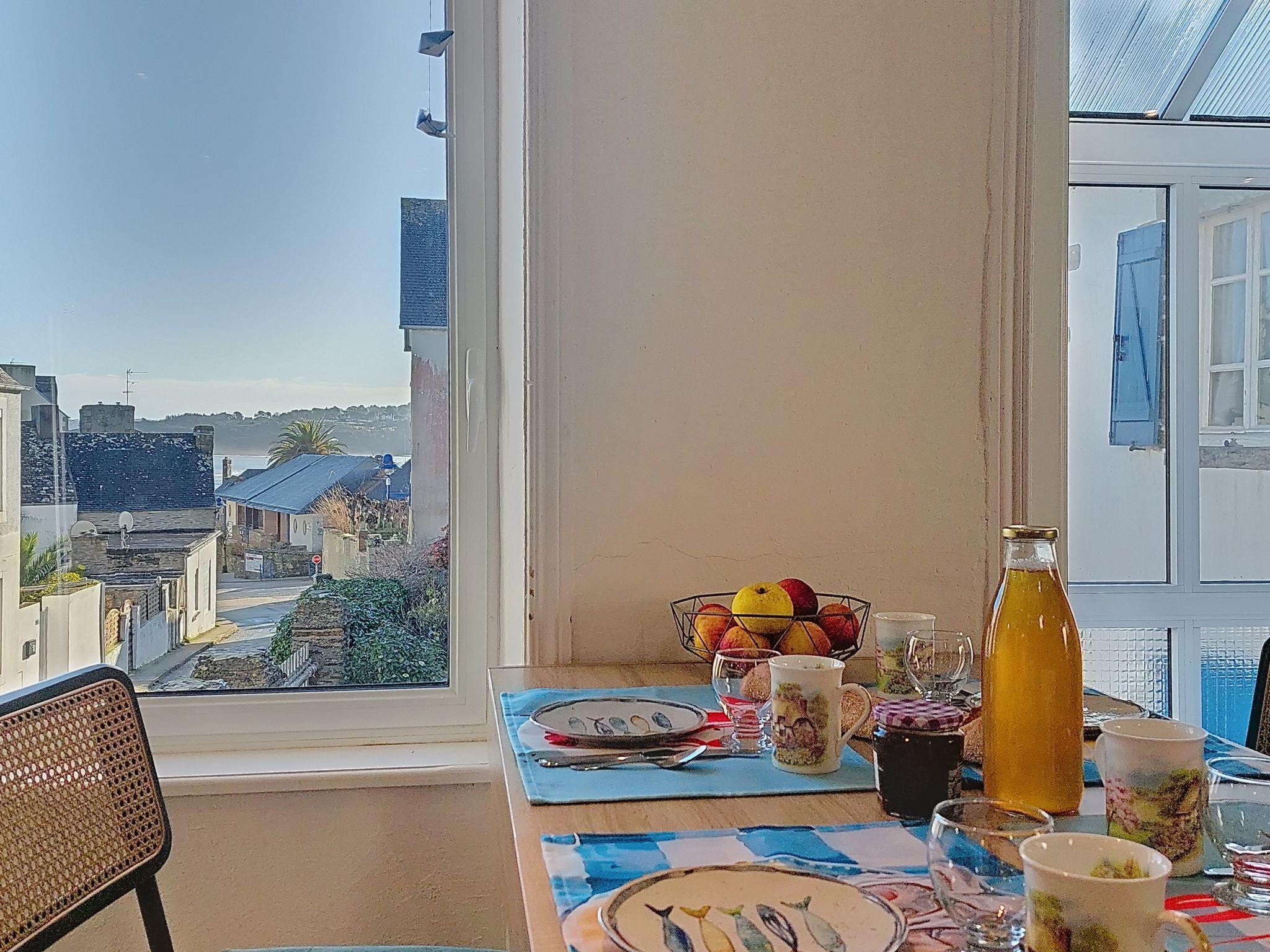 "Ty Côte", 3-room house 65 m2 on 2 levels. Bright, renovated in 2025, beautiful and tasteful furnishings: open living/dining room 25 m2 with TV (flat screen). Exit to the terrace. Large, open kitchen 15 m2 (oven, dishwasher, 3 induction hot plates, kettle, microwave, freezer, electric coffee machine, Capsules for coffee machine (Dolce Gusto) extra). Shower, sep. WC. Upper floor: 2 rooms 10 m2, with sloping ceilings, each room with 2 beds (80 cm, length 200 cm). Shower/WC. Electric heating. Large terrace 25 m2, south facing position. Terrace furniture, barbecue (portable), deck chairs (2). View of the sea. Facilities: washing machine, dryer, hair dryer. Internet (WiFi, free). Please note: non-smoking house. Maximum 1 small pet/ dog allowed. Smoke alarm. Offer by a private individual according to Art. 155, IV of CGI.