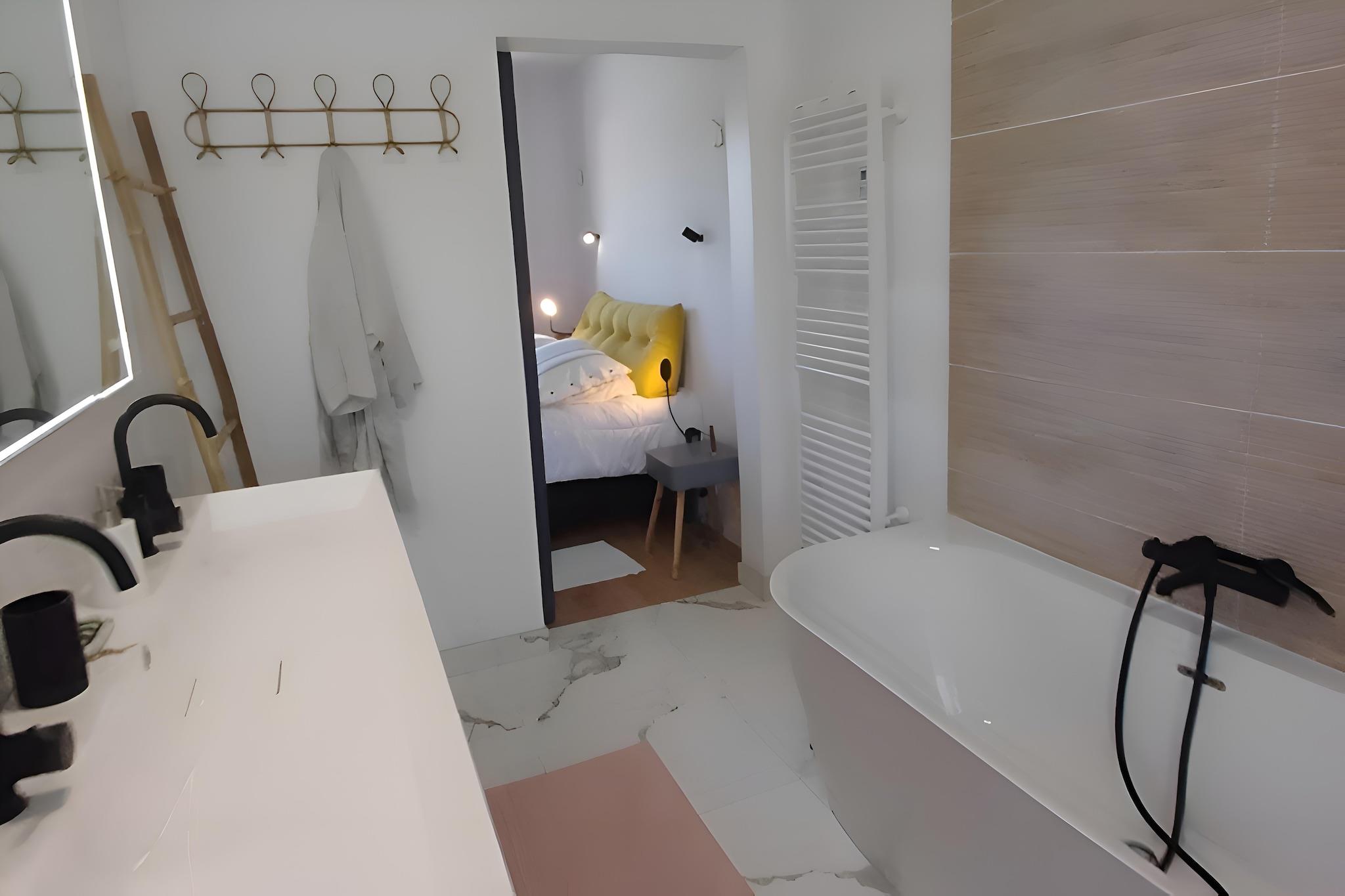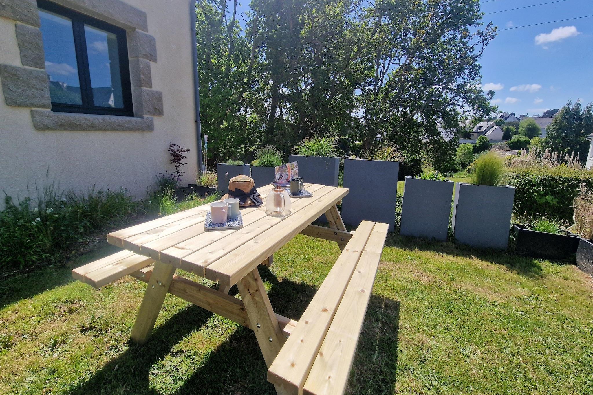 Welcome to Locquirec, to this charming large house, ideally located facing the bay and just a 5-minute walk from the harbour. Completely renovated with taste, it offers a superb living room bathed in light thanks to its large bay window opening onto the terrace and garden with sea views. With a cosy lounge, modular table and fully equipped open-plan kitchen, everything you need to share wonderful moments with family or friends. On the ground floor, a bedroom with a double bed (160 cm) and sea view has an en-suite bathroom (shower, bath, double basin) and separate WC. Upstairs, there are three welcoming bedrooms: a large bedroom with a desk and double bed (180 cm), one with a double bed (160 cm) and one with two single beds (90 cm). A second bathroom with a bathtub and separate WC complete the accommodation. A furnished terrace, deckchairs and barbecue invite you to enjoy the view of the bay to the full. The beach, shops and harbour are within walking distance: the ideal location for an unforgettable holiday.