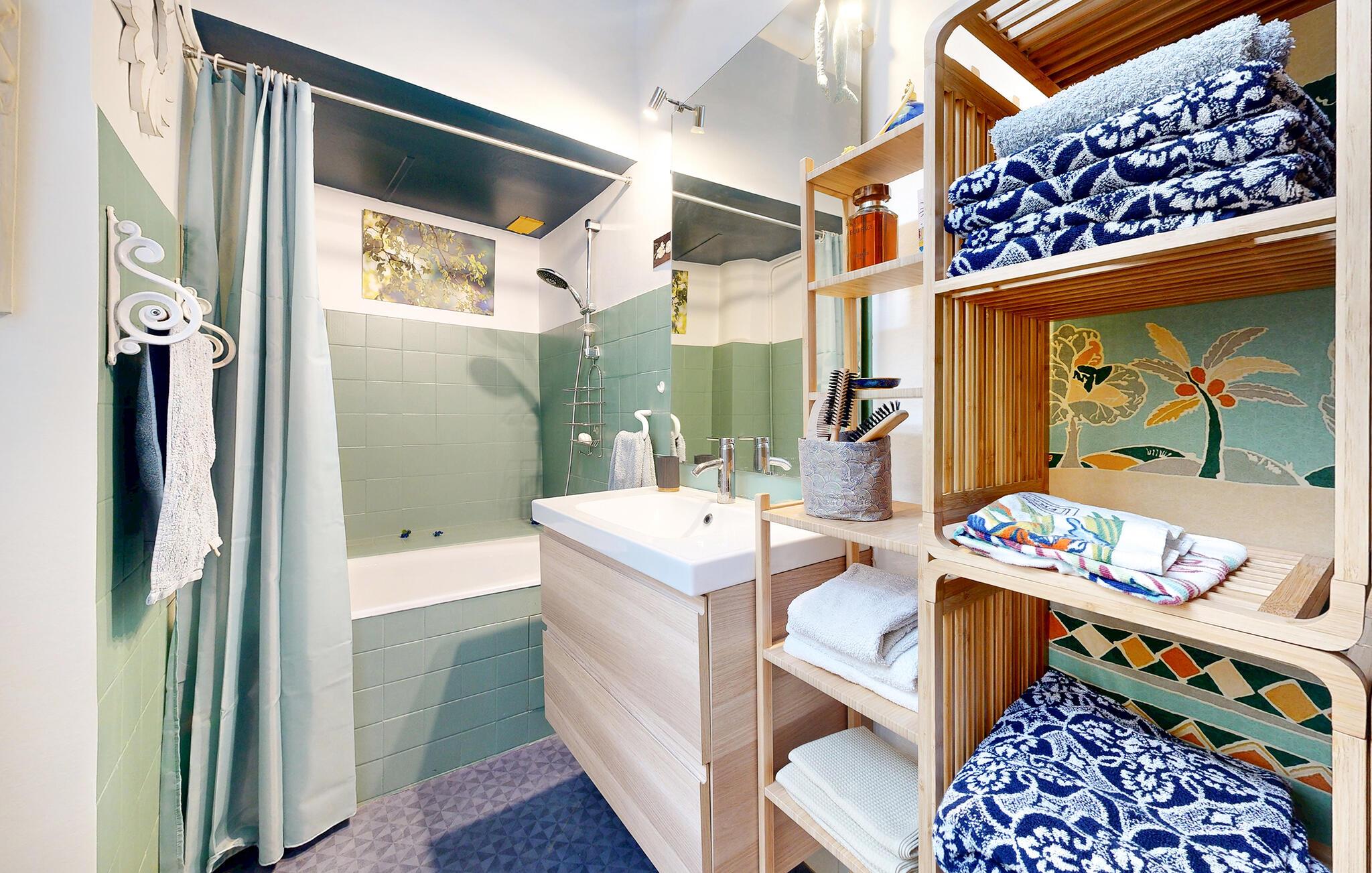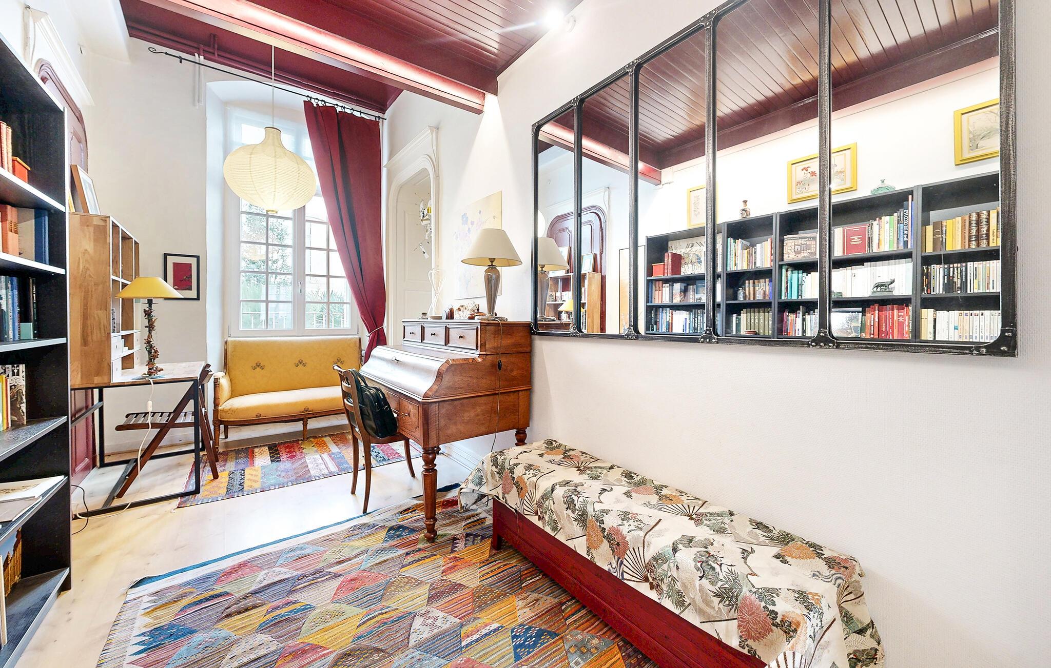 Willkommen in Ihrer stilvollen Ferienwohnung im Herzen von Lons-le-Saunier. Lassen Sie sich von der eleganten Einrichtung und der warmen Atmosphäre verzaubern. Diese geschmackvoll renovierte Unterkunft im Erdgeschoss eines historischen Gebäudes bietet Ihnen den idealen Rückzugsort für einen entspannten Aufenthalt. Betreten Sie das großzügige Wohnzimmer und machen Sie es sich auf dem Sofa bequem. Die harmonische Mischung aus modernen Elementen und klassischen Akzenten, wie der Wanddeko und den edlen Holzmöbeln, schafft eine einzigartige Wohlfühlatmosphäre. Schnappen Sie sich ein Buch aus dem Bücherregal oder genießen Sie ein Glas Wein in der gemütlichen Sitzecke. Die offene Küche lädt zum gemeinsamen Kochen ein. Nehmen Sie am stilvollen Esstisch Platz und lassen Sie den Abend in angenehmer Gesellschaft ausklingen.