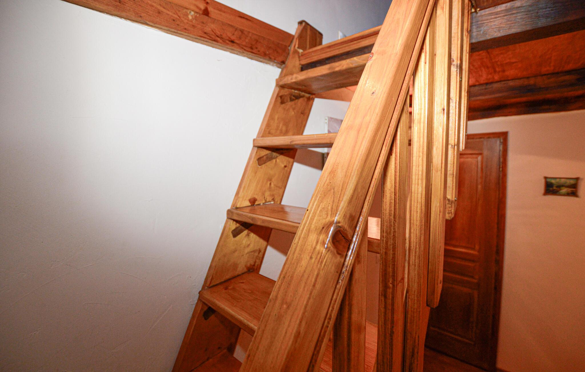 Staircase: Steep. Narrow. Open steps