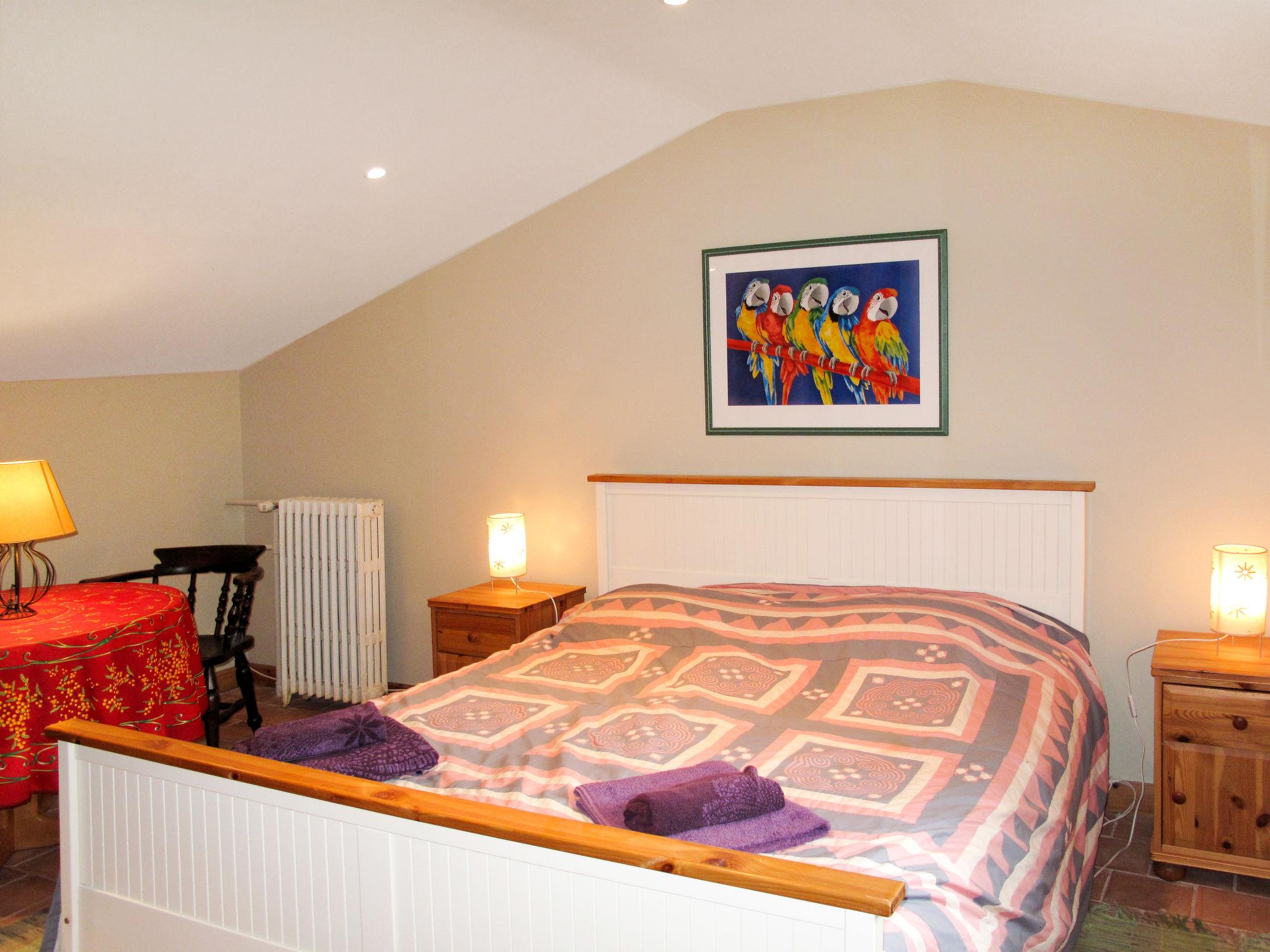 "Mas des Lavandes", 8-room house 200 m2 on 2 levels. Tasteful and cosy furnishings: living room with open-hearth fireplace (only for decoration), dining table, satellite TV, DVD and air conditioning. Exit to the terrace. Open small living room. Exit to the terrace. Small living room. Exit to the terrace. 2 rooms, each room with 1 double bed (160 cm), bath/WC. Exit to the terrace. Gallery with sloping ceilings with 1 double bed (160 cm), shower and air conditioning. Kitchen (oven, dishwasher, 4 ceramic glass hob hotplates, toaster, kettle, microwave, freezer, electric coffee machine) with air conditioning. Sep. WC. Upper floor: 2 rooms, each room with 1 double bed (160 cm), shower/WC and air conditioning. Electric heating, gas heating. Terrace 50 m2, porch 10 m2. Terrace furniture. View of the garden. Facilities: washing machine, iron, children's high chair, baby cot for up to 2 year olds (extra). Internet (WiFi, free). Please note: maximum 1 pet/ dog allowed. Smoke alarm. When there are less than the maximum number of guests staying at the property, not all of the bedrooms will be available for use. Instead of an enclosed bedroom, some sleeping areas are located in an open-plan area (gallery, alcove, etc.).
