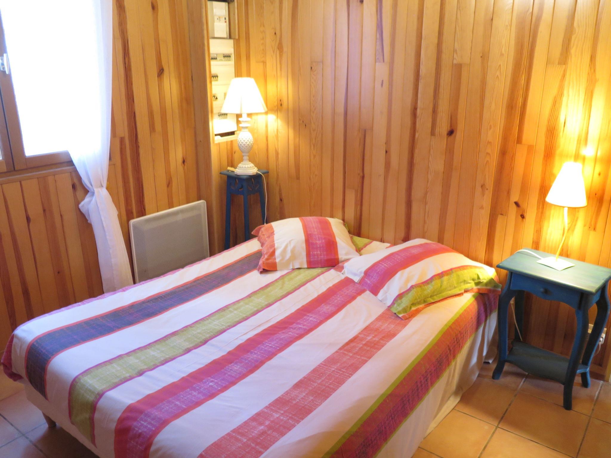 "Le Chêne Vert", 4-room chalet 100 m2. Bright, practical furnishings: large living/dining room with open-hearth fireplace, dining table and TV (flat screen), hi-fi system. Exit to the terrace. 1 room with 1 bed (90 cm, length 190 cm), 1 french bed (140 cm, length 190 cm). 1 room with 1 french bed (160 cm, length 200 cm). 1 room with 1 french bed (140 cm, length 190 cm), shower. Open kitchen (oven, dishwasher, 5 gas rings, toaster, kettle, microwave, freezer, electric coffee machine, Capsules for coffee machine (Senséo) extra). Shower, sep. WC. Electric heating, air-conditioning. Large terrace partly roofed, porch. Terrace furniture, barbecue, deck chairs. Beautiful view of the countryside and the forest. Facilities: washing machine, iron, children's high chair, baby cot (extra), logs (free). Internet (WiFi, free). Please note: non-smoking house. Maximum 2 pets/ dogs allowed. Smoke alarm.
