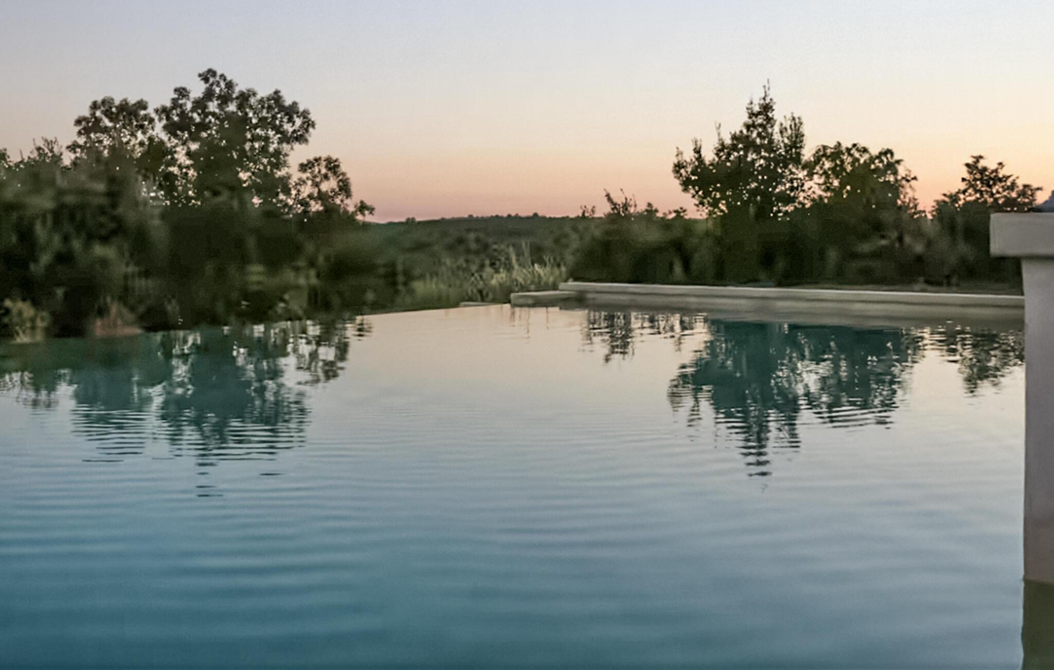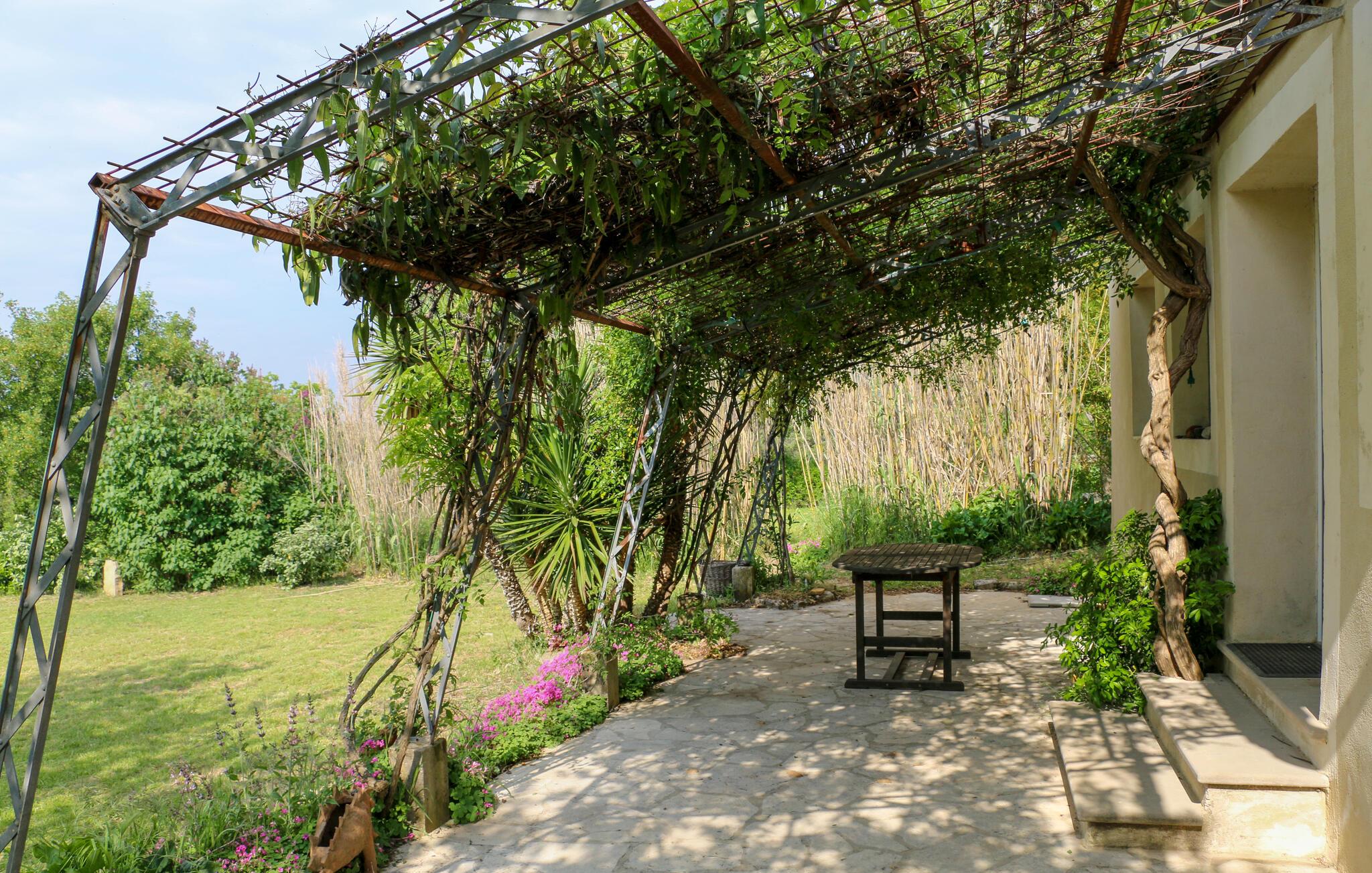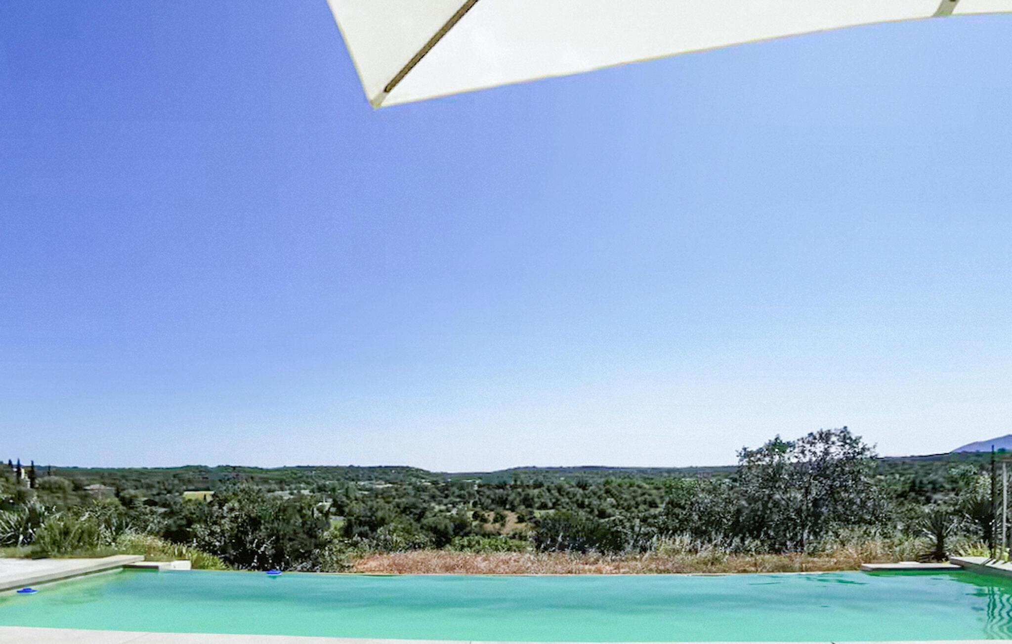 Der große Garten bietet Platz zum Spielen oder Ruhen im Grünen. Gehen Sie hinaus auf die südseitige Terrasse und genießen Sie den Duft von Kräutern und Pinien. Nehmen Sie Ihr Frühstück im Schatten der Rankpflanzen ein oder entspannen Sie auf einem Liegestuhl am Infinity-Pool, der einen traumhaften Blick über die weite Landschaft eröffnet.