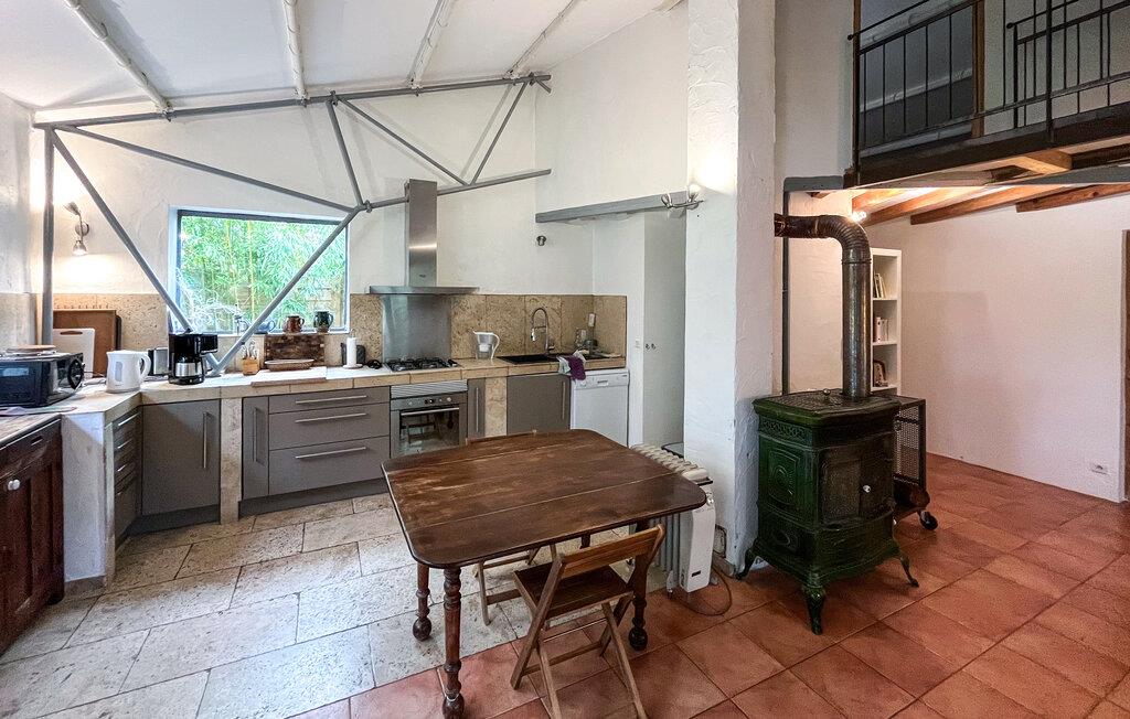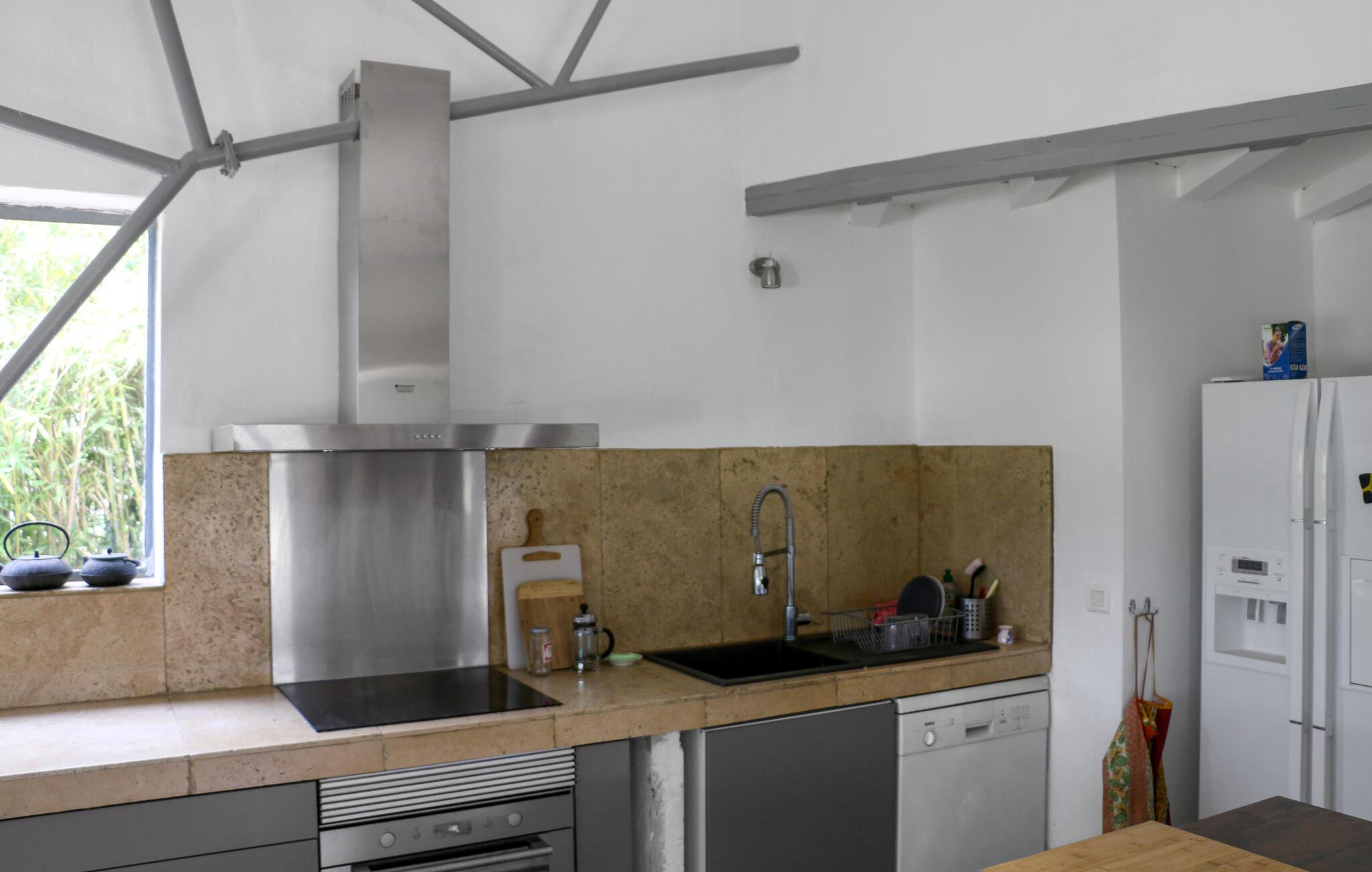 Genießen Sie Ihren Urlaub in Ihrem charmanten Haus, das auf einer Anhöhe eingebettet in die wilde Landschaft der Garrigue liegt. Der Wohnbereich mit seinen warmen Farben, Holzelementen und der gemütlichen Couch lädt zum Entspannen ein. Machen Sie es sich mit einem Buch bequem oder schauen Sie einen Film. Ein Kaminofen sorgt bei Bedarf für wohlige Wärme am Abend. Die großzügige Küche bietet der ganzen Familie die Möglichkeit, gemeinsam ihre Urlaubsmahlzeiten zuzubereiten.