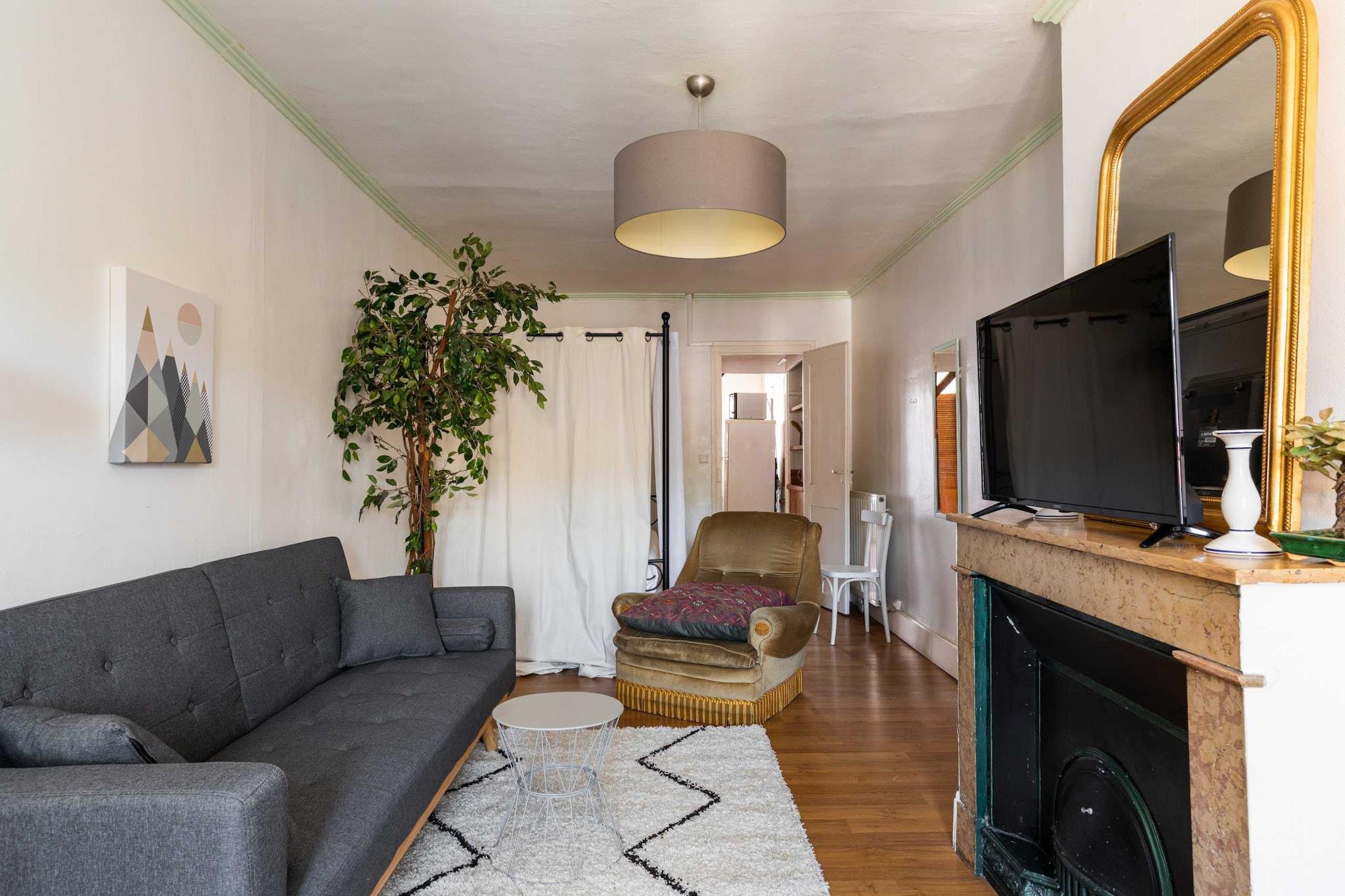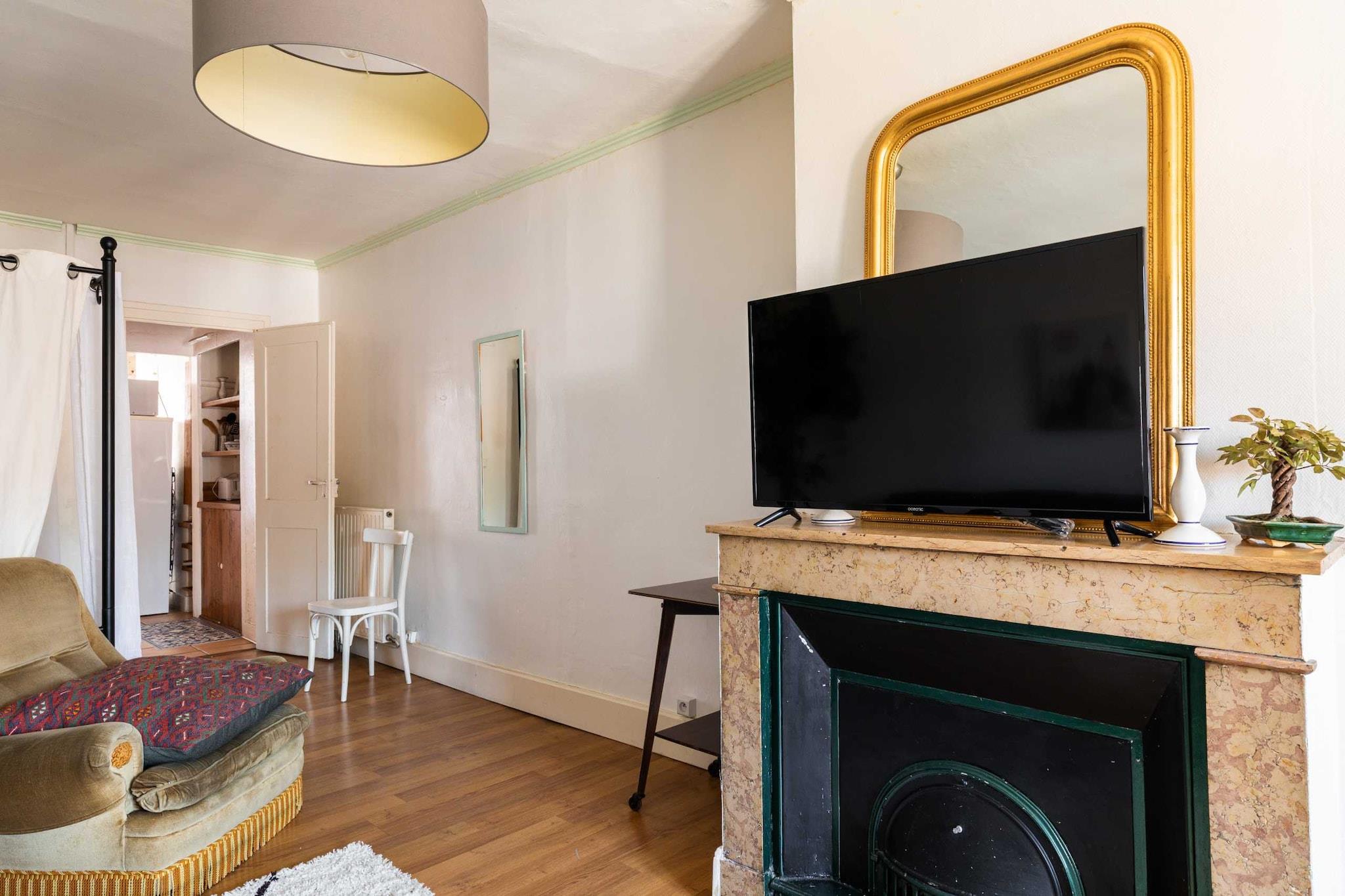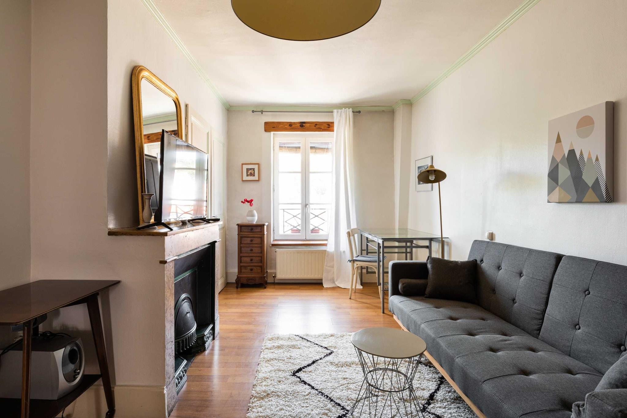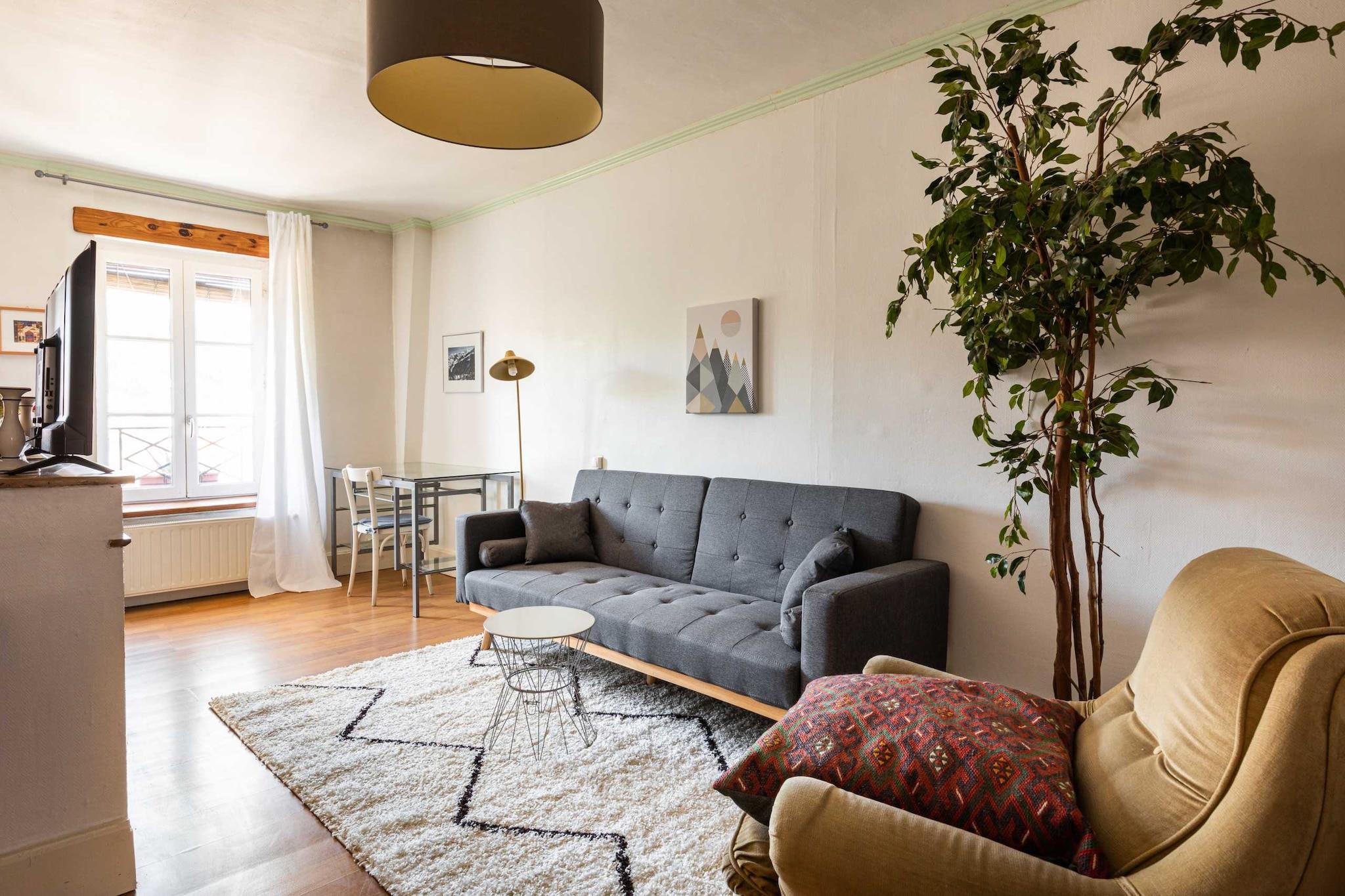 Spacious apartment, with lots of character and ideally located in the heart of Lyon. The apartment is on the fifth floor of a beautiful building in the Ainay district and just a stone\'s throw from the Saône quays, ideal for discovering the City of Light. null This fully equipped apartment can accommodate up to 2 people (a living room with a double bed). You will have exclusive use of the entire apartment and will be free to use all the facilities. Unlimited internet, TV, fully equipped kitchen, coffee machine, washing machine and fan.