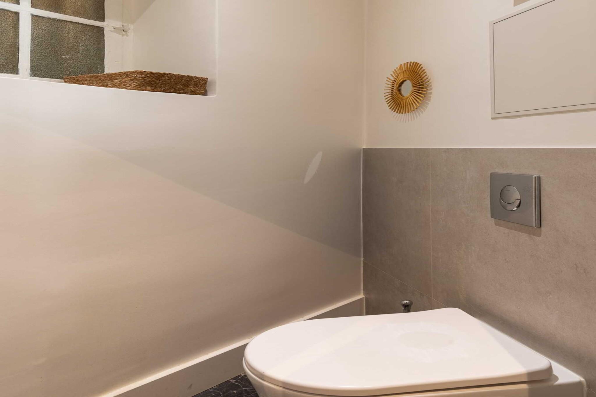 On the 3rd floor: (Living room(Desk, TV, dining table, seating area), Kitchen(stove, hob, electric kettle, toaster, coffee machine, oven, combination microwave, washing machine, dishes and cutlery, Cooking basics), bedroom(double sofa bed), bedroom(double bed), bathroom(Hot Water, shower, washbasin, hairdryer, shampoo, body soap), bathroom(bath tub, shower, washbasin, hairdryer, shampoo, body soap, hot water), toilet) Bed Linen, Internet Access DSL, Wardrobe, heating, iron, Towels/Sheets (Incl.), Essentials, Dedicated workspace, Carbon monoxide detector, Cleaning Disinfection, Cleaning products, Downtown, Enhanced cleaning practices, High touch surfaces disinfected, Long term stays allowed, Town