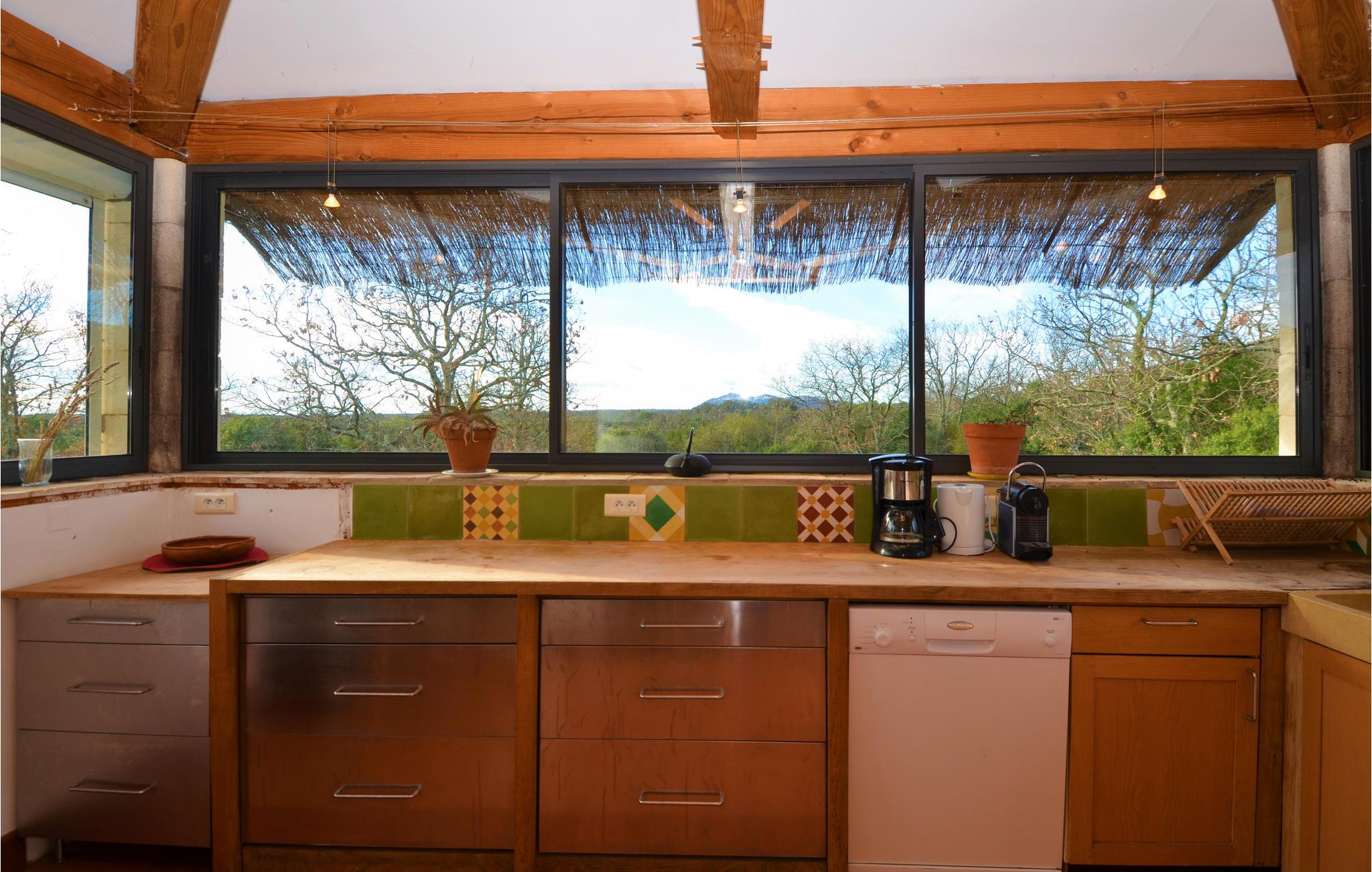 Im Ferienhaus haben Sie 4 Schlafzimmer, 3 Badezimmer und 2 Toiletten und eine große, voll ausgestattete amerikanische Küche mit Panoramafenstern zur Verfügung.