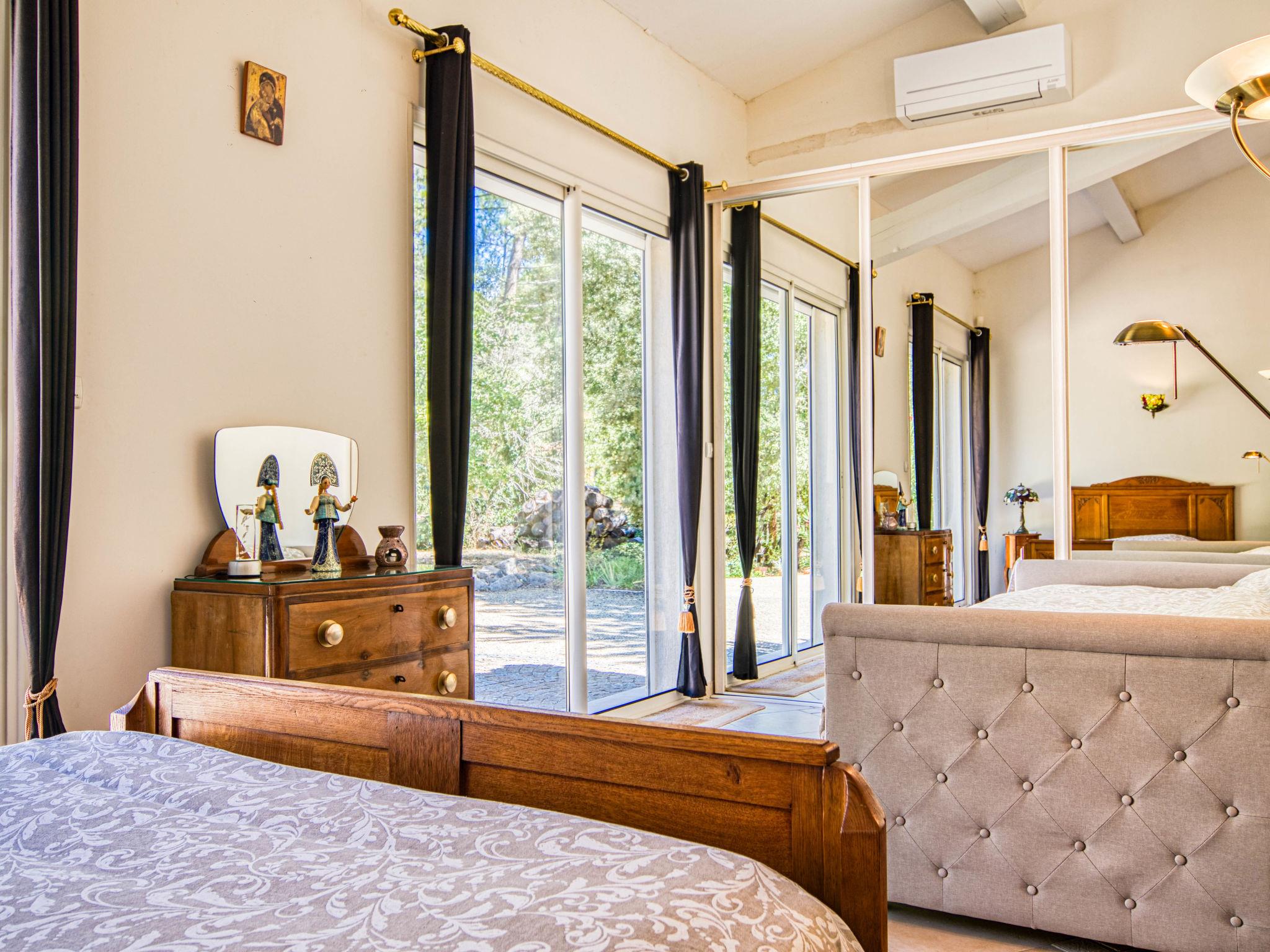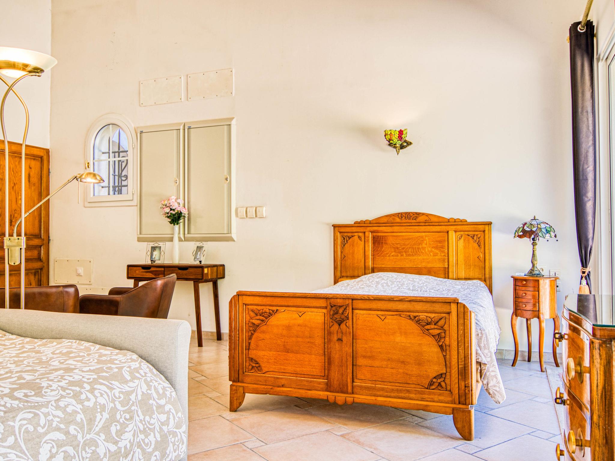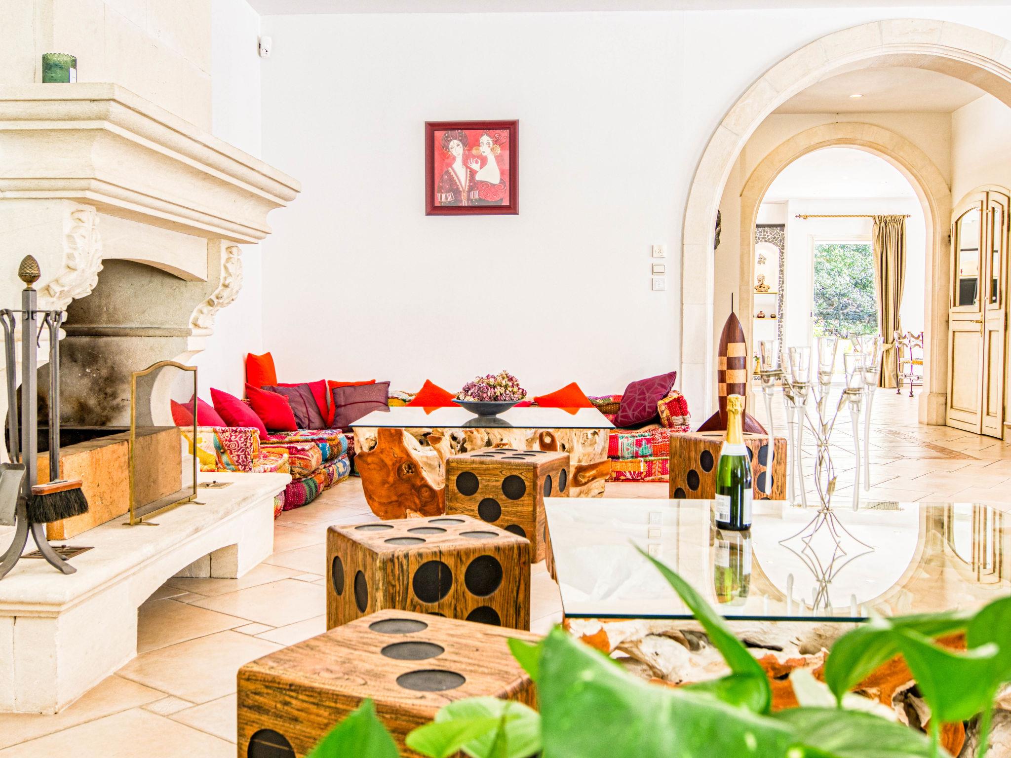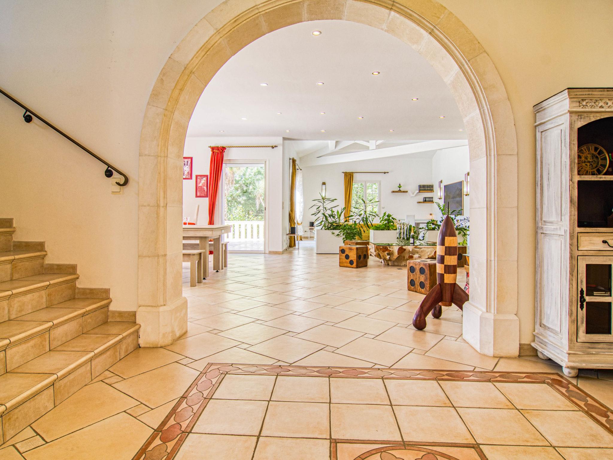 "La Bonne Nouvelle", 6-room villa 450 m2 on 2 levels. Comfortable and beautiful furnishings: entrance hall. Large living room with open-hearth fireplace (only for decoration), TV (flat screen). Exit to the terrace. Billiard room. 1 room with 1 french bed (140 cm, length 190 cm), 1 pull-out bed (2 x 90 cm, length 19 cm), bath/WC. Exit to the garden. Large kitchen (oven, dishwasher, 5 gas rings, toaster, kettle, microwave, freezer, electric coffee machine) with dining table and TV (flat screen). Exit to the terrace. Sep. WC. Upper floor: 1 room with 1 french bed (180 cm, length 200 cm), bath/WC. Exit to the balcony. 1 large room with 1 french bed (180 cm, length 200 cm), 1 pull-out bed (2 x 90 cm, length 190 cm), bath/shower/WC. Exit to the balcony. 1 room with 1 french bed (160 cm, length 200 cm), bath/WC. Air-conditioning. Large terrace partly. Terrace furniture, deck chairs (10). Facilities: washing machine, dryer, iron, hair dryer. Internet (WiFi, extra). Parking (roofed, 2 cars) at the house. Please note: non-smoking house. Smoke alarm. Offer by a private individual according to Art. 155, IV of CGI. 83077000006ES