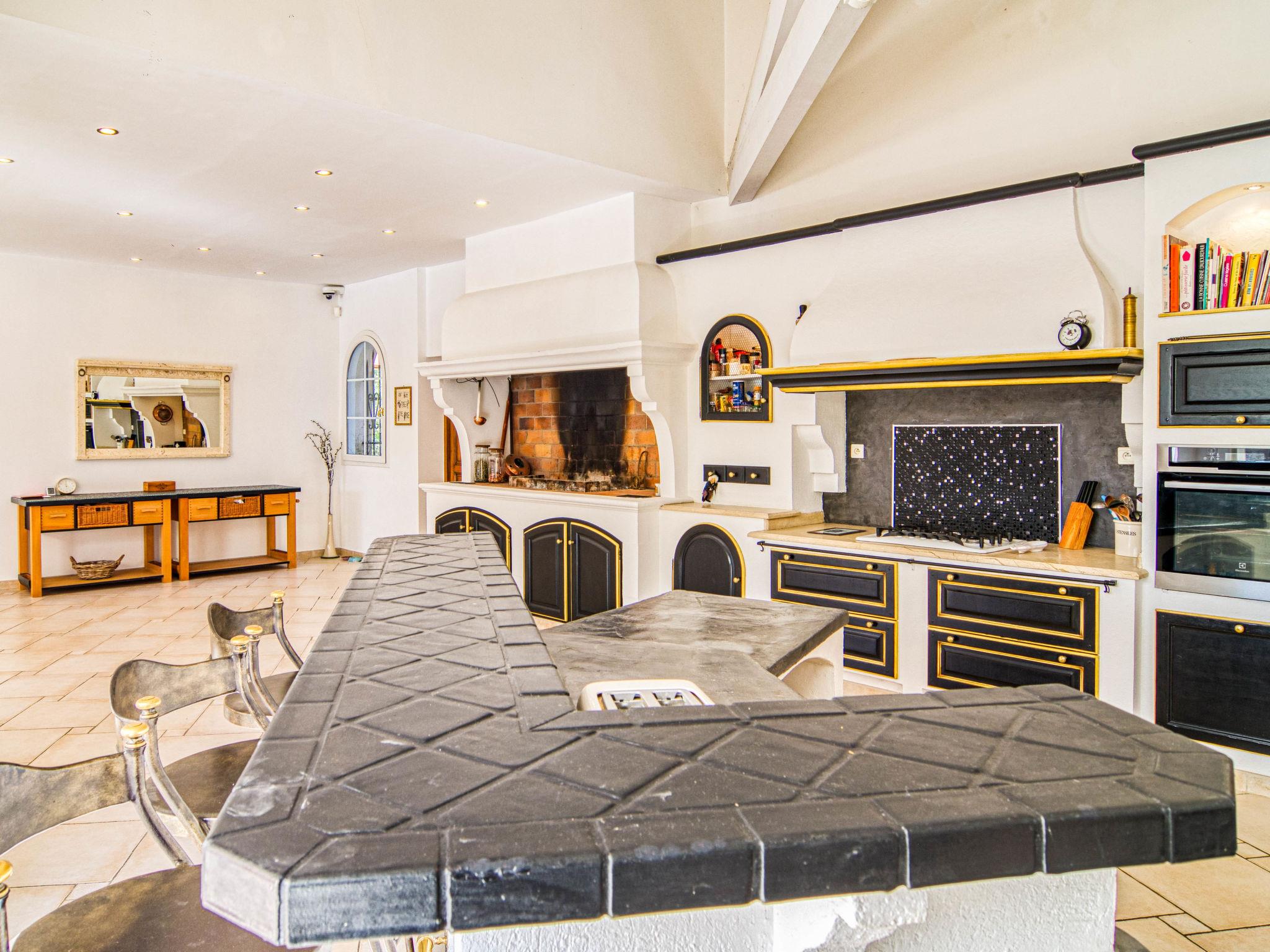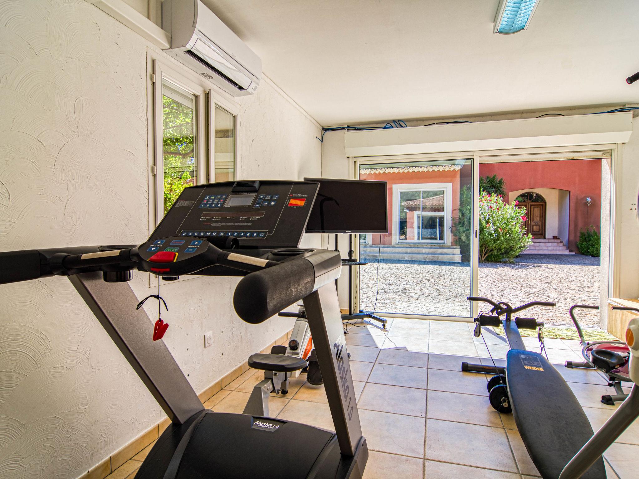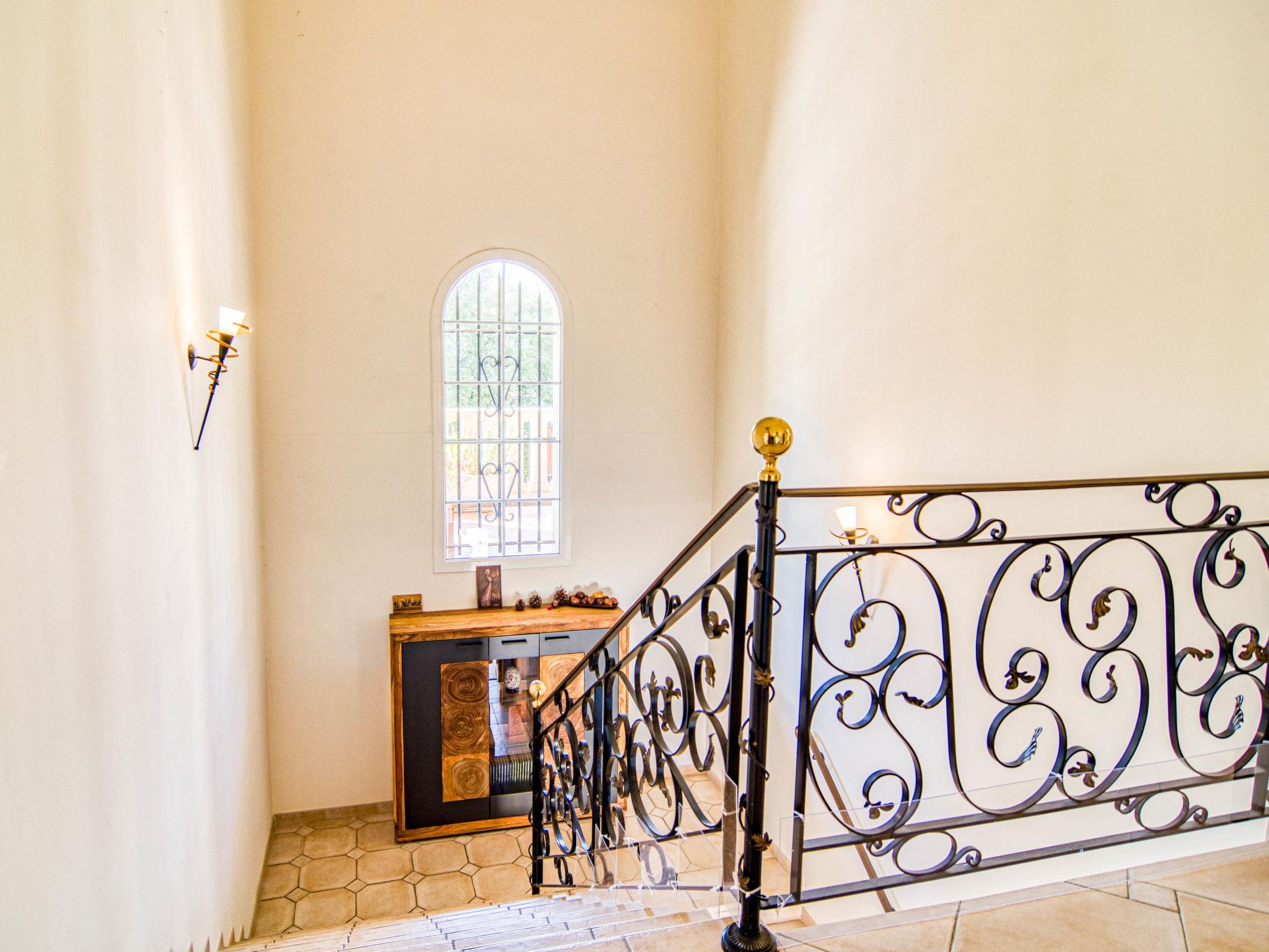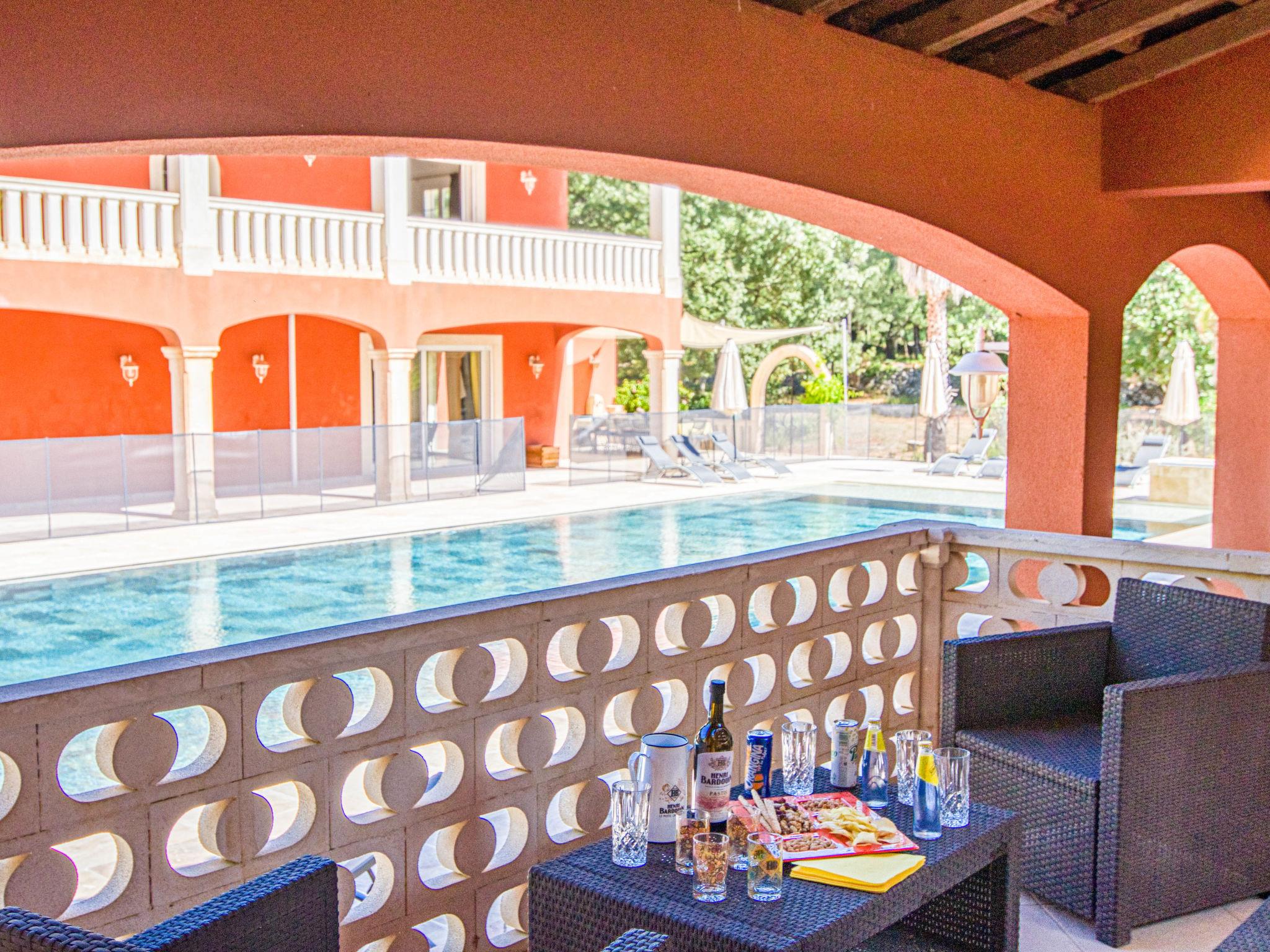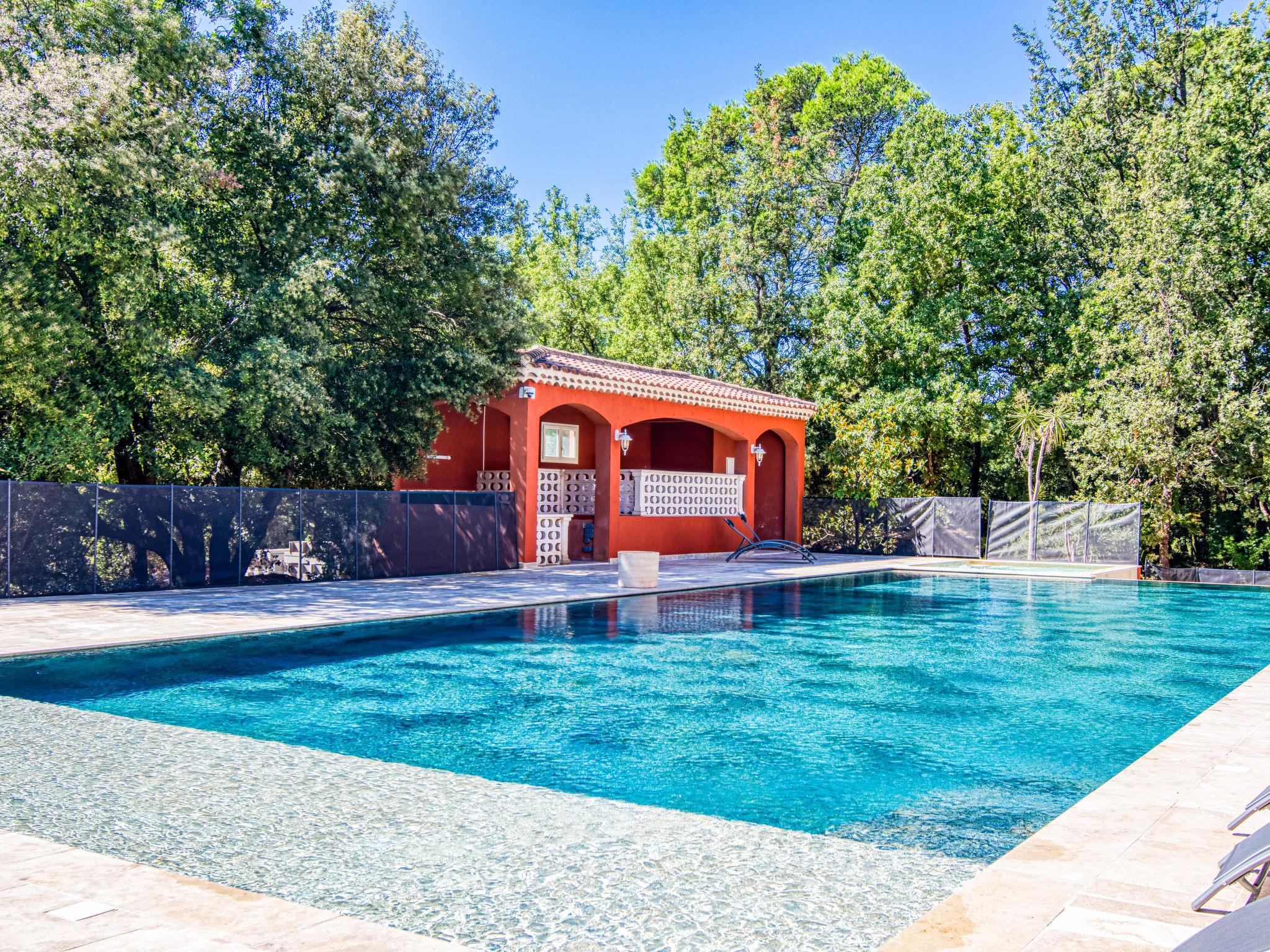 Very large, beautiful single-family house. 2.9 km from the centre of Méounes-les-Montrieux, 14 km from the centre of Rocbaron, 32 km from the centre of Hyeres, in the residential district, in the countryside. Private: property 3 ha (fenced), well-kept garden 3'000 m2, swimming pool angular, heated, fenced (20 x 8 m, depth 50 - 145 cm, seasonal availability: 01.Jan. - 31.Dec.) with salt-electrolysis pool-cleaning system. Paddling pool, hot tub, pool house with fridge, shower and WC. In the house: fitness room, billiard table. Shop 2.9 km, supermarket 12 km, restaurant 2.9 km, bakery 2.9 km, café 2.9 km, bus stop 2.5 km, railway station "Cuers-Pierrefeu" 20 km, sandy beach "Almanarre" 36 km. Golf course (18 hole) 26 km, riding stable 17 km. Nearby attractions: Iles de Porquerolles, Port Cros, Iles des Embiez, Circuit Paul Ricard. Hiking paths: Parc régional de la Sainte Baume. The owner does not accept any youth groups.