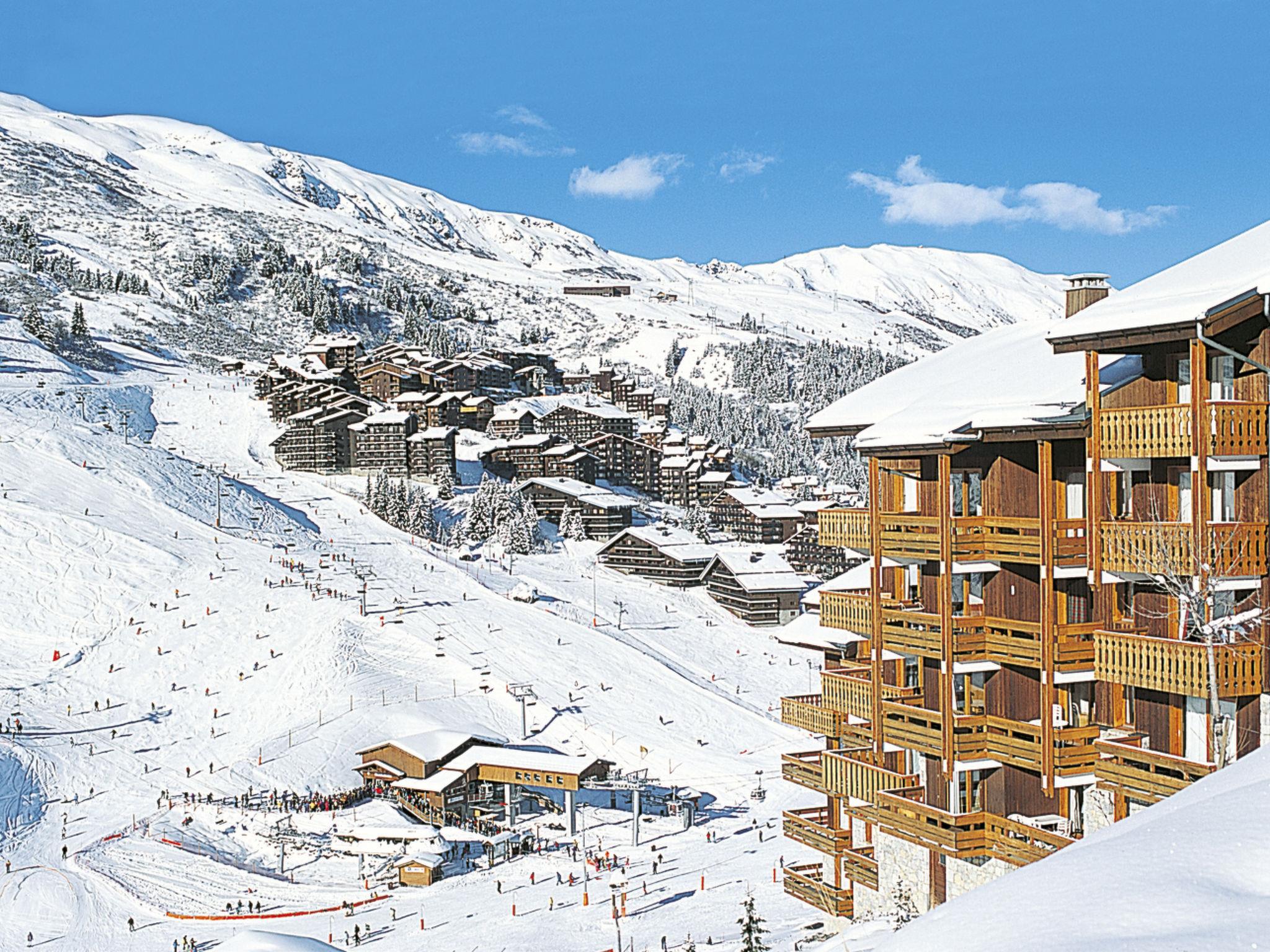 "Odalys Essentielle Le Hameau du Mottaret", 2-room apartment 30 m2. Practical furnishings: living/sleeping room with 2 beds, dining table and TV. 1 room with 3 sleeping facilities. Kitchenette (2 hot plates, dishwasher, kettle, microwave, electric coffee machine). Bathroom, sep. WC. Electric heating. Balcony or terrace. Maximum 1 pet/ dog allowed.