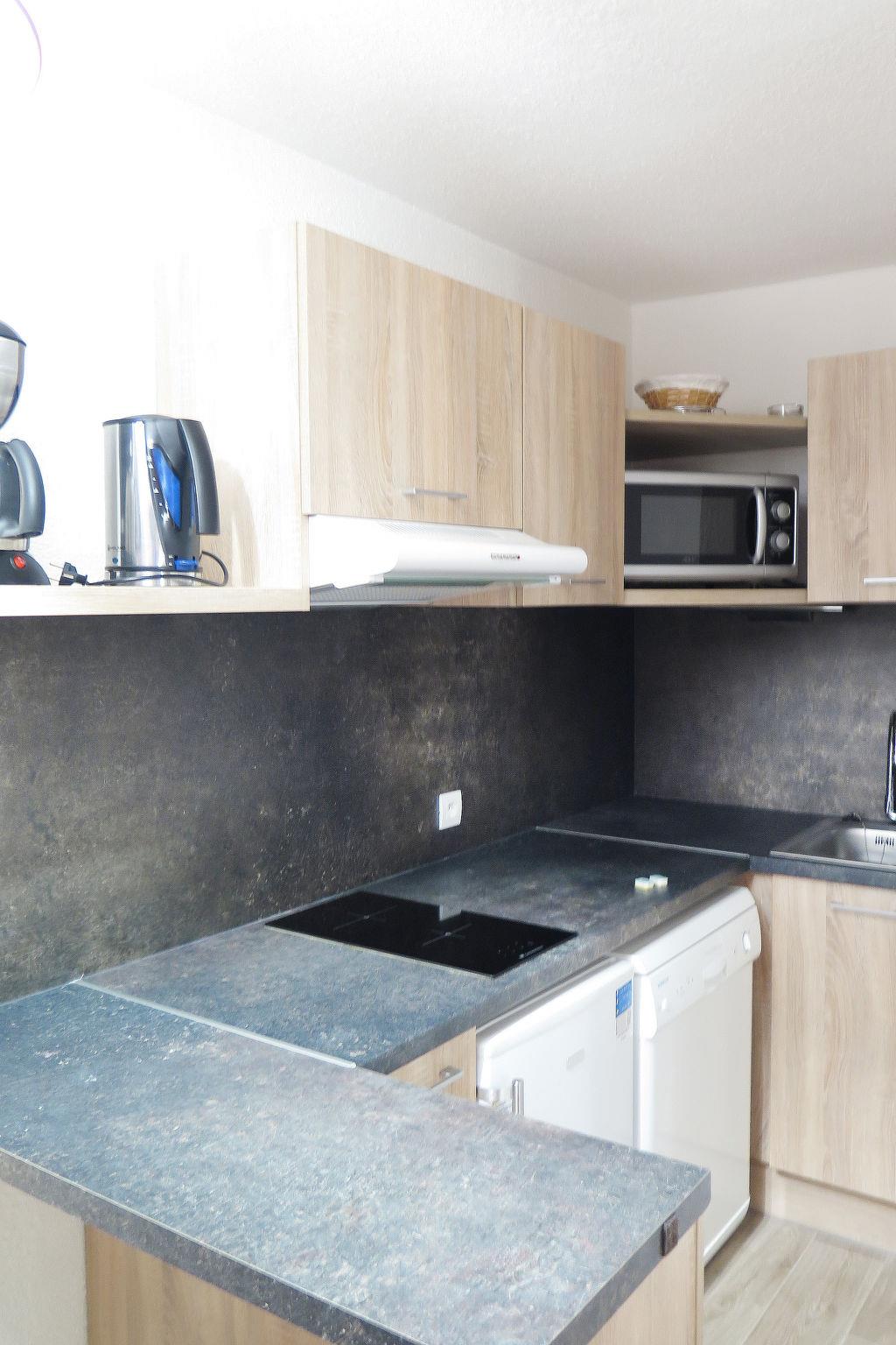 "Odalys Essentielle Le Hameau du Mottaret", 3-room apartment 43 m2 on 2 levels. Practical furnishings: living/sleeping room with 2 sleeping facilities, dining table and TV. 1 room with 2 sleeping facilities. Kitchenette (2 hot plates, dishwasher, kettle, microwave, electric coffee machine). Bathroom, sep. WC. Upper floor: 1 room with 1 bed and 1 x 2 bunk beds. Shower/WC. Electric heating. Balcony. Maximum 1 pet/ dog allowed.
