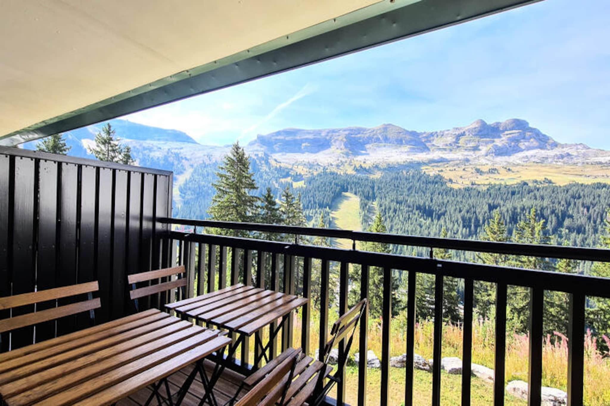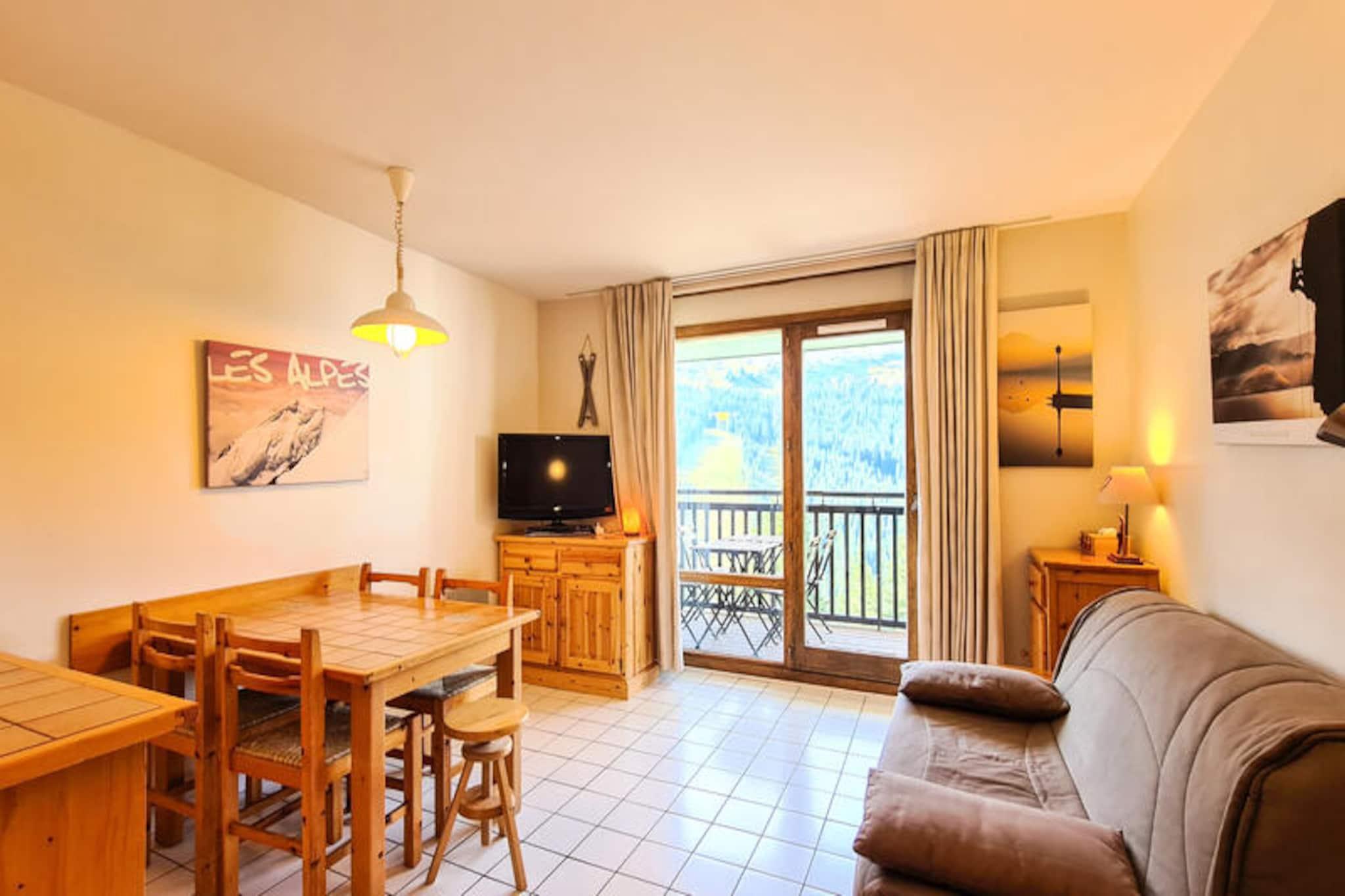 In the serene Flaine Forêt district, this charming studio offers a delightful alpine escape just 150 meters from the slopes and ski school meeting points. Perfectly situated for both winter sports enthusiasts and summer adventurers, the residence combines convenience with comfort, ensuring an unforgettable stay in the heart of the French Alps. From its south-facing balcony on the third floor, soak in the crisp mountain air and enjoy the tranquil views that make Flaine a beloved destination year-round. \n\nThe renovated 25 m² studio is thoughtfully equipped for up to four guests, making it ideal for couples or small families. The entrance features a set of bunk beds, while the living room offers a cozy double sofa bed. Modern amenities include a flat-screen TV, DVD player, and a fully equipped kitchenette with electric burners, a dishwasher, oven, microwave, and Nespresso coffee maker. The bathroom includes a bathtub, and there’s a separate toilet for added convenience. Ski lockers are provided for easy storage, and the property maintains a smoke-free and pet-free environment, ensuring a clean and comfortable stay. Please note that bed linen and towels are not included, and the top bunk is not suitable for children under six years old.\n\nBeyond the residence, Flaine offers a wealth of activities and attractions. In winter, guests can explore the expansive Grand Massif ski area, renowned for its pristine slopes and breathtaking scenery. In summer, the included Flaine Summer Pass unlocks numerous activities, from hiking and mountain biking to cultural events and outdoor adventures. Nearby shops and restaurants ensure all essentials are within easy reach, while the charm of the Flaine Forêt district provides a peaceful retreat after a day of exploration.\n\nWhether you’re seeking thrilling days on the slopes or tranquil evenings under the alpine sky, this studio is your gateway to the wonders of Flaine. Create lasting memories in a destination that perfectly blends natural beauty, outdoor excitement, and modern comfort.