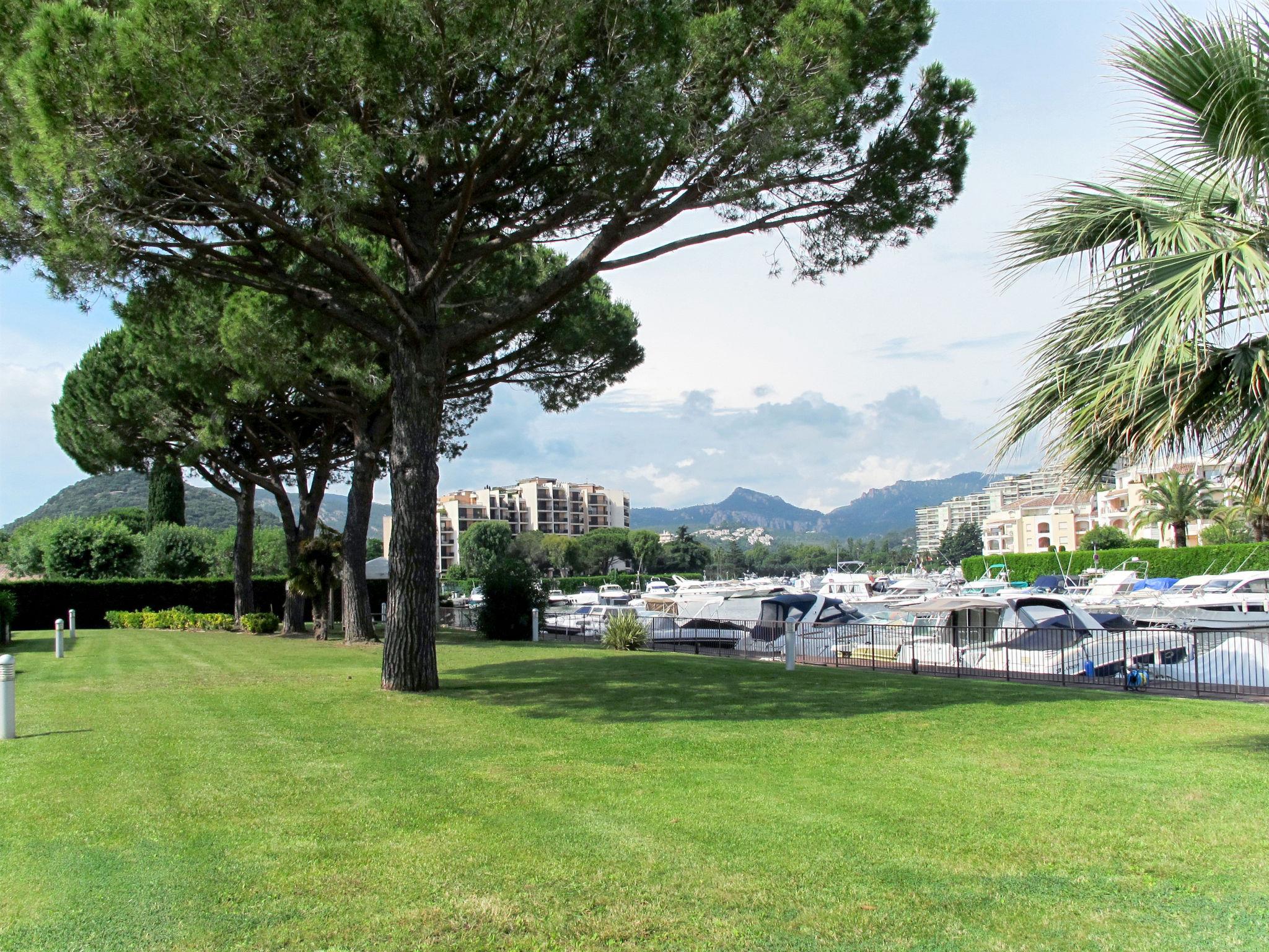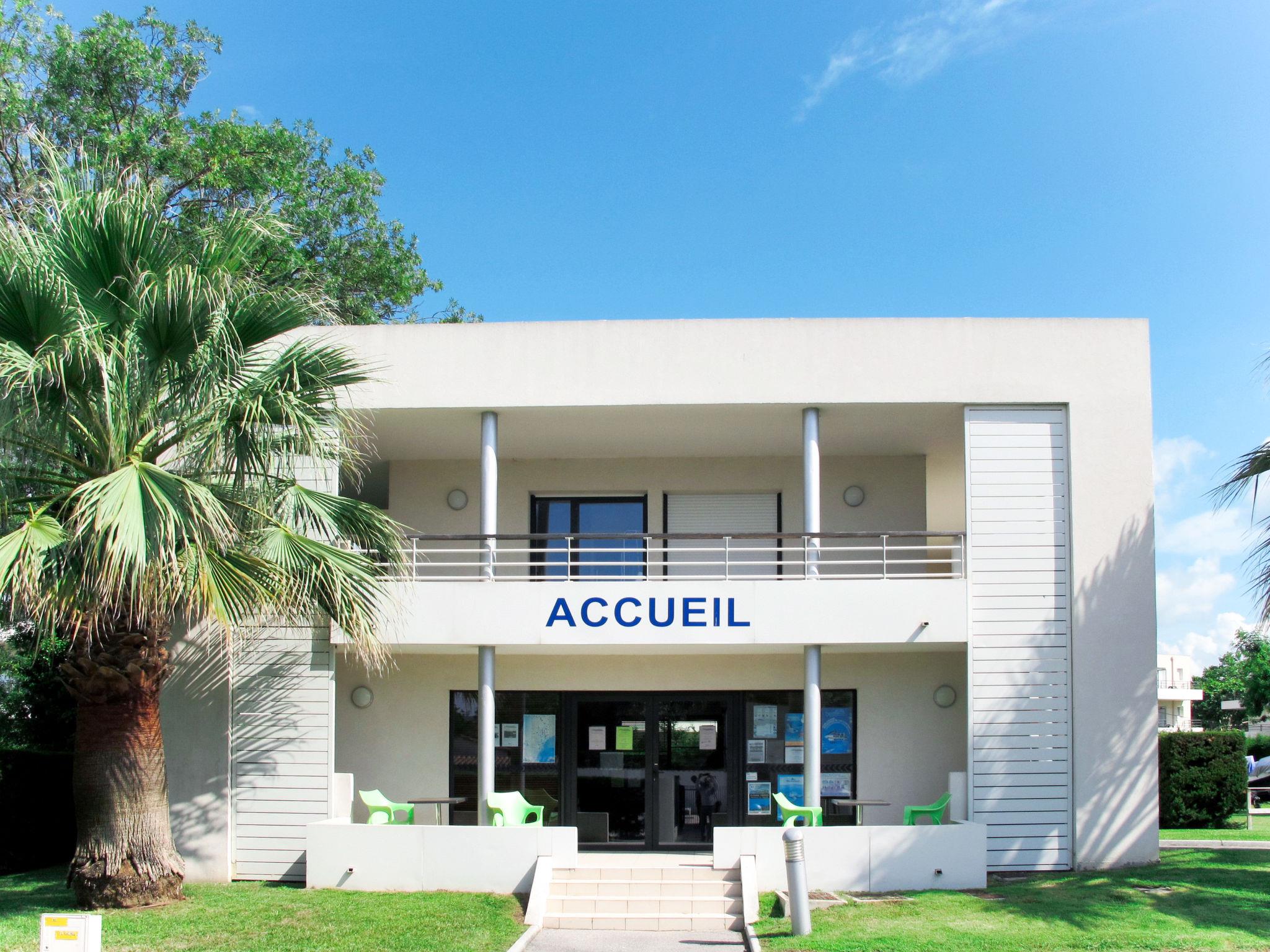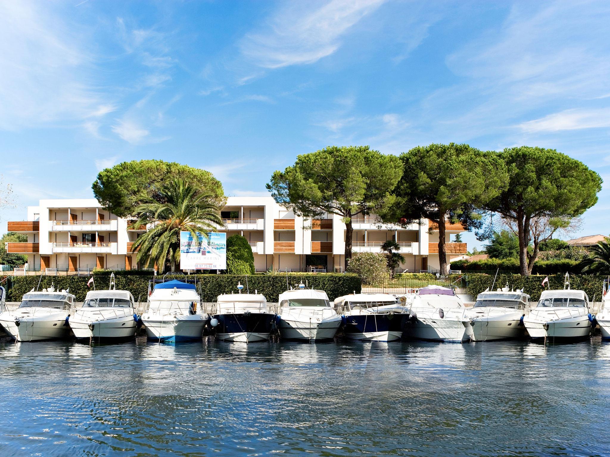 Residence "Carré Marine", 3 storeys. 3 houses in the residence. 40 apartments in the residence. 2 km from the centre of Mandelieu, 7.5 km from the centre of Cannes, 40 km from the centre of Nice, 1.5 km from the sea, 20 m from the river. For shared use: property 12'000 m2 (fenced) with lawn and trees, swimming pool fenced (15 x 8 m, depth 120 - 210 cm, seasonal availability: 05.Apr. - 31.Oct. pool opening hours: 09:00-20:00). WC in the pool area, children's pool, outdoor shower, table tennis, boccia, children's playground. In the house: reception, WiFi, lift, washing machine, tumble dryer (for shared use, extra). Supermarket 2.4 km, sandy beach 1.5 km. Golf course (18 hole) 2.6 km. Please note: private mooring (extra) on request. The photo is just an example. The holiday properties may differ in living space, floorplan, equipment and furnishing.