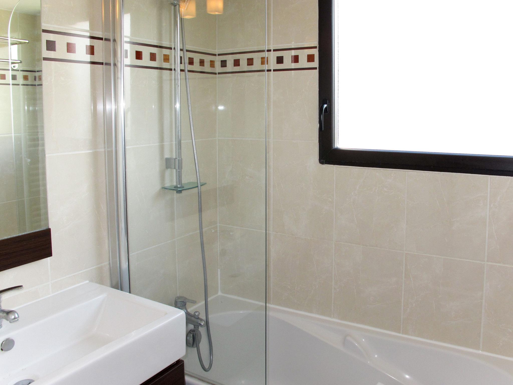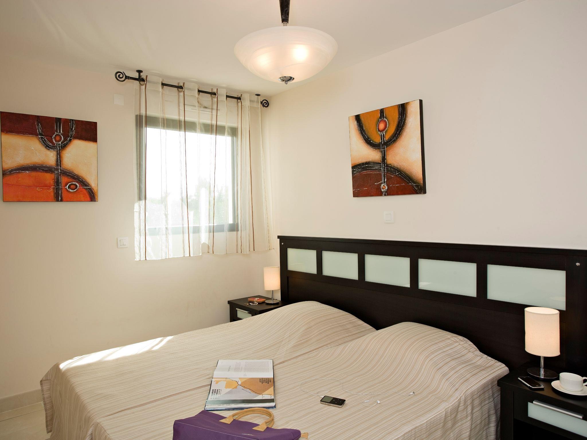 "Carré Marine", 3-room apartment 53 m2. Bright, modern furnishings: living/sleeping room with 1 pull-out bed, dining table and TV. 1 room with 1 french bed (160 cm). Exit to the garden. 1 room with 2 beds. Exit to the garden. Open kitchen (dishwasher, 4 ceramic glass hob hotplates, microwave, grill, electric coffee machine). Bath/WC. Heating, air-conditioning. Balcony or terrace roofed. Terrace furniture. View of the sea. Facilities: iron. Internet (WiFi, free). Parking. Please note: maximum 1 pet/ dog allowed. Smoke alarm, fire extinguisher.