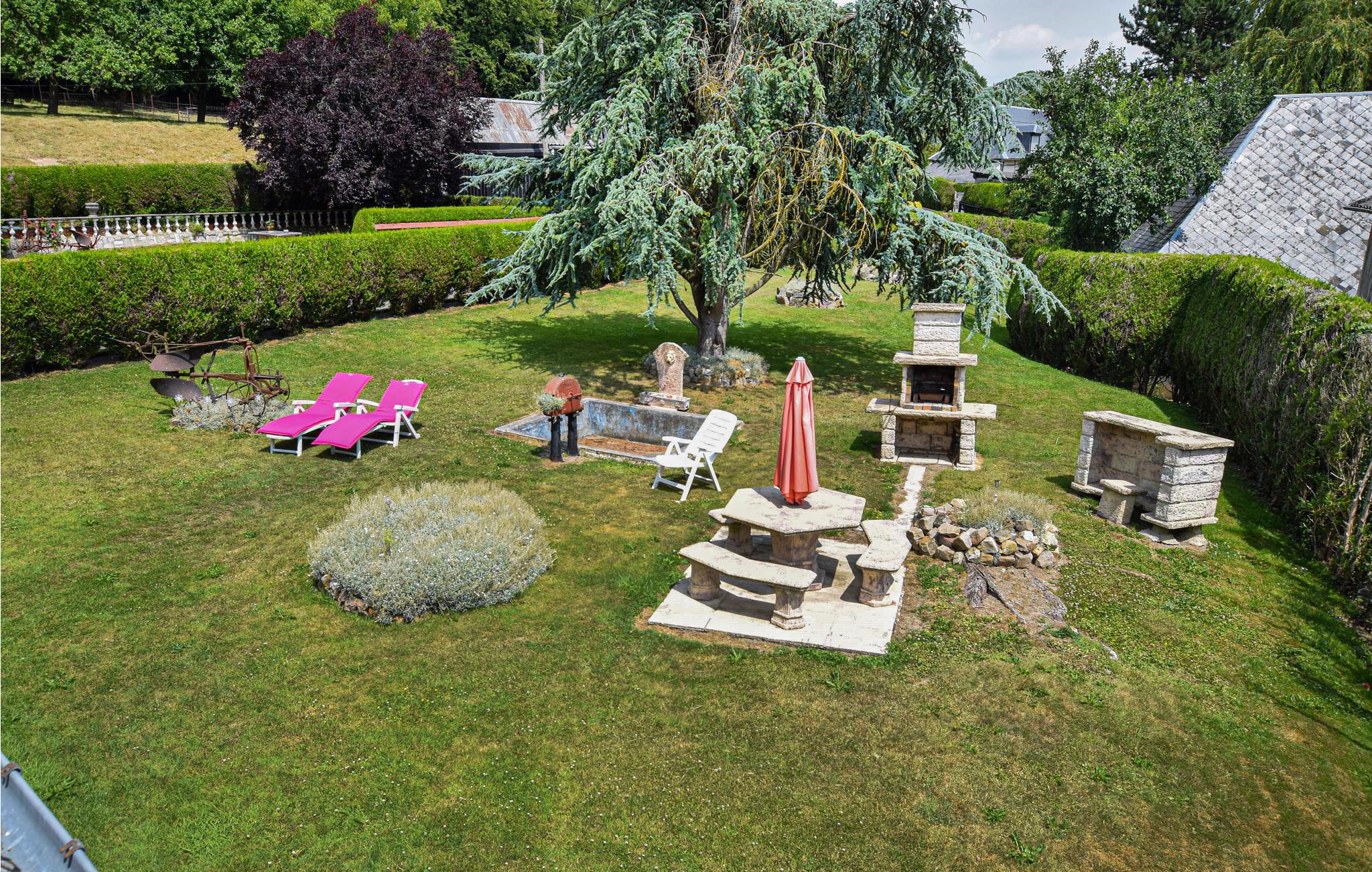 Draußen erwartet Sie ein weitläufiger, durch Hecken geschützter Garten. Lassen Sie Ihre Kinder ein Picknick auf dem gepflegten Rasen veranstalten und ausgelassen mit dem Hund spielen, während Sie mit einem Buch auf der Liege Energie unter der Sonne tanken. Werfen Sie den Grill an und freuen Sie sich auf sternenklare Sommernächte in der Stille der Natur.