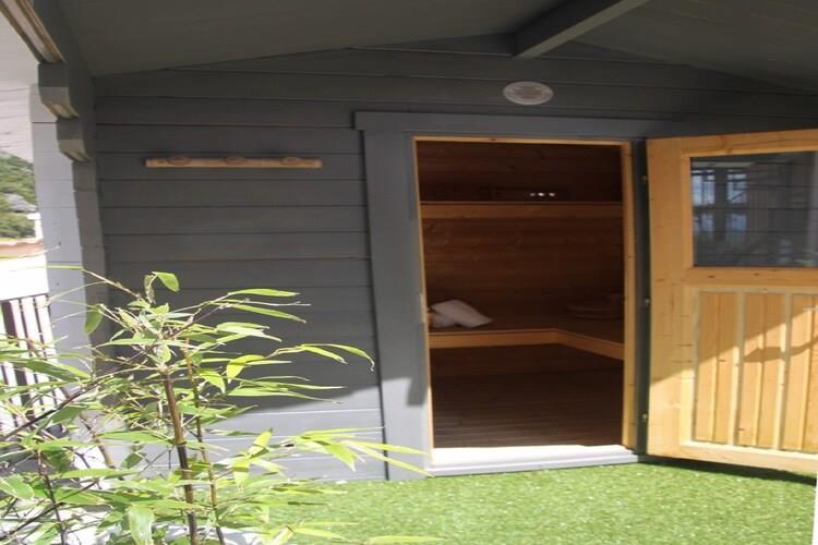 Ground floor: (Kitchen(shared with other guests)(bar, coffee machine, Juicer), Living/diningroom(shared with other guests)(dining table, fireplace, seating area), Bedroom with bathroom(acces via outside stairway, 38 m2)(double bed(160 x 200 cm), TV, dining table, seating area, electric kettle, shower, washbasin, toilet), hairdryer) sauna, air conditioning, terrace, parking, swimming pool(shared with other guests, outside, heated)