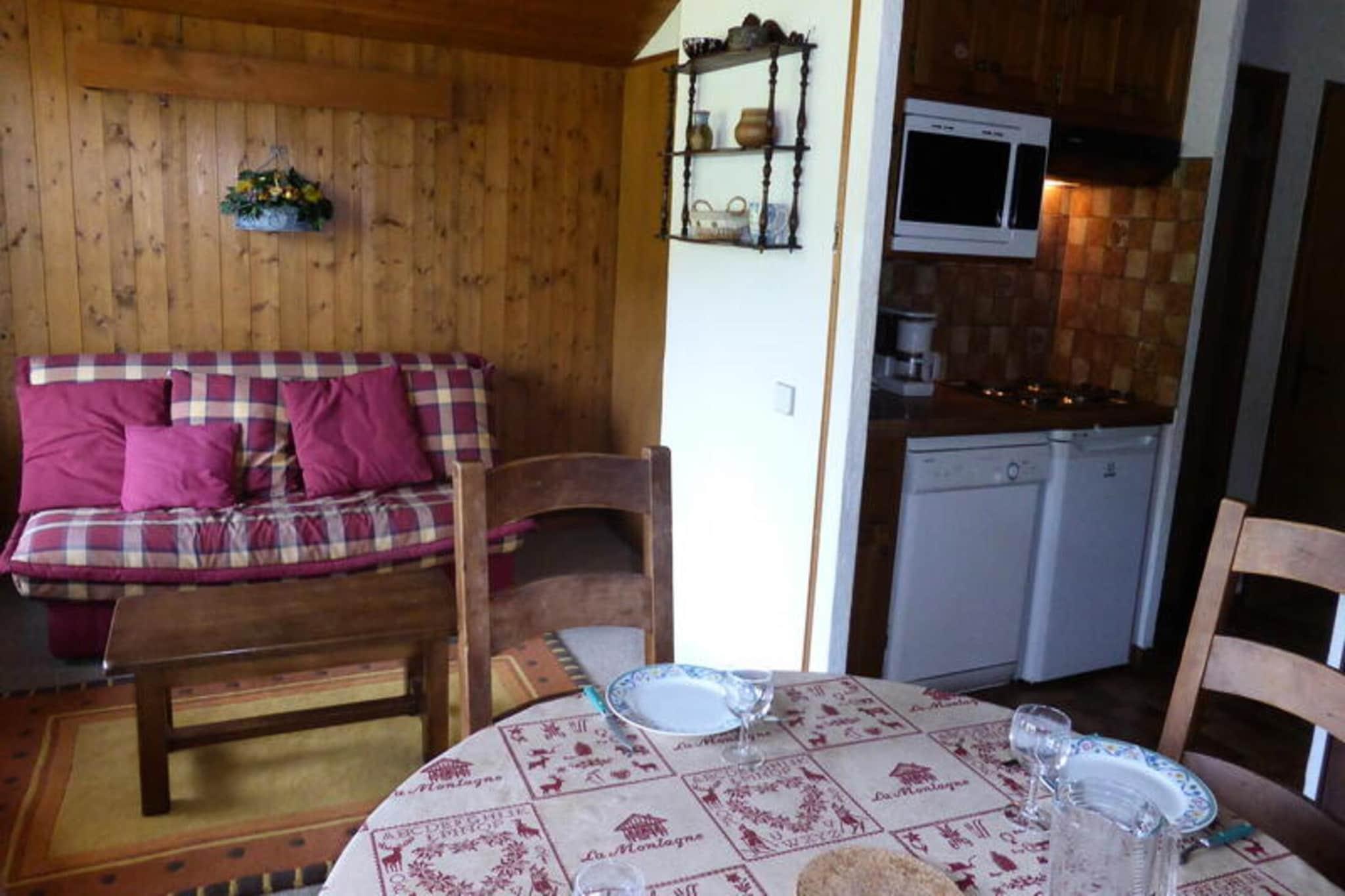 This 47m² 3-room apartment in Combloux accommodates up to 6 people. Located on the 3rd floor, it features a living room with a 160 cm double sofa bed, a kitchenette with essential appliances (oven, microwave, fridge, dishwasher), a double bedroom, and a cabin bedroom with bunk beds. The apartment also includes a bathroom with a bathtub, separate WC, ski locker, and outdoor parking. Optional services include Wi-Fi, linen rental, childcare equipment, and end-of-stay cleaning. The residence is 900 meters from the Princesse cable cars and 2.7 km from Combloux village center. It offers a South/East-facing balcony with views of Mont-Blanc and the Princess domain. Shops are 1.5 km away, providing convenient access to amenities. Essential items like dishes, pillows, duvets, and blankets are provided, but household products are not. Linens and additional services are available for an extra charge. The apartment is ideal for families or groups seeking a comfortable, well-located base for a mountain retreat.
