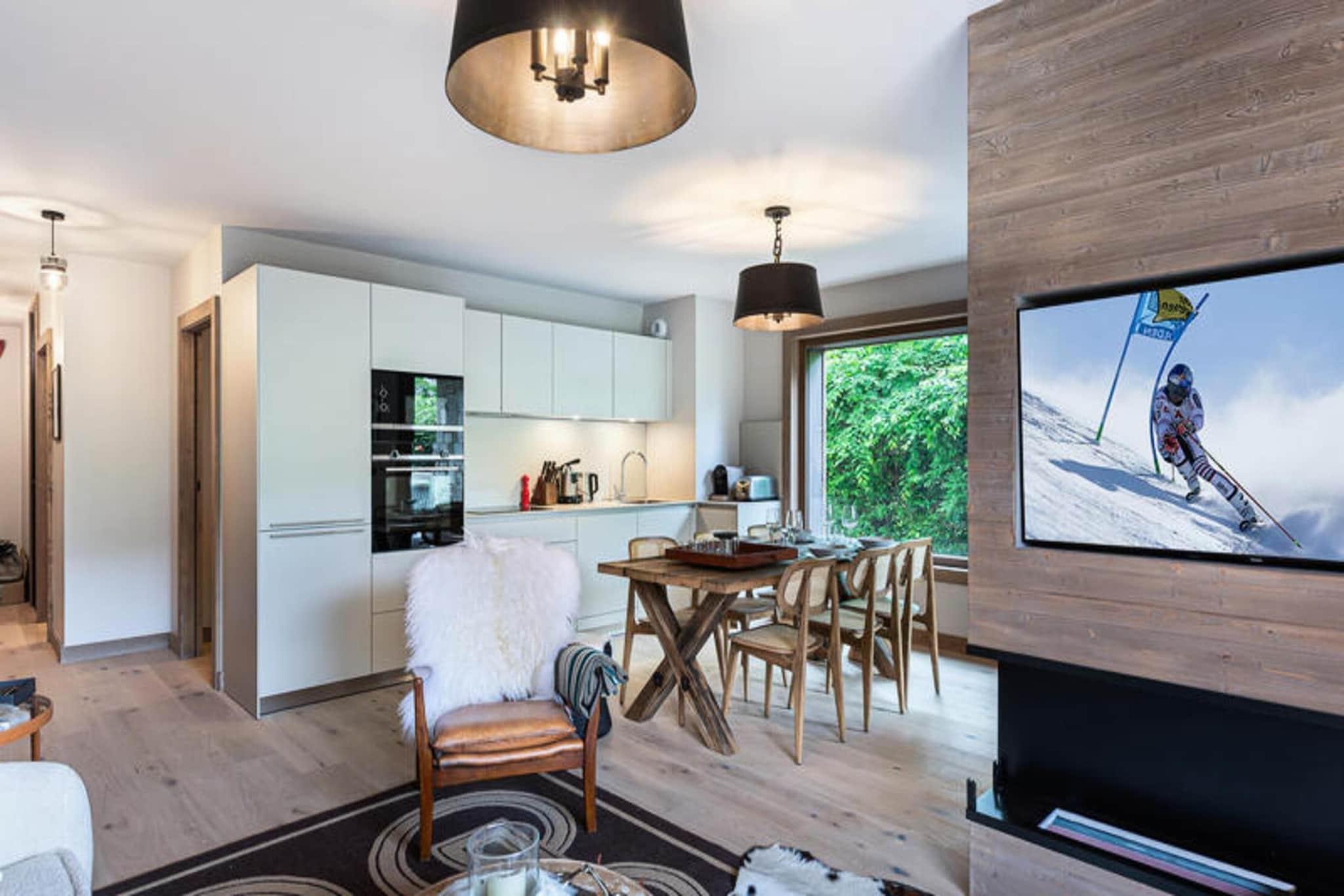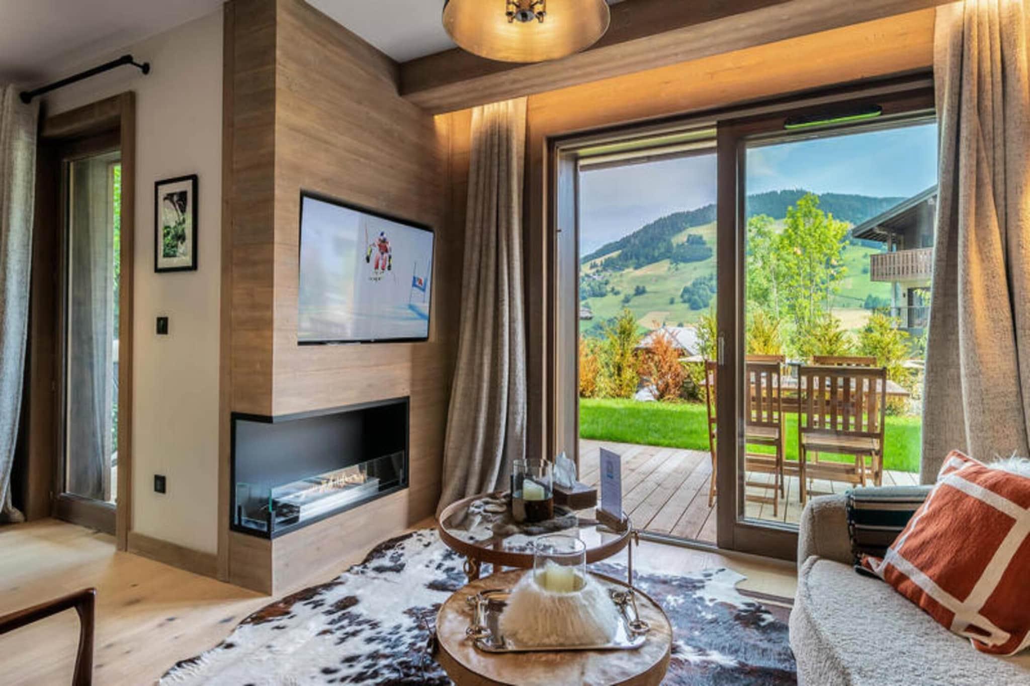 This charming 83m² apartment is nestled in the peaceful Rochebrune district of Megève, just a 10-minute drive from the lively city center. Perfect for families or small groups, it offers a cozy, well-designed living space with beautiful mountain views and direct access to a private garden. The spacious open-plan living room features an ethanol fireplace, a dining area, and an equipped kitchen for shared meals. The apartment comfortably sleeps up to 4 adults and 2 children, with two double bedrooms, a cabin bedroom with bunk beds, and two bathrooms. Nearby, the charming village of Megève boasts a variety of shops, restaurants, and outdoor activities. In winter, the area offers excellent skiing, while the summer months bring hiking and breathtaking views of Mont Blanc. The apartment's central yet quiet location ensures a relaxing, convenient stay. Guests can enjoy the residence's relaxation area, which includes a swimming pool, gym, sauna, and hammam, offering the perfect retreat after a day on the slopes. Located just 150 meters from the free MegBus shuttle stop, the apartment provides easy access to the ski lifts and nearby attractions.