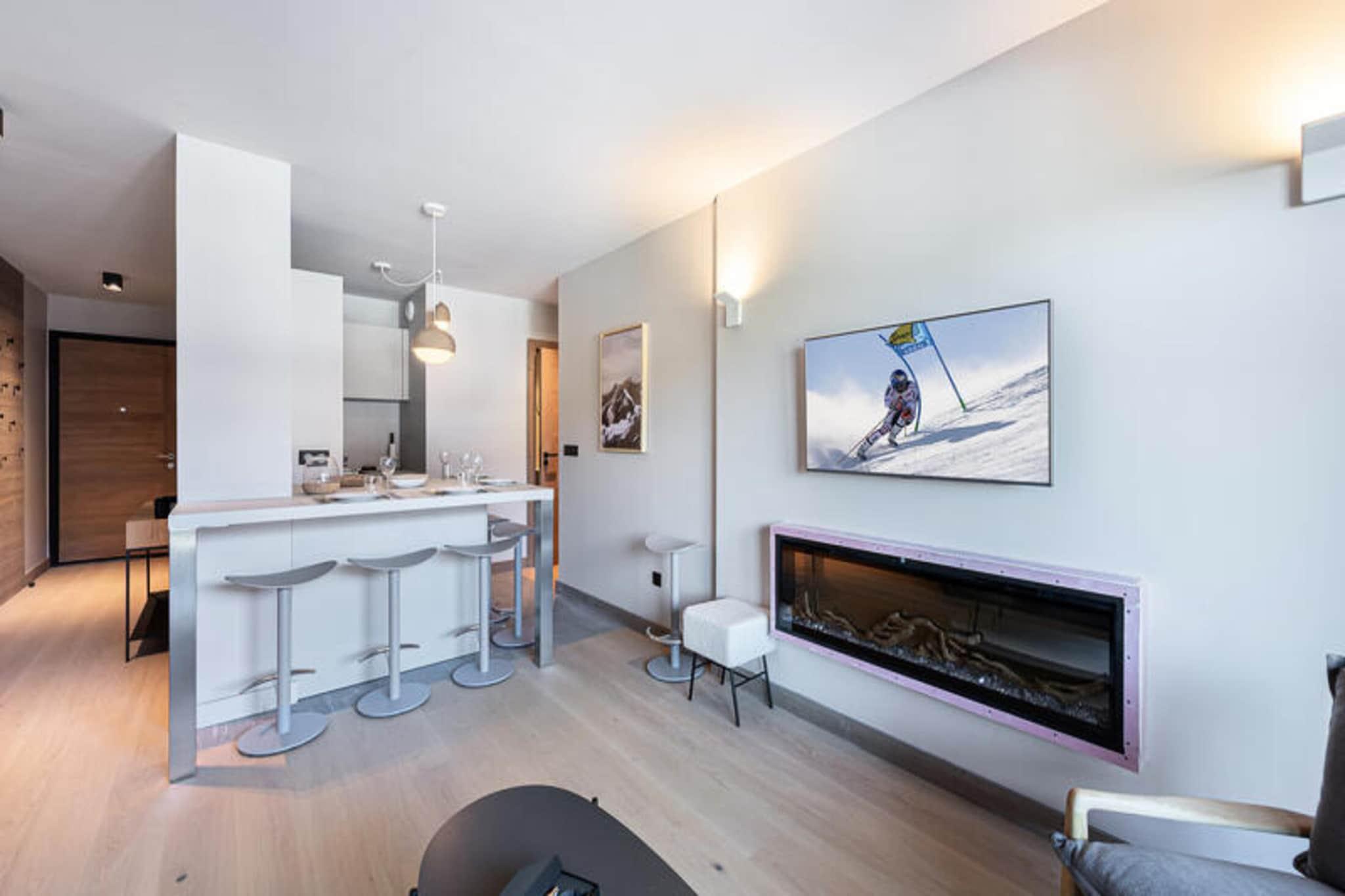 Property along with a contemporary design provides a comfortable and relaxing base for guests seeking a quiet retreat in Megève. Located in the peaceful Rochebrune district, the apartment is on the first floor of a new residence, just under 10 minutes by car from the city center and close to the Rochebrune ski lift. The apartment features an open living area with a fitted kitchen, dining space, and a cozy living room with an electric fireplace, offering access to a balcony. The residence boasts a well-equipped relaxation area (Building D), which includes a swimming pool, gym, sauna, and hammam. The pool and gym are open daily from 8 a.m. to 8 p.m., while the sauna and hammam are available from mid-December to April 30, and during July and August, as well as on weekends. Additional services included with the rental are a welcome package at the agency, bathroom products, linen (sheets and towels), and beds made upon arrival. Regular cleaning is provided twice a week, with the option for extra cleaning at an additional cost.