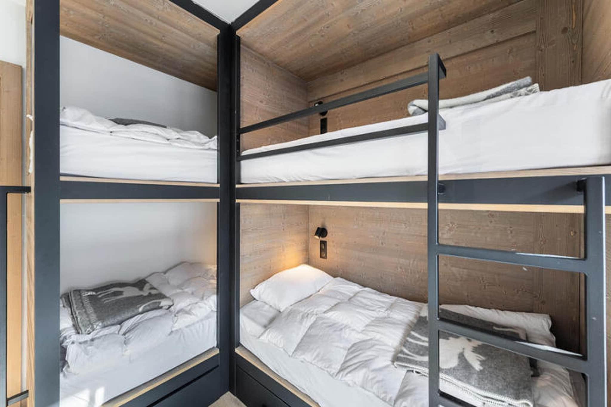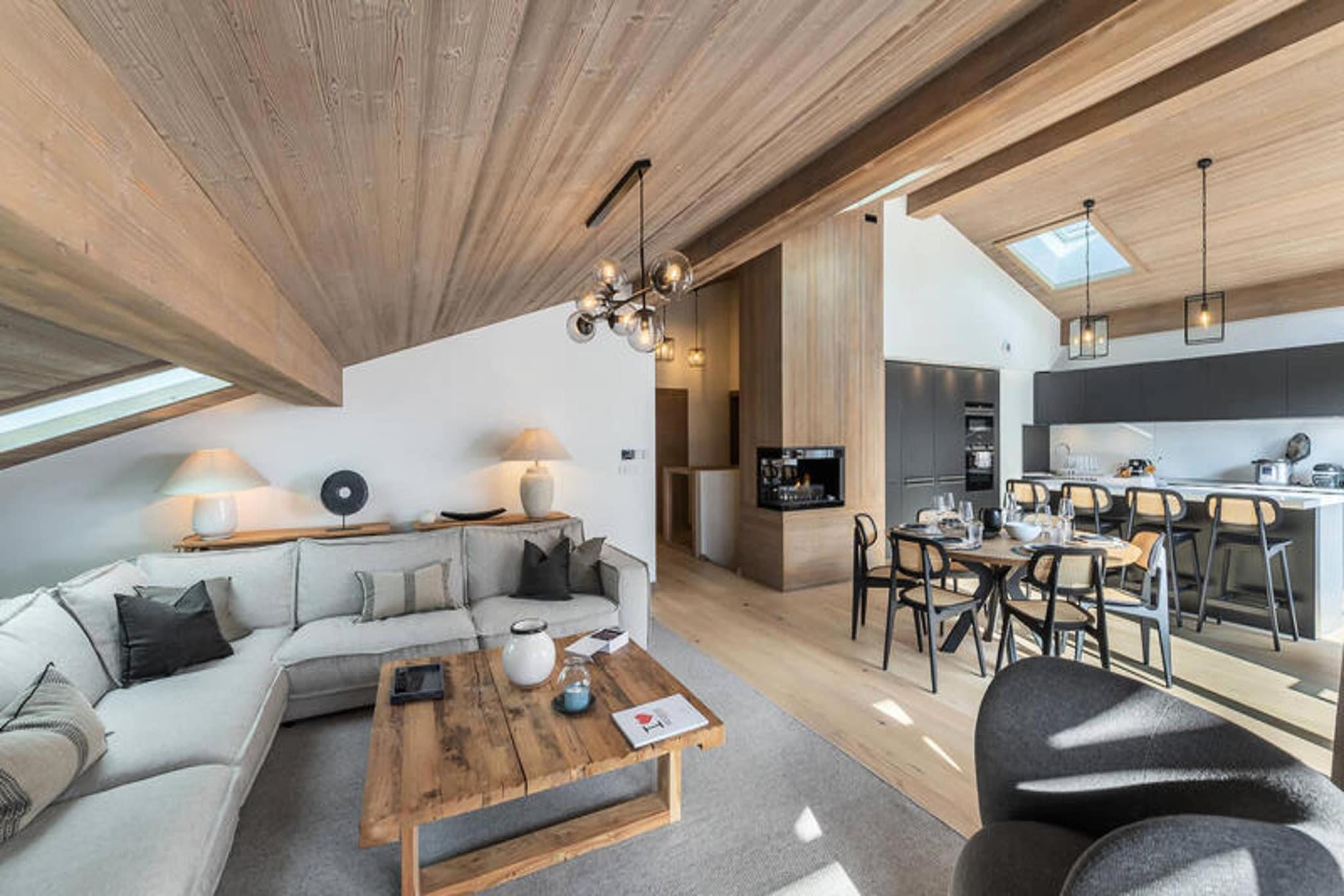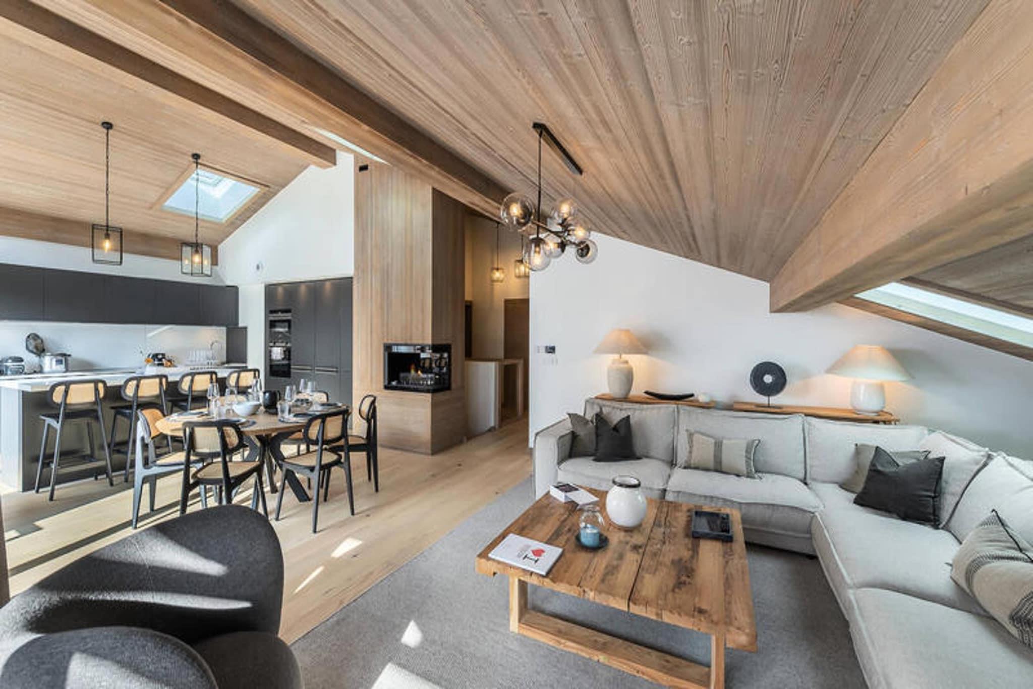 This spacious 100m² triplex apartment accommodates up to 12 guests. It features a cozy living room with a fireplace, TV, and a balcony, plus a dining area connected to the kitchen. The property includes three outdoor parking spaces, a ski storage area with a shoe dryer, and offers essential services like end-of-stay cleaning and linens. Pets are not allowed. Located just 400 meters from the Pléney slopes and the village center, the apartment is ideally situated for both winter and summer activities. A shuttle stop nearby provides easy access to the resort, and local shops, restaurants, and après-ski options are within walking distance. The property is also a Summer Multipass Member, offering access to local activities. The apartment is equipped with a well-appointed kitchen, a sauna with a shower and bathtub, and a washing machine. It includes two attic bedrooms, a mountain corner with bunk beds, and a mezzanine with a TV/reading area. The layout offers comfort and privacy, making it perfect for families or groups.