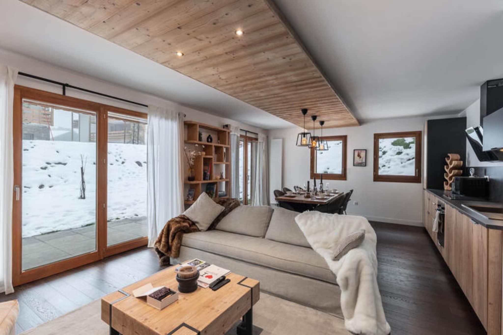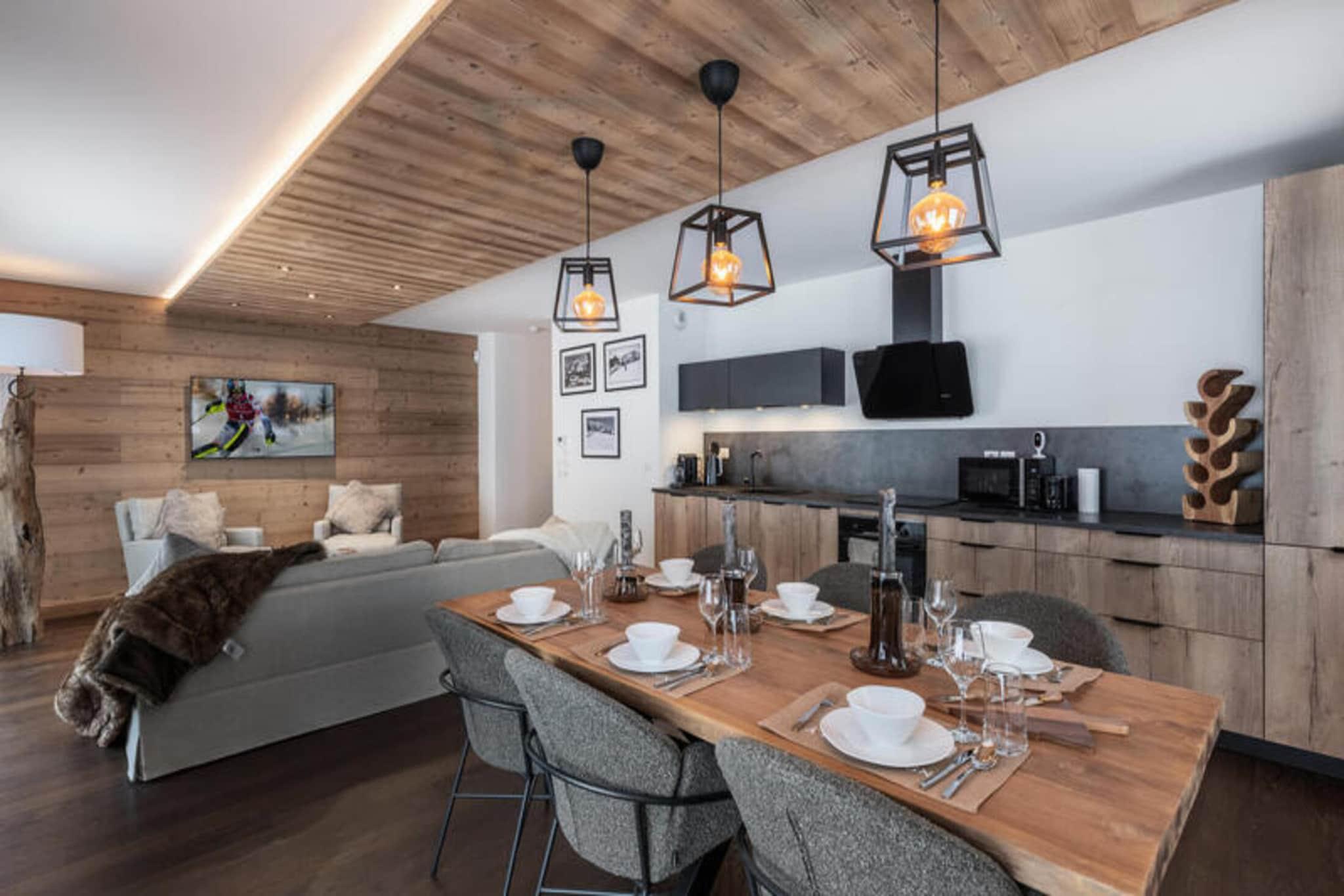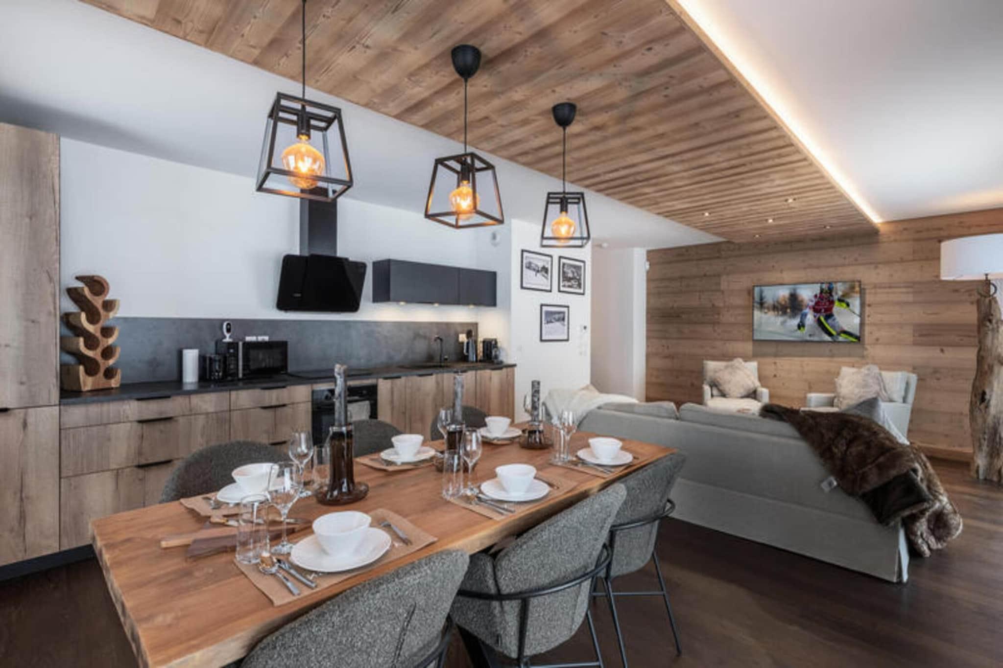 Nestled on a sunny hillside in Megève, facing the Rochebrune massif, this spacious and tastefully decorated apartment offers a serene escape in the heart of the Alps. Designed to accommodate up to 7 people, the apartment features 3 bedrooms, a living room with an open kitchen, and a dining area, all furnished in a modern and refined style. The property also includes two parking spaces in a closed box, providing added convenience for guests. Megève is a renowned alpine destination, famous for its charming village atmosphere and exceptional amenities. Guests can easily walk to the village center, where they can explore its lively town, enjoy gourmet restaurants, and take part in cultural and sporting events. Inside the apartment, the fully equipped kitchen opens into the dining area, allowing guests to enjoy meals together while taking in the breathtaking views. The apartment features one double bedroom with an en-suite shower room, a second double bedroom, and a third bedroom with a bunk bed, offering flexibility for families or groups. Additional amenities include an independent bathroom, a separate toilet, and a ski locker for convenience.