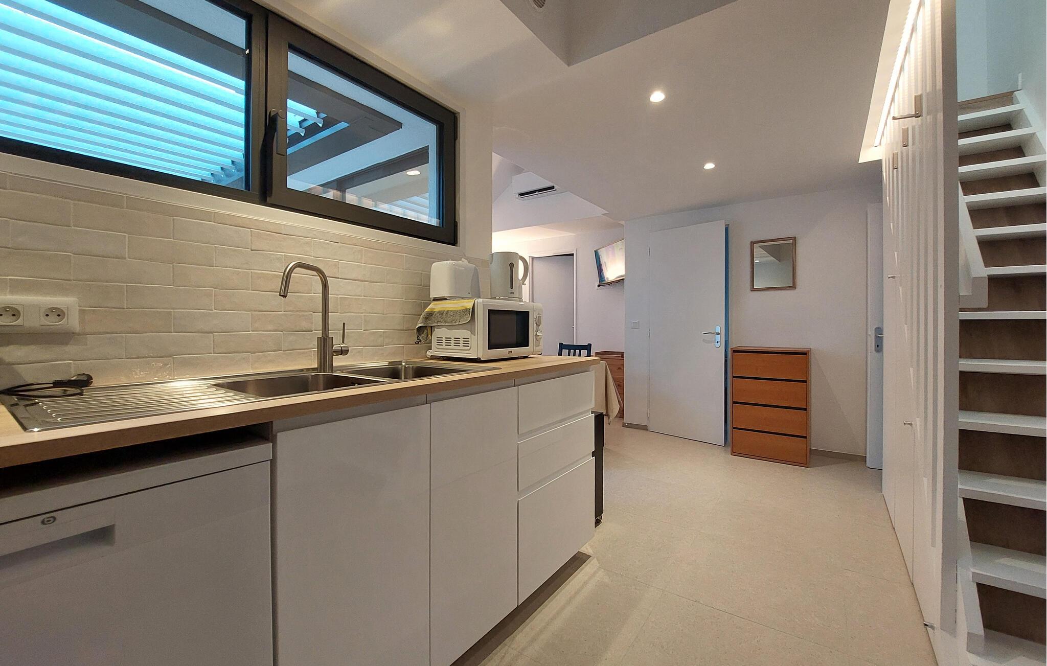 The kitchen has hot and cold water