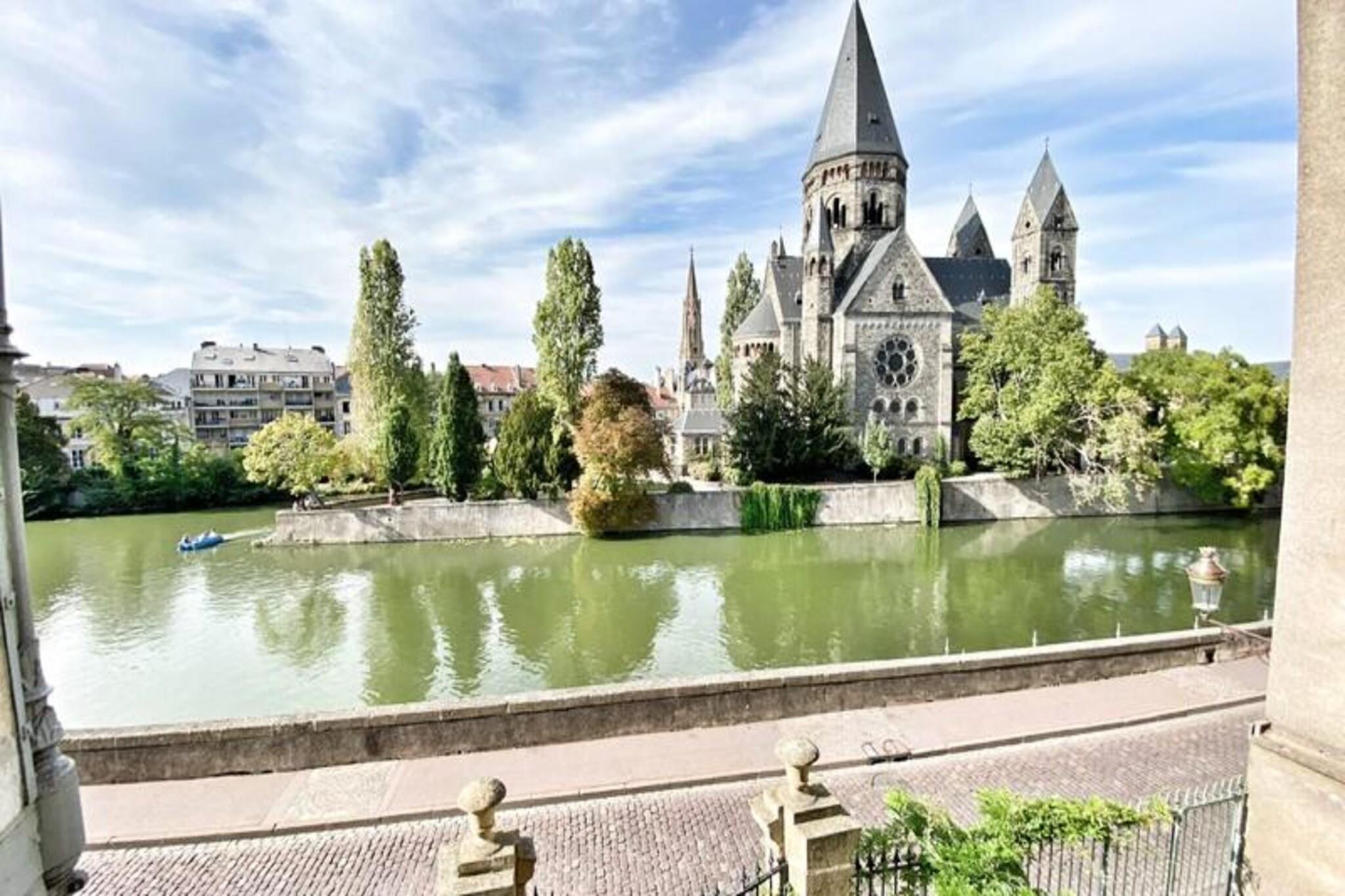 This charming two-room apartment offers a cozy stay with stunning views of Temple Neuf and Metz Cathedral. Ideal for couples, professionals, or small families, it features a comfortable bedroom with quality hotel linens. The apartment boasts a century-old parquet floor, original moldings, and flea market-inspired decor. Pets are not allowed, and self-managed check-in is made easy with access details in the house guide. It is equipped with all essential amenities for a relaxing stay. Located in the heart of downtown Metz, the apartment is just a five-minute walk from the city's main squares, restaurants, and cafes, making it an ideal spot to explore the city's attractions. The Metz train station is a 20-minute walk away, providing easy access to surrounding areas. Nearby, guests can enjoy the local markets, museums, and charming streets filled with boutiques, while the stunning views of the Protestant temple enhance the atmosphere of the area. The apartment features a fully equipped kitchen, allowing you to prepare your own meals. The bathroom is well-appointed for convenience, and the property offers a relaxing space with a warm, unique ambiance. Underground parking options are available nearby, with additional paid parking within a ten-minute walk, ensuring guests can easily access the property. For a stress-free stay, quality linen is provided, and check-out is straightforward.