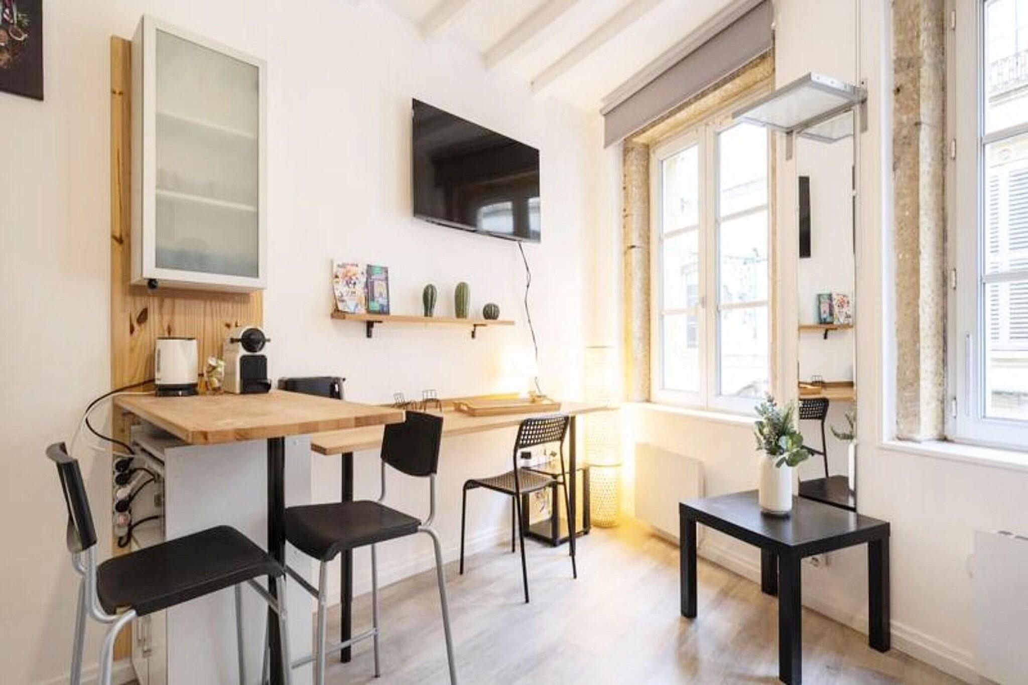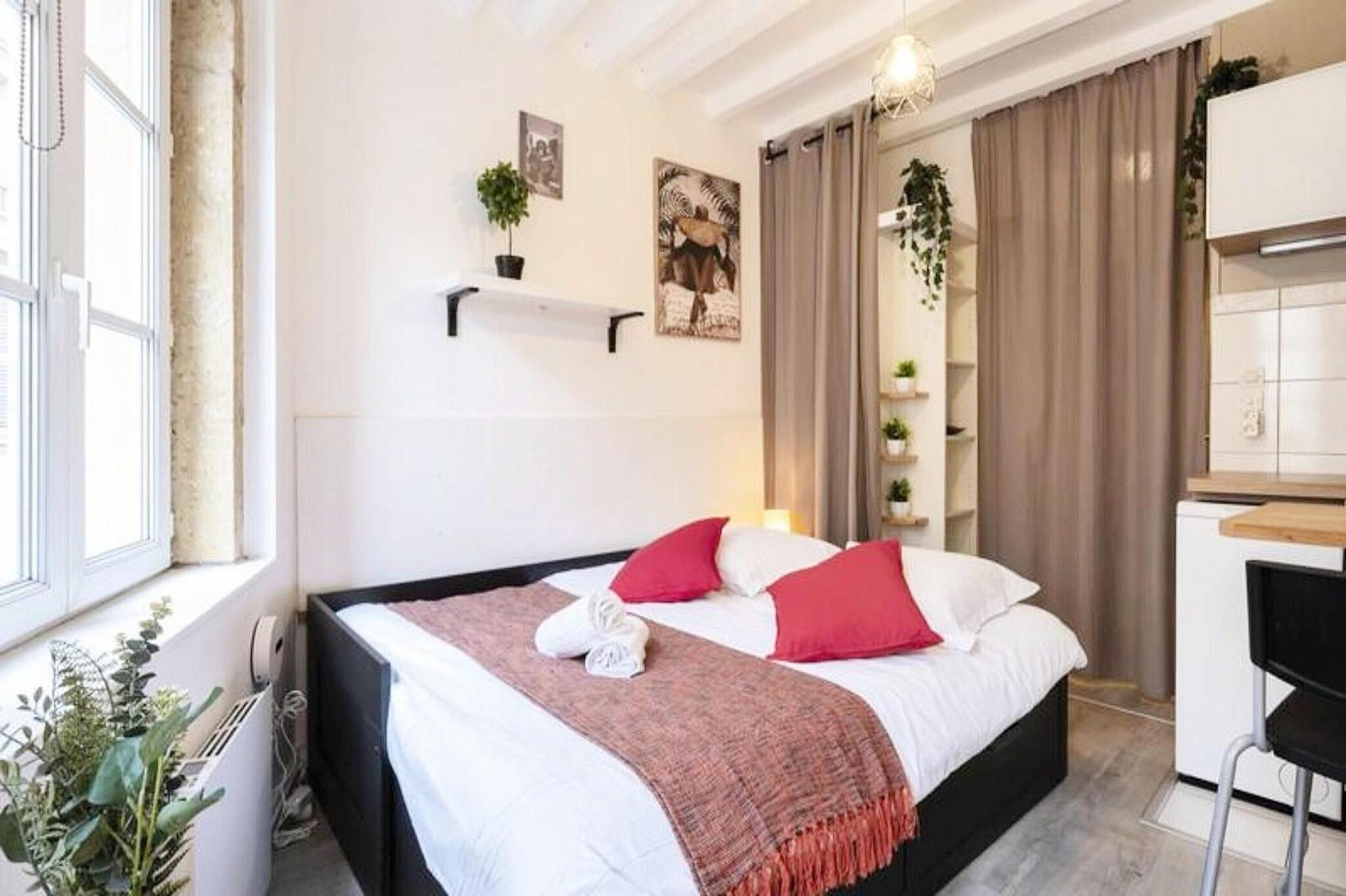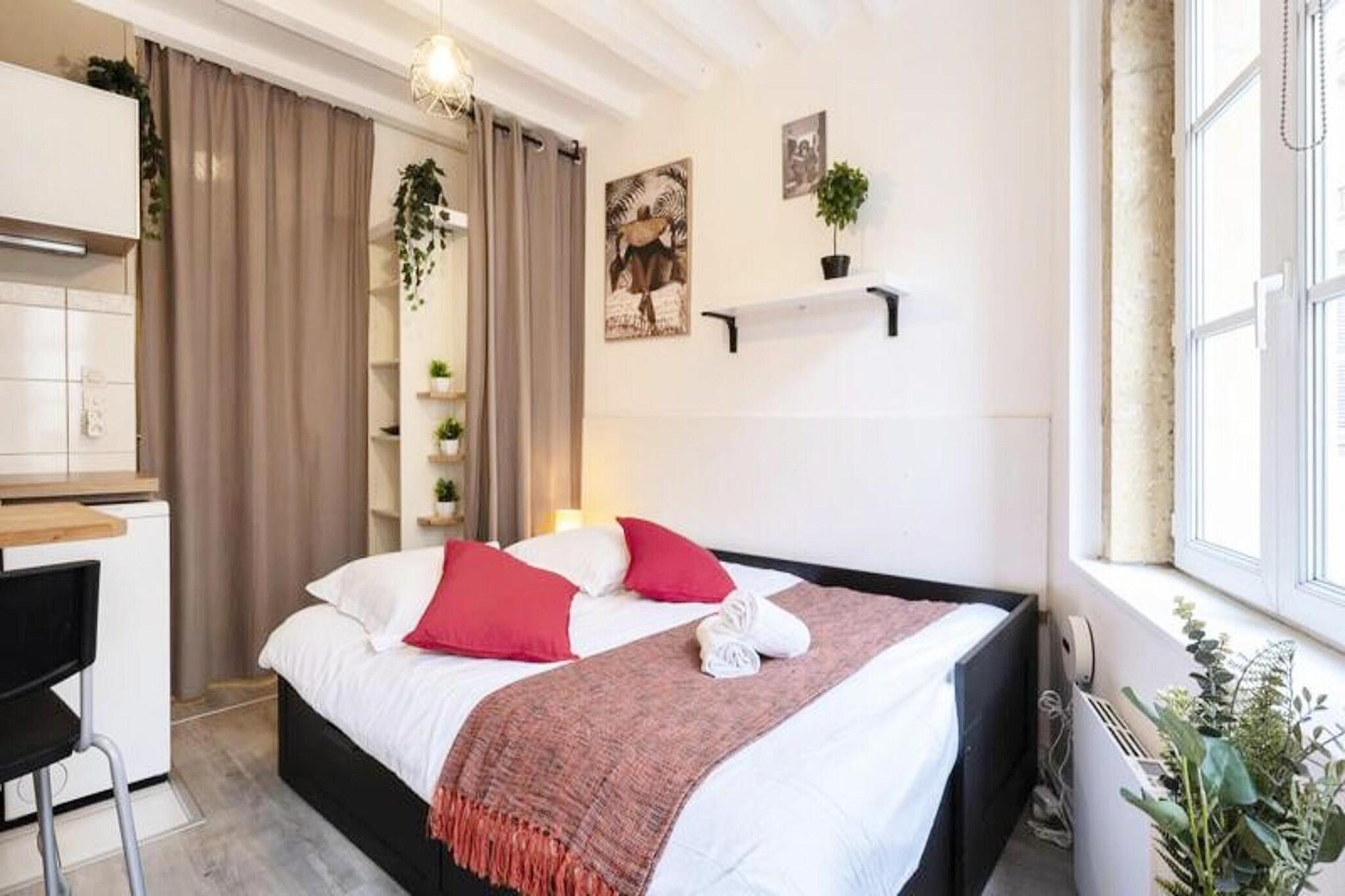 This charming 19m² studio offers a cozy, well-equipped space with a comfortable trundle bed (160 cm wide), perfect for solo travelers, friends, or professionals. The bed is made to order upon arrival, and high-quality linen is provided for added comfort. The studio is located in a peaceful area and features a bathroom, ensuring a relaxing stay. Self-check-in is available, with access details sent via email after booking confirmation. Pets are not allowed. Conveniently located, the studio is just a few minutes' walk from major attractions in Metz, including Place de la Republique (500 meters) and Place Saint-Louis (600 meters). Explore the vibrant historic center, with its museums, monuments, cafes, and local markets within walking distance. The area is quiet yet central, offering the best of both worlds for those looking to experience the city's rich culture. The studio is fully renovated, combining modern comfort with the charm of its historic setting. It features a well-equipped kitchen for preparing meals and a bathroom with all essential amenities. The compact space is designed for maximum efficiency, providing everything needed for a pleasant stay in the heart of Metz.