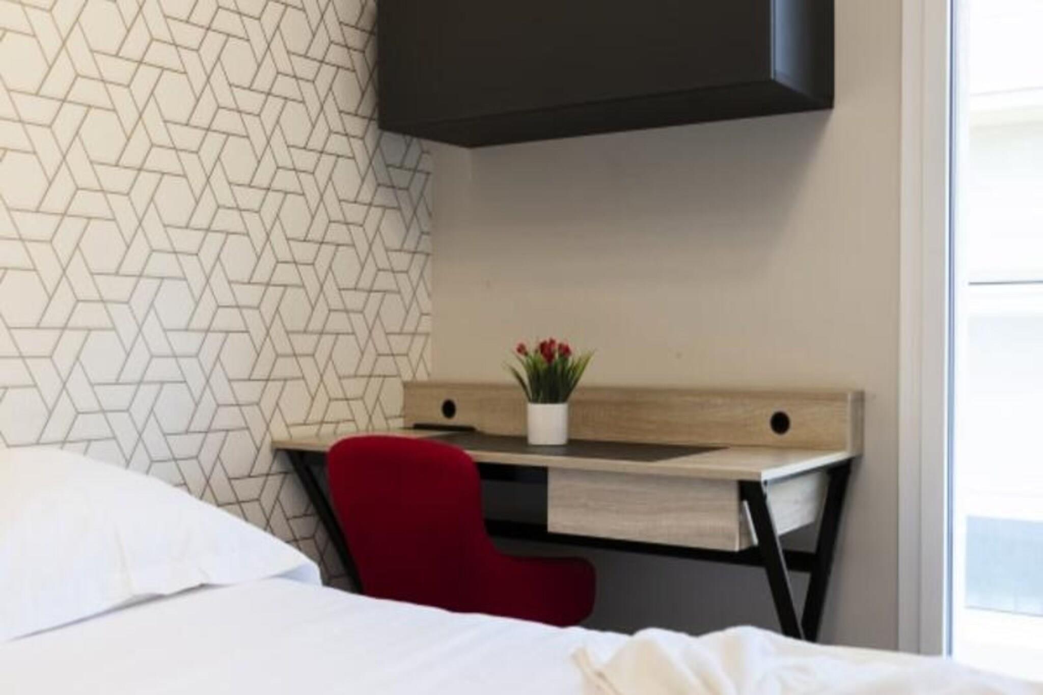 This beautiful three-bedroom apartment offers a bright, spacious layout and a stylish, minimalist design, perfect for both relaxation and productivity. It accommodates up to six people, with high-quality linens and made-to-order beds for a restful stay. The apartment is not pet-friendly and includes all the essential amenities for a comfortable stay, such as WiFi, a water softener, and heating. The building is modern and features an elevator and underground parking, ensuring convenience and comfort. Located in the heart of Metz, the apartment is just a short walk from the city center, where you'll find a variety of shops, cafes, and restaurants. Explore the city's historic sites, cultural attractions, and charming streets, all easily accessible on foot. The train station is also nearby, making it easy to travel to other destinations in the region. The apartment features a well-equipped kitchen, ideal for preparing meals during your stay. There are two bathrooms, offering added convenience, and a spacious living area with a large terrace for outdoor relaxation. The apartment's prime location offers a peaceful retreat while being close to all the excitement of Metz's vibrant city life.