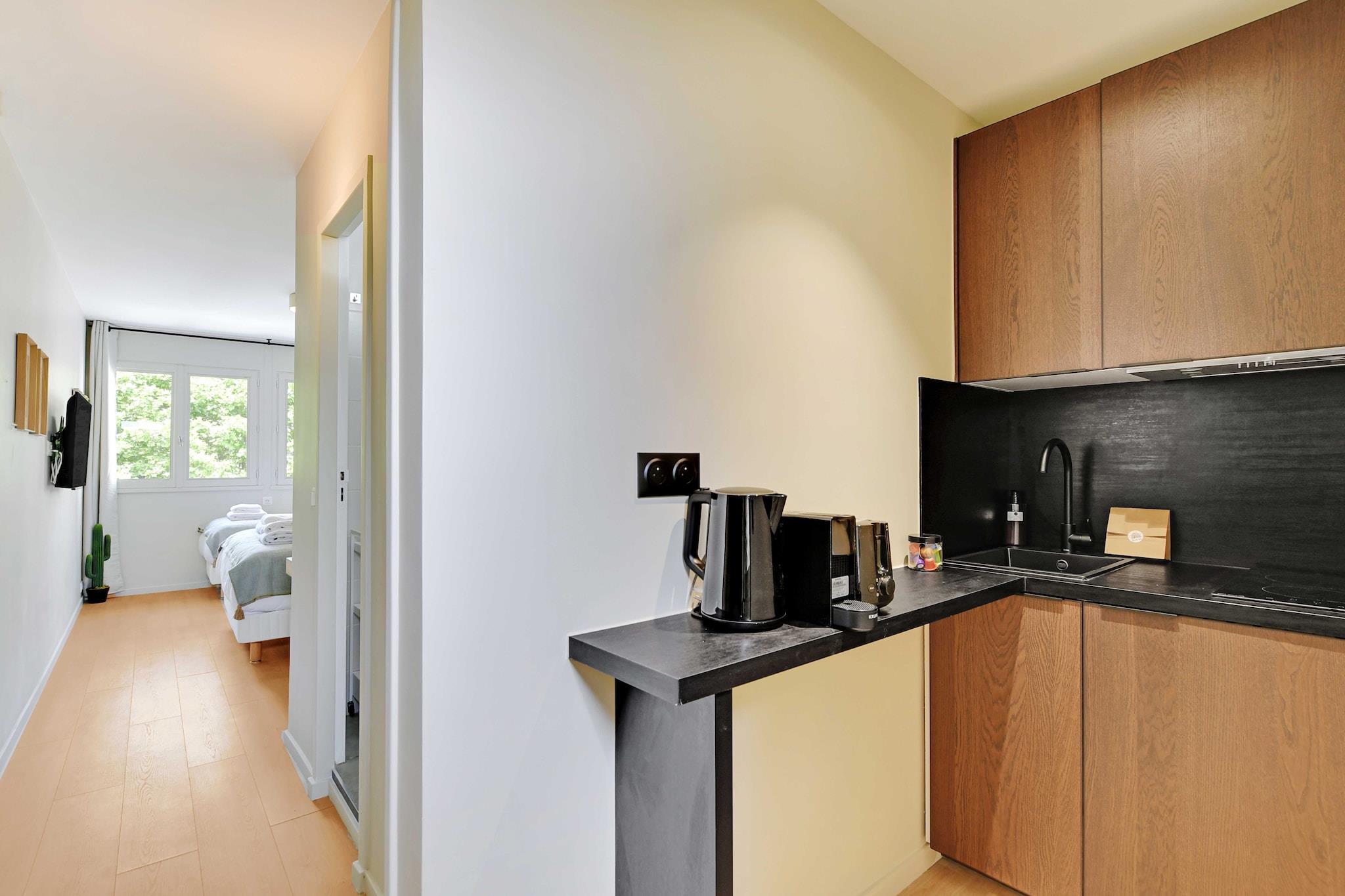 Checkmyguest offers you the "Green Suites" residence in Meudon, just outside Paris. Our pleasant, refurbished studios for 2 or 3 people offer all modern comforts. Located in the immediate vicinity of Paris, Vélizy and Issy-Les-Moulineaux, our residence will be a perfect option for professionals, couples or students looking for a convenient and comfortable stay.