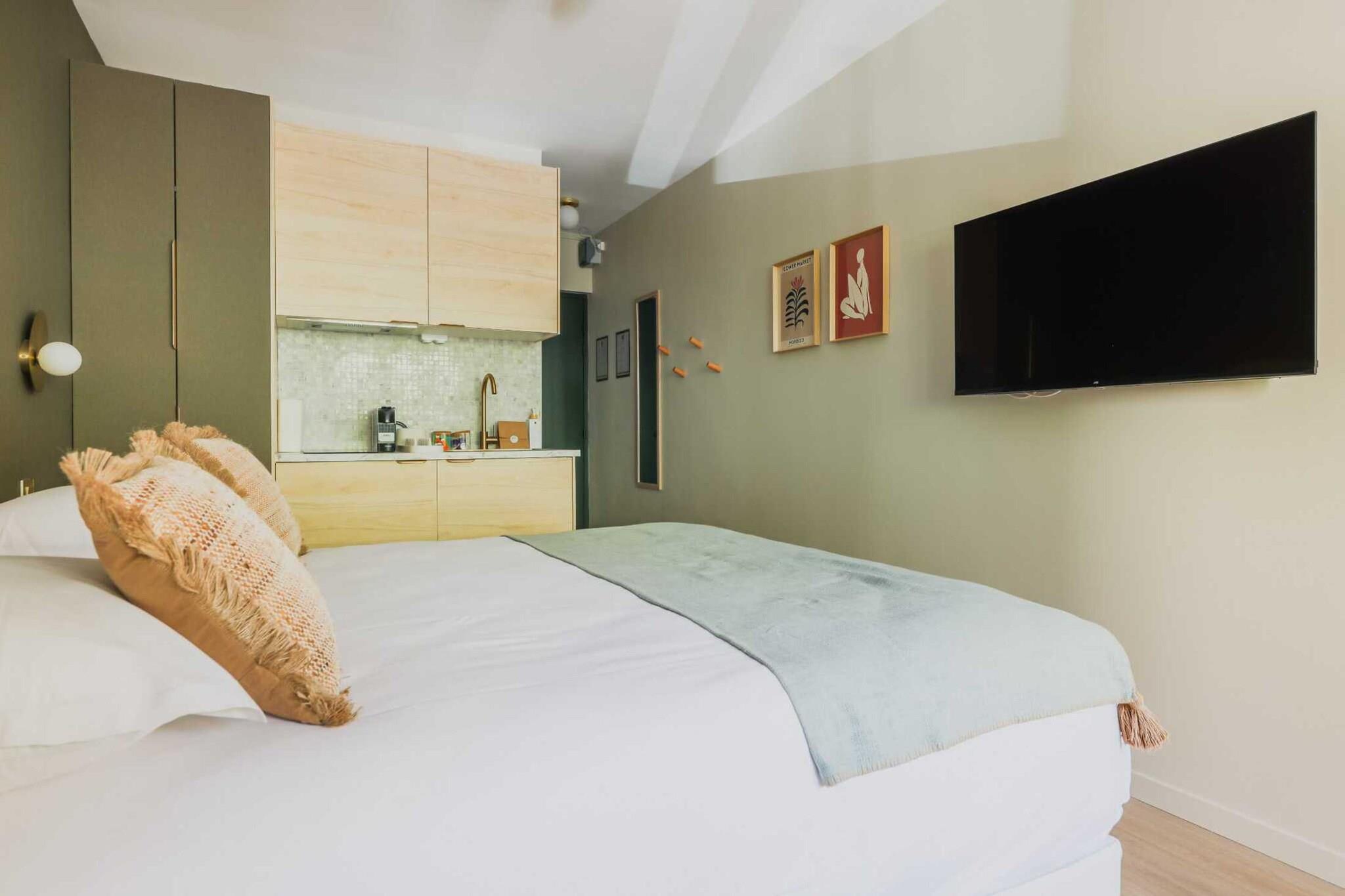 Checkmyguest offers you the "Green Suites" residence in Meudon, just outside Paris. Our pleasant, refurbished studios for 2 or 3 people offer all modern comforts. Located in the immediate vicinity of Paris, Vélizy and Issy-Les-Moulineaux, our residence will be a perfect option for professionals, couples or students looking for a convenient and comfortable stay.