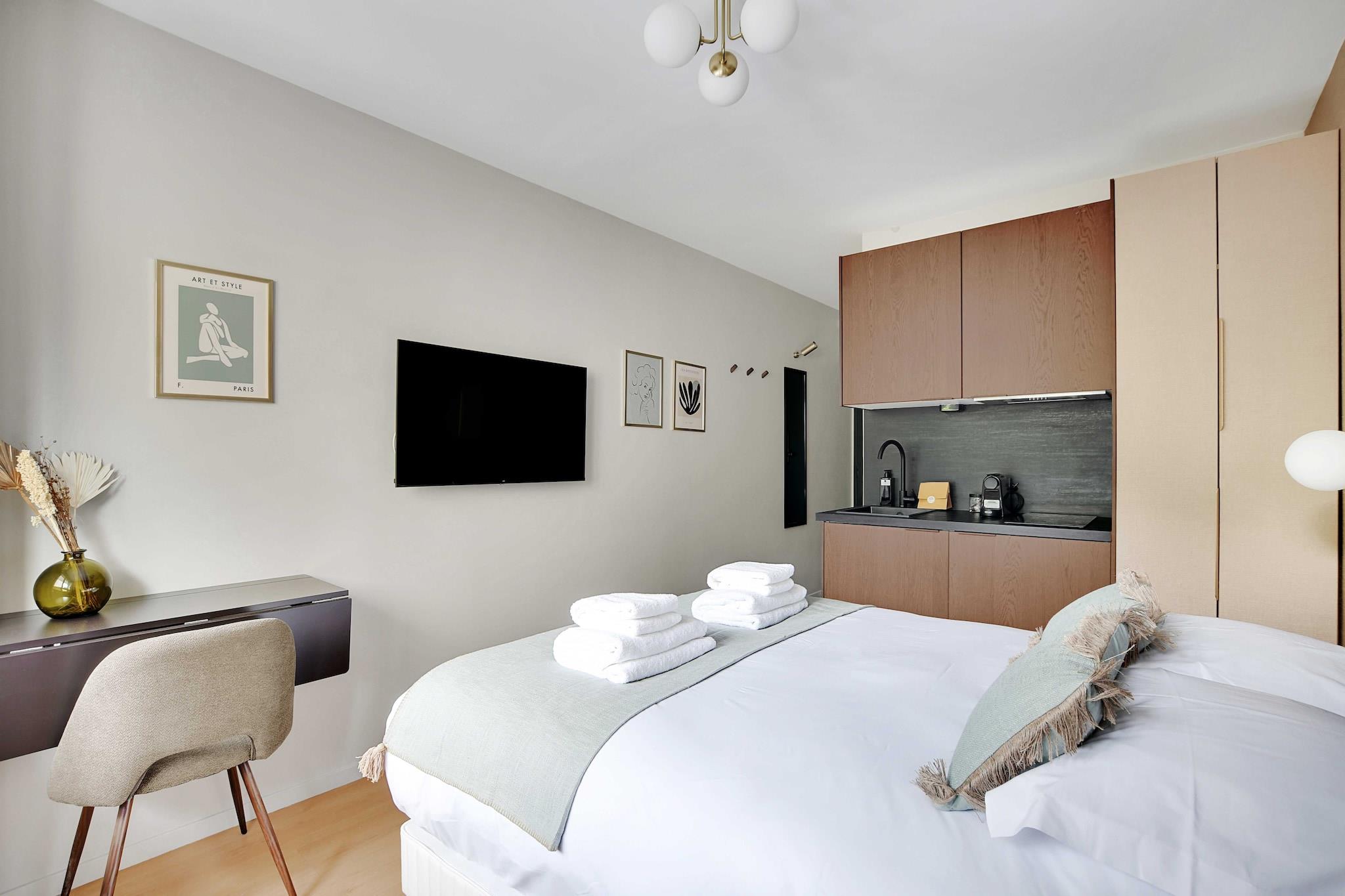 Checkmyguest offers you the "Green Suites" residence in Meudon, just outside Paris. Our pleasant, refurbished studios for 2 or 3 people offer all modern comforts. Located in the immediate vicinity of Paris, Vélizy and Issy-Les-Moulineaux, our residence will be a perfect option for professionals, couples or students looking for a convenient and comfortable stay.